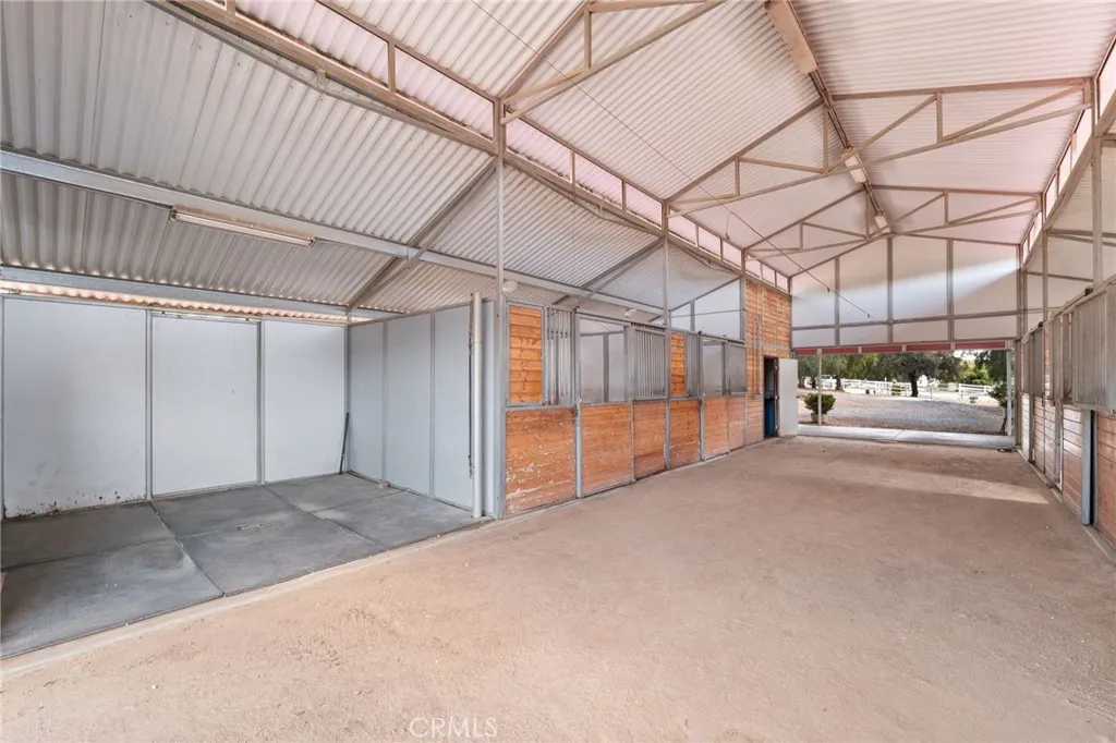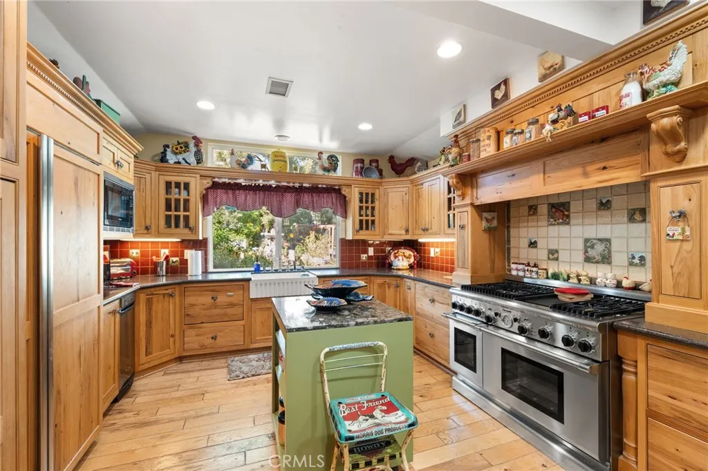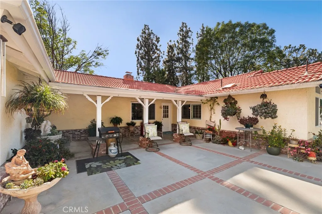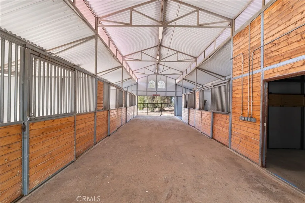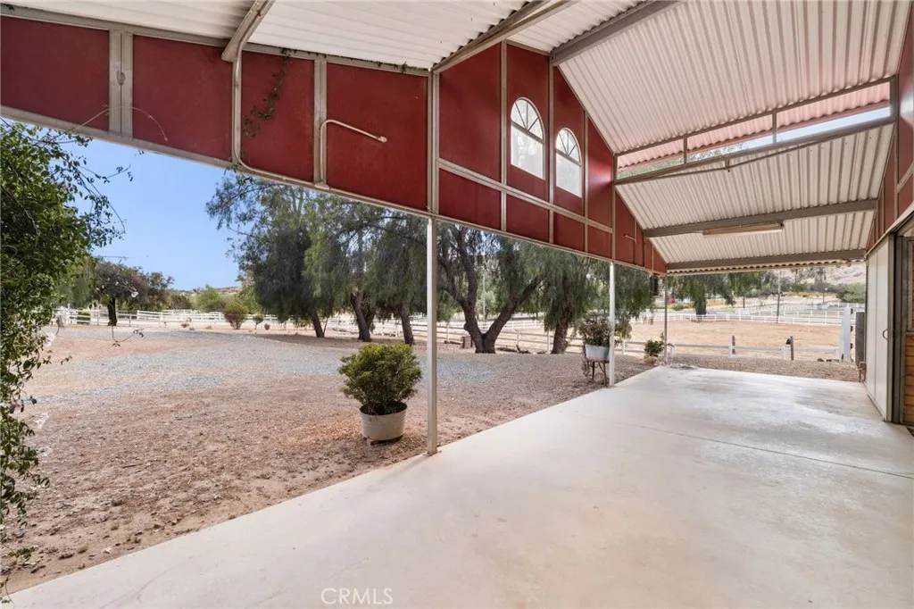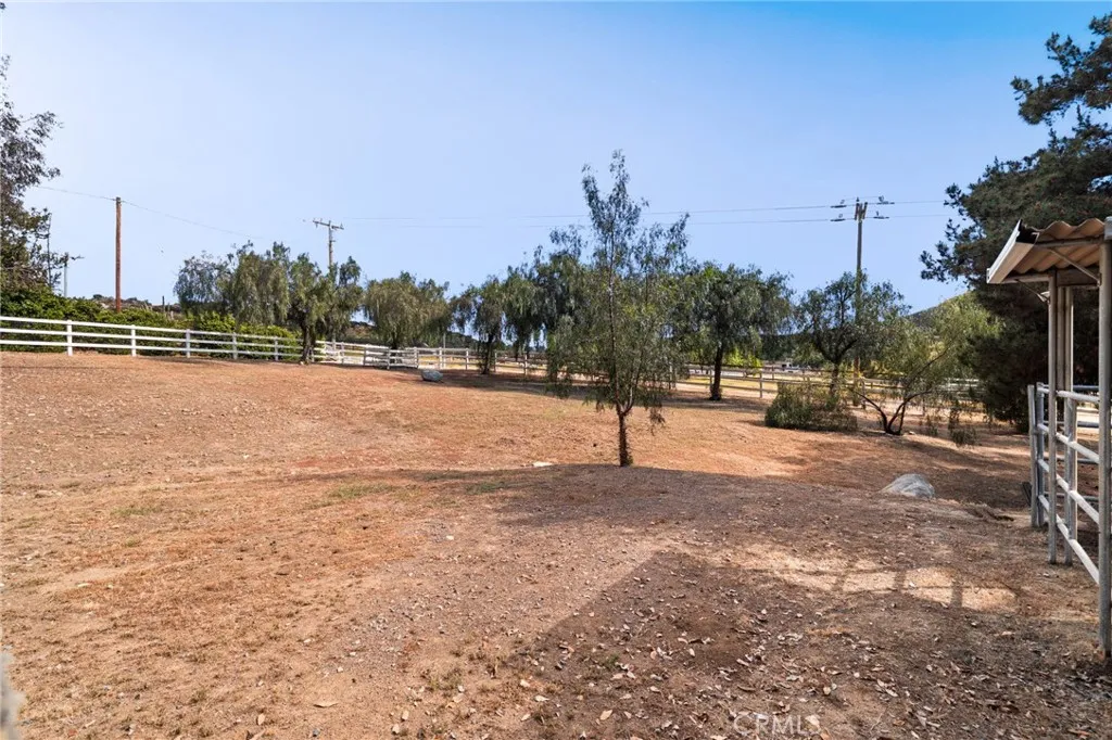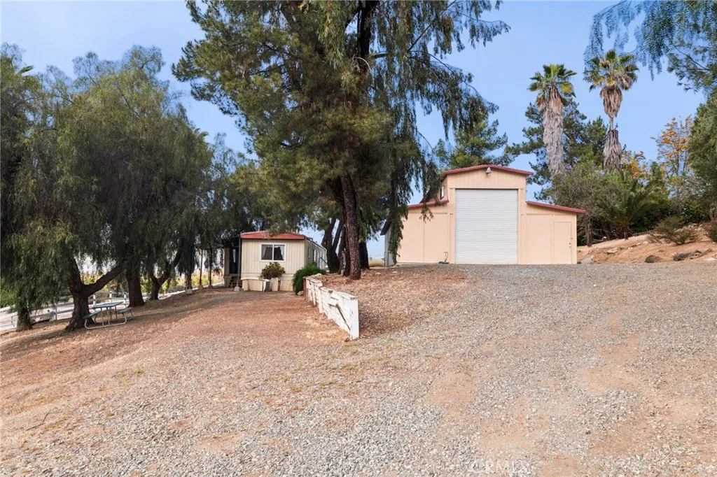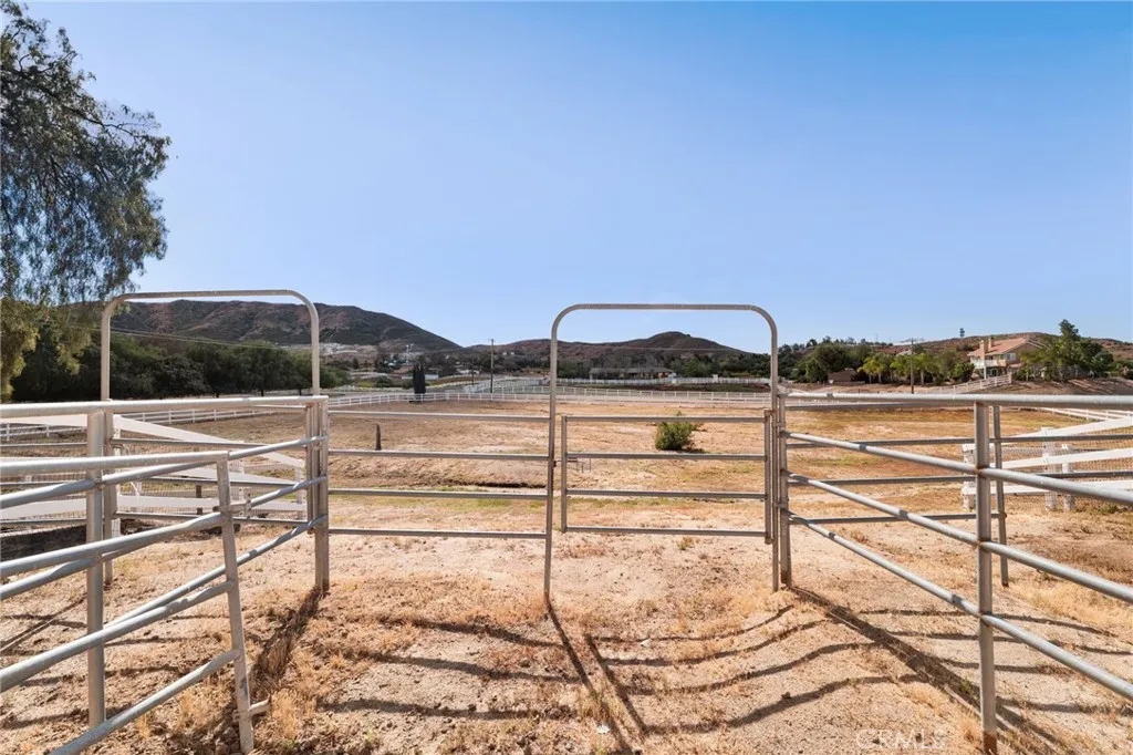 Welcome to 16620 Rocky Glen Road, a private, gated 5-acre ranch-style property offering exceptional versatility, functionality, and peaceful surroundings. This beautifully maintained estate features a 4-bedroom, 2-bath home with upgraded hickory wood plank flooring, crown molding, plantation shutters, and a double-sided brick fireplace with custom mantels. The remodeled kitchen showcases custom hickory cabinetry with roll-out shelving, granite countertops, porcelain farmhouse sink, and high-end appliances including a Thermador 6-burner range, built-in refrigerator, warming drawer, and trash compactor. A large center island with additional sink and seating makes it ideal for entertaining. The spacious primary suite includes French doors to the patio, dual walk-in closets, and a remodeled bathroom with marble finishes, jetted soaking tub, and oversized walk-in shower. Designed for outdoor living, the property features two patios, an outdoor fireplace, and a BBQ island complete with refrigerator, sink, and side burner. The grounds are enhanced by over 100 mature trees, fruit and citrus trees, flowering plants, and irrigation throughout. Ideal for equestrian or multi-use living, the property includes a 7-stall barn with wash stall, tack room, fly misting system, and attached pastures, as well as a separate 5-stall mare motel with additional pastures and tack space. The fully fenced acreage offers white vinyl fencing and multiple pasture areas. Additional improvements include a 30x40 RV barn with roll-up door and 30-amp hookup, a 1-bedroom ADU/mobile home with separate utilities, two garages (including oversized) with epoxy flooring, and dual remote-controlled gated entrances. A rare opportunity to own a private, fully improved ranch property with space for animals, vehicles, and recreational use.