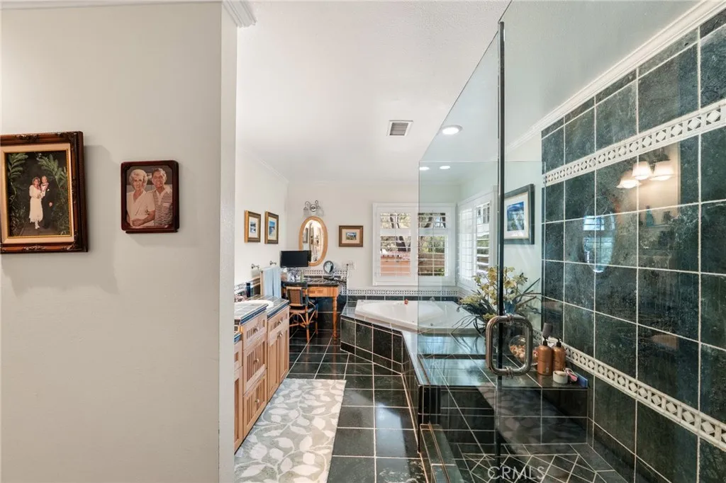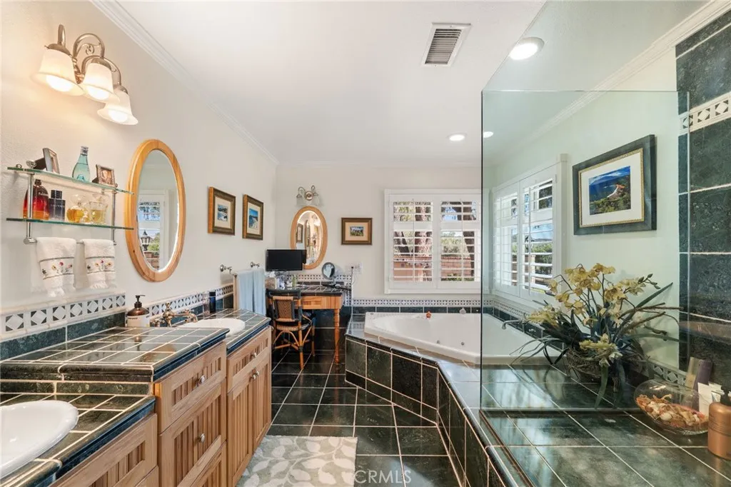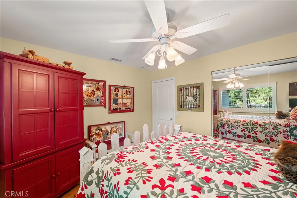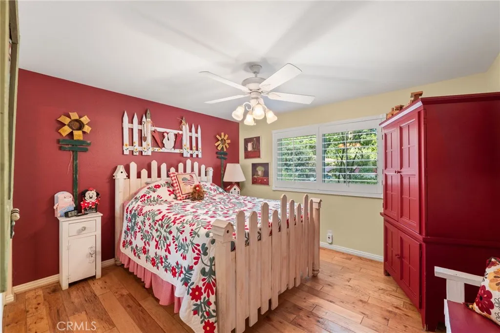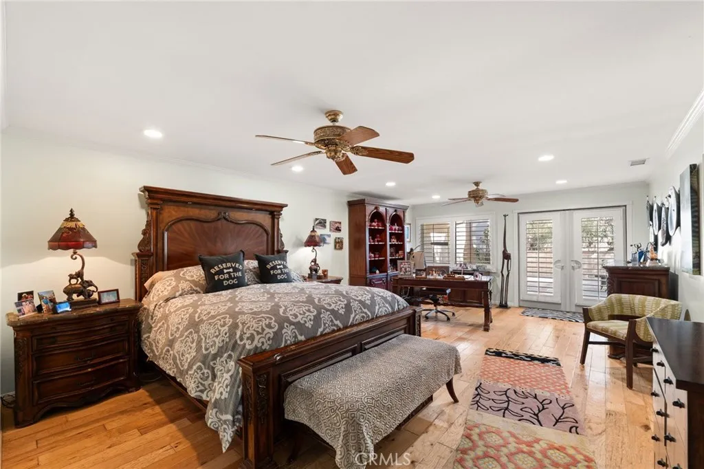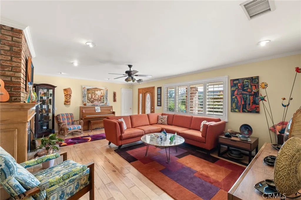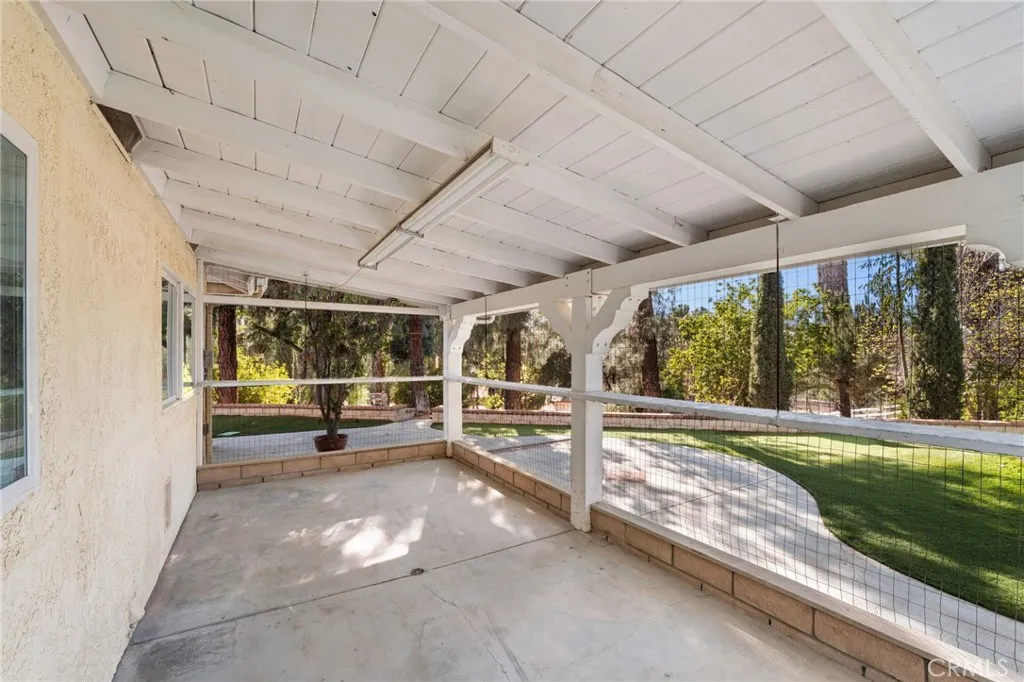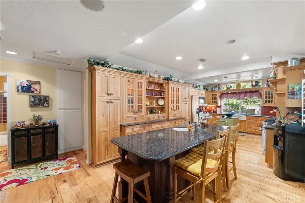 Welcome to 16620 Rocky Glen Road, a private, gated 5-acre ranch-style property offering exceptional versatility, functionality, and peaceful surroundings. This beautifully maintained estate features a 4-bedroom, 2-bath home with upgraded hickory wood plank flooring, crown molding, plantation shutters, and a double-sided brick fireplace with custom mantels. The remodeled kitchen showcases custom hickory cabinetry with roll-out shelving, granite countertops, porcelain farmhouse sink, and high-end appliances including a Thermador 6-burner range, built-in refrigerator, warming drawer, and trash compactor. A large center island with additional sink and seating makes it ideal for entertaining. The spacious primary suite includes French doors to the patio, dual walk-in closets, and a remodeled bathroom with marble finishes, jetted soaking tub, and oversized walk-in shower. Designed for outdoor living, the property features two patios, an outdoor fireplace, and a BBQ island complete with refrigerator, sink, and side burner. The grounds are enhanced by over 100 mature trees, fruit and citrus trees, flowering plants, and irrigation throughout. Ideal for equestrian or multi-use living, the property includes a 7-stall barn with wash stall, tack room, fly misting system, and attached pastures, as well as a separate 5-stall mare motel with additional pastures and tack space. The fully fenced acreage offers white vinyl fencing and multiple pasture areas. Additional improvements include a 30x40 RV barn with roll-up door and 30-amp hookup, a 1-bedroom ADU/mobile home with separate utilities, two garages (including oversized) with epoxy flooring, and dual remote-controlled gated entrances. A rare opportunity to own a private, fully improved ranch property with space for animals, vehicles, and recreational use.