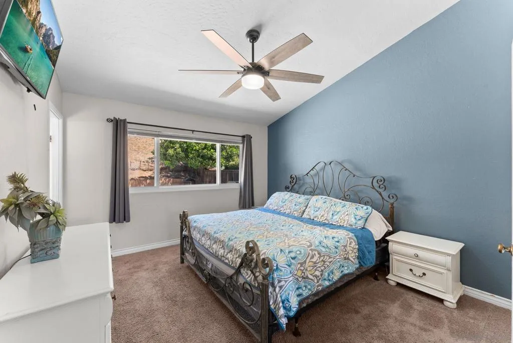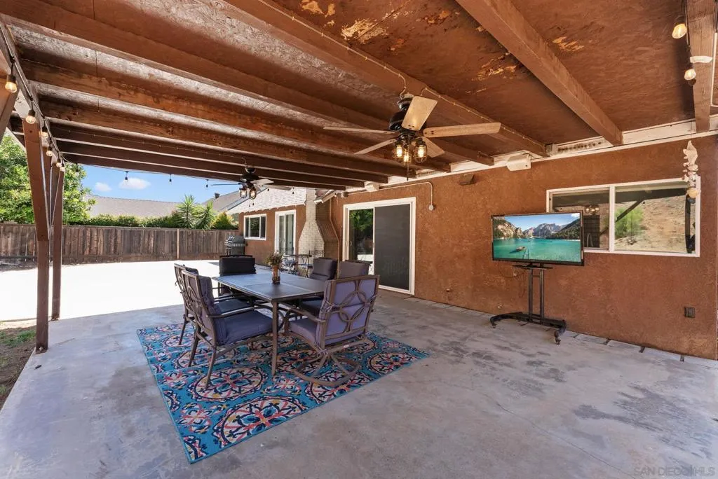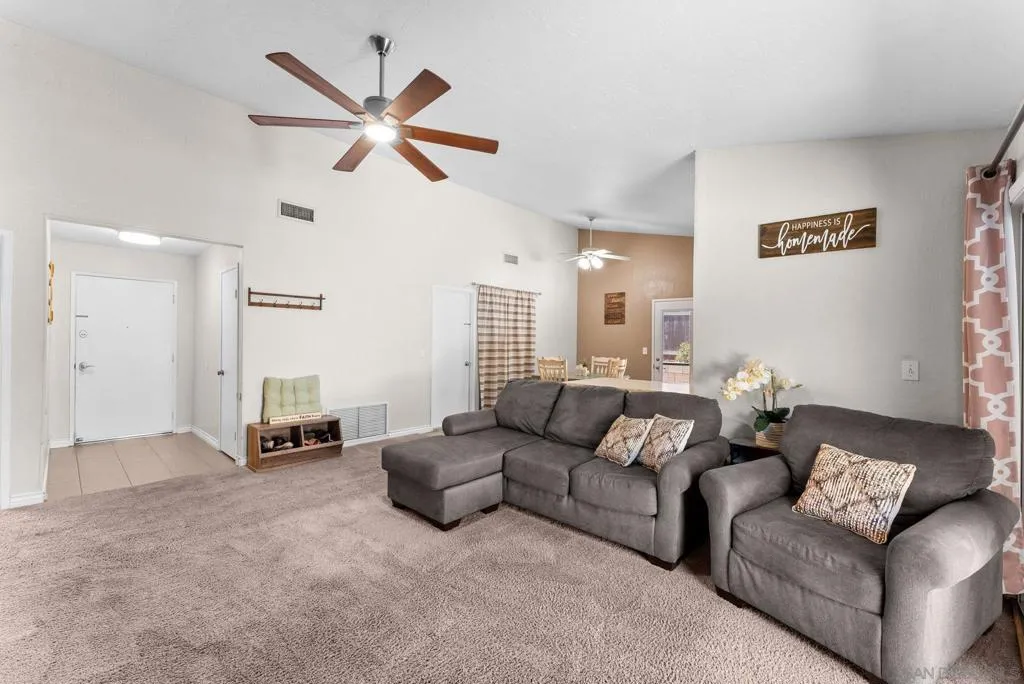 Tucked into one of Santee’s quietest neighborhoods, this Santana Hills gem offers the perfect balance of convenience and serenity—just minutes from top-rated schools, shopping, major highways, and the Santee Sportsplex, yet peacefully removed from the everyday hustle. Enjoy beautiful mountainous views that create a stunning backdrop for some of the best sunrises and sunsets in the area. This beautifully maintained 3-bedroom, 2-bath home is loaded with thoughtful upgrades, giving the next owner true peace of mind. A newer roof was installed prior to the 200-amp electrical panel upgrade, and solar adds efficiency and long-term savings. Dual pane windows and sliders throughout enhance energy efficiency, comfort, and natural light, while vaulted ceilings create an open, airy feel. Inside, you’ll find a full suite of newer appliances, including refrigerator, stove, microwave, washer, dryer, and hot water heater. The home also features an insulated garage door with a newer opener, plus low-maintenance landscaping in both the front and backyard. The upgraded kitchen is both stylish and functional, featuring quartz countertops and under-cabinet lighting—perfect for everyday living and entertaining. Alongside the driveway, a spacious concrete pad framed by a decorative block retaining wall provides ideal RV parking with hookups—or plenty of room for additional vehicles and toys. This is the kind of home that checks all the boxes—comfort, upgrades, views, and location.