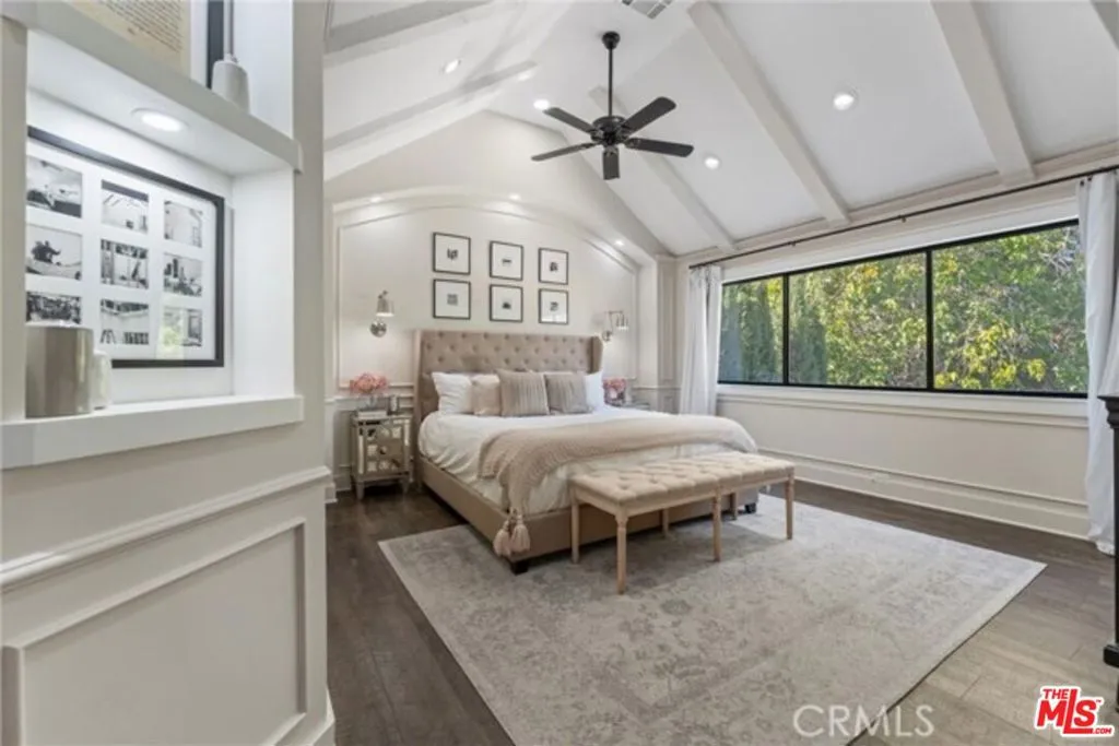 This beautifully renovated custom home showcases striking architectural elements and a one-of-a-kind charm that truly distinguishes it. From the moment you arrive, you're welcomed by an impressive front yard with mature trees, lush landscaping, setting a warm and inviting tone. Step inside to discover a home rich in character and thoughtful design. The spacious living room features soaring vaulted ceilings and exposed beams, creating an airy, elegant feel. On the main level, you'll find a versatile fourth bedroomcurrently used as an officealongside a full bathroom. The kitchen is both stylish and functional, offering double ovens, generous counter space, and a built-in nook with custom cabinetry. The family room is perfect for gatherings, complete with fireplaces and a wet bar. Sliding seamlessly to the outdoor patio, the space extends into a private backyard retreat featuring a relaxing jacuzzi. Upstairs, a charming loft-style reading nook overlooks the living room, adding a cozy yet sophisticated touch. The highlight of the home is the luxurious primary suite, accessed through a custom-molded hallway. With vaulted ceilings, its own fireplace, and a fully appointed bathroom, this space offers both comfort and elegance.