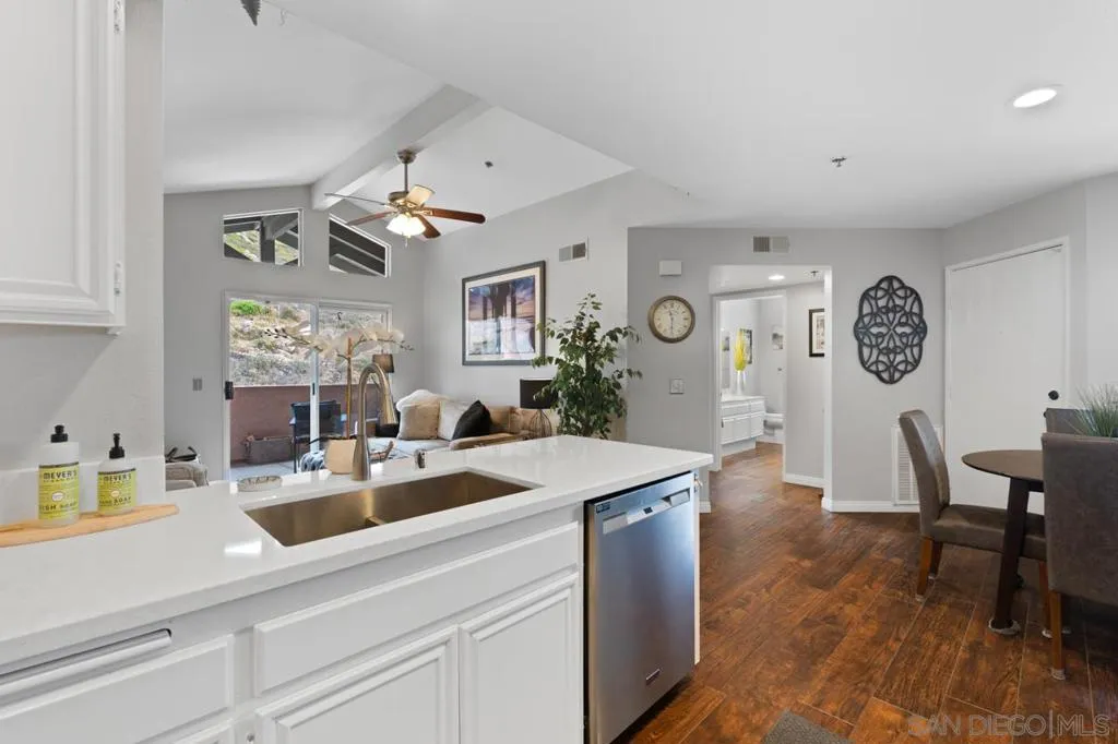 Welcome home! This beautifully updated upper-level residence in the highly desirable 92127 community of 4S Ranch. This light and bright home features soaring vaulted ceilings that create an open, airy feel throughout the living space. The upgraded kitchen shines with brand-new countertops, offering a fresh modern touch and functional workspace for cooking and entertaining. The living room is warm and inviting with a newly remodeled fireplace surround, creating the perfect focal point for cozy evenings at home. Enjoy peaceful privacy and scenic hillside views from the unit, providing a serene backdrop rarely found in condo living. Large windows invite in natural light while framing the tranquil outdoor setting. The thoughtful floorplan offers comfortable everyday living with a spacious feel enhanced by the vaulted ceilings and open layout. Residents enjoy access to outstanding resort-style amenities including a sparkling community pool, tennis courts, pickleball courts, and a fully equipped exercise room. Whether you’re looking to stay active, relax poolside, or enjoy low-maintenance living in a prime location, this community has it all. Conveniently located near top-rated schools, shopping, dining, parks, and commuter routes, this home offers the perfect blend of comfort, convenience, and lifestyle. Don’t miss this opportunity to own an upgraded home with private views in one of North County’s most sought-after zip codes. With just a few more upgrades left, you can really dial this home in and make it your own!