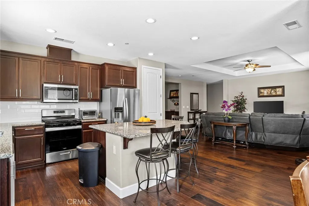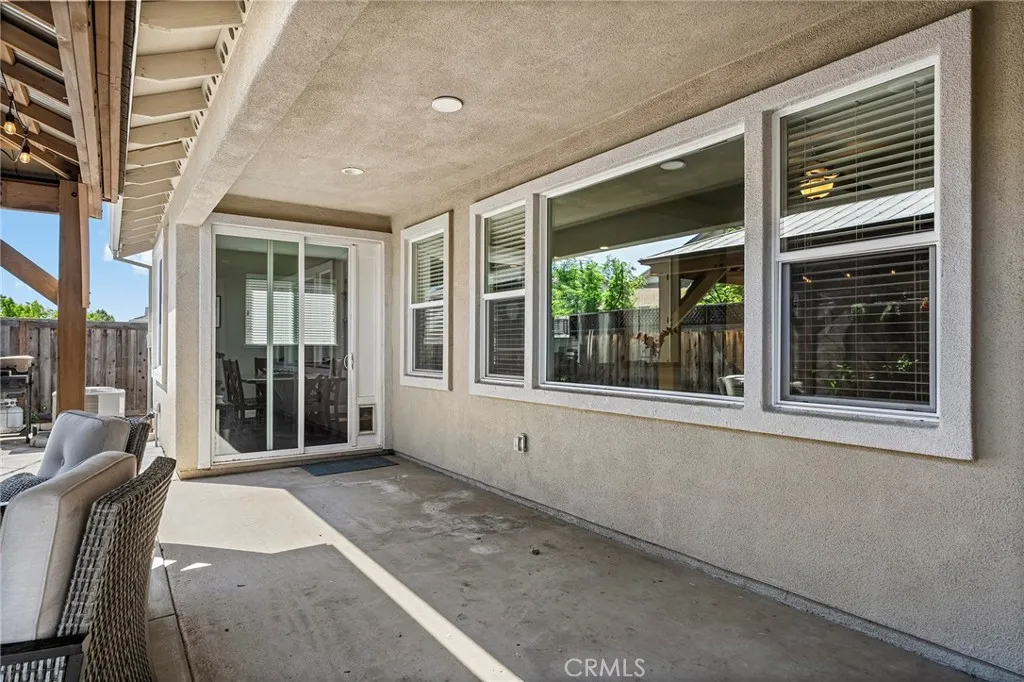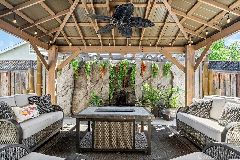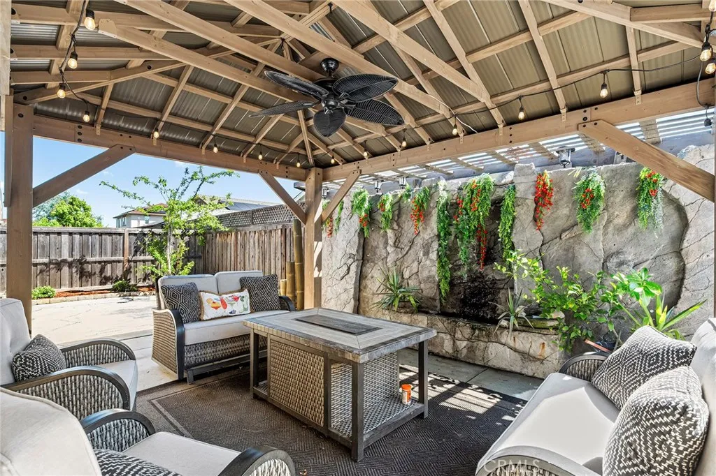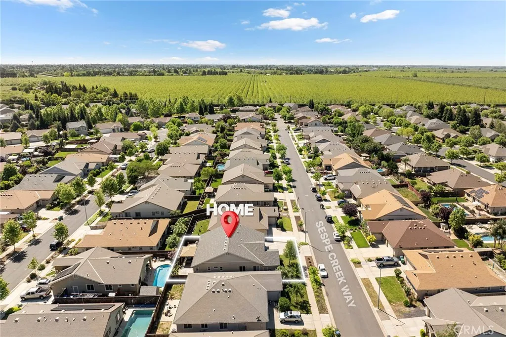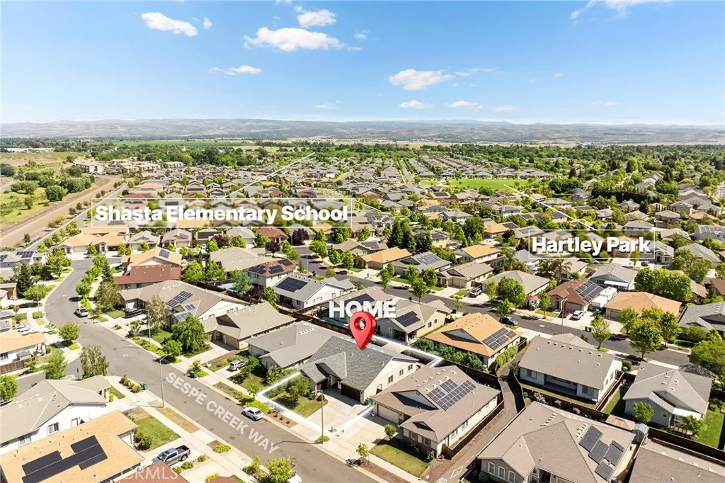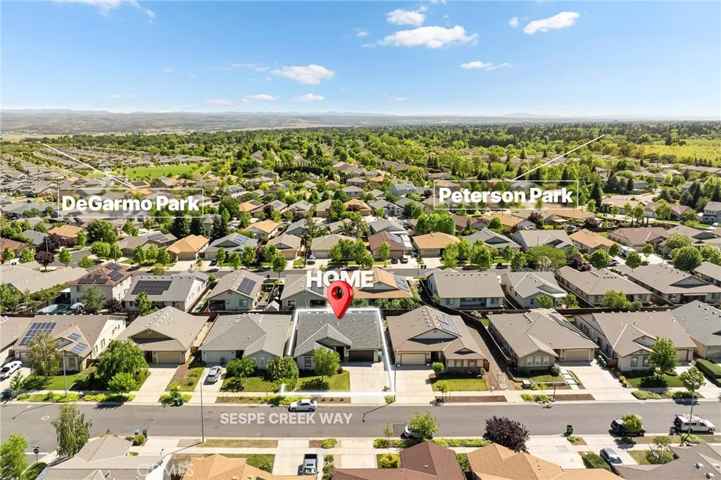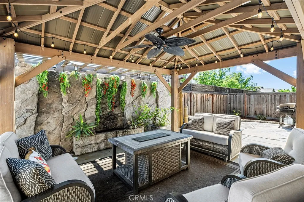 Welcome to this stunning single-story home nestled in the sought-after Meadowbrook Ranch neighborhood of North Chico. Built in 2017, this meticulously maintained 4-bedroom, 3-bathroom home offers 2,096 square feet of thoughtfully designed living space with a layout that just flows. Inside you'll find an open concept kitchen and living area perfect for everyday living and entertaining, complete with a 6-burner gas cooktop, stainless appliances, granite counters, a breakfast bar, and rich hardwood-style flooring throughout. The primary suite is tucked away from the secondary bedrooms and features a spacious walk-in closet and private en suite bath. Three additional bedrooms are generously sized, and the dedicated laundry room adds everyday convenience. Step outside and prepare to be wowed. The backyard is a true retreat featuring a stunning custom fountain with lighting and water features, a fully covered gazebo draped in bistro lights, and a patio built for those warm Chico evenings. Whether you're hosting or just unwinding, this outdoor space delivers. Three-car garage, central heat and air, and located near parks and top-rated Chico Unified schools. This one is truly move-in ready.