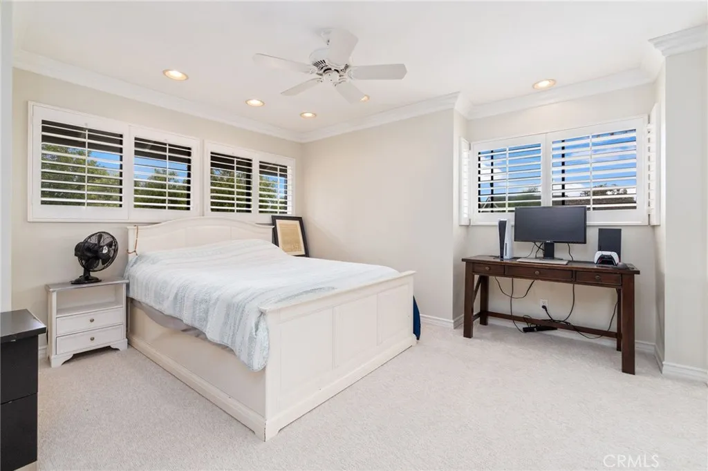 Exceptional Opportunity in Prestigious Woodbridge Crossings (“Lakeridge”) Beautifully updated and freshly painted, this 2,404 sq. ft. “Easton” model is ideally positioned on the iconic curvilinear Pinewood Street, one of the most sought-after locations in Woodbridge. This distinctive split-level residence offers an elegant blend of timeless architecture, comfort, and refined upgrades throughout. Featuring 3 bedrooms and 2.5 baths, the home is designed for both everyday living and effortless entertaining. The spacious primary suite serves as a private sanctuary, complete with dual walk-in closets with custom built-ins and a spa-inspired en-suite bath featuring a two-person shower with dual deluge heads, handheld, and water massage features. Recessed lighting and designer Casablanca ceiling fans enhance each bedroom with style and comfort. A rare and desirable highlight is the versatile “secret” room tucked off the secondary bedroom, perfect for extra storage, a private retreat, or play space, offering flexibility to suit a variety of lifestyles. Additional features include two inviting fireplaces, solid wood doors throughout, dual-pane windows, and custom plantation shutters, all contributing to the home’s warm, upscale ambiance. Step outside to a private rear patio designed for relaxation and entertaining, complete with ambient lighting and a natural gas BBQ hookup. A spacious two-car garage adds convenience and practicality. Enjoy access to Woodbridge’s resort-style amenities, including scenic lakes, tennis courts, lush parks, pools, and spas, with Shorebird Park & Pool just moments away. Residents also benefit from access to highly regarded schools, including Stone Creek Elementary School and Lakeside Middle School, both rated a perfect 10, and Woodbridge High School, rated an 8, making this an exceptional location for educational excellence. Adding to the community’s appeal is Irvine’s convenient, free shuttle service available to all ages throughout Irvine, with routes connecting residents to popular destinations such as the Great Park, University of California, Irvine, and the Irvine Spectrum Center. A complimentary shuttle also provides easy access from Woodbridge to the beaches of Laguna Beach, offering a seamless coastal lifestyle. Opportunities to own this coveted floor plan in such a prime location are rare, don’t miss your chance to experience the best of Woodbridge living.