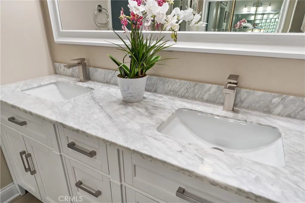 There’s something so special about a home that doesn’t ask you to compromise; it simply invites you in and lets life unfold with ease. Tucked into a serene corner of Rancho San Joaquin, this rare ground-floor residence feels less like a condo and more like a hidden retreat. No stairs leading you to the front door, just a gentle welcome home each time you arrive. Inside, the home opens up in a way that feels both airy and intimate. High ceilings stretch above the living and dining spaces, giving the home a sense of volume and calm. The remodeled kitchen anchors it all with timeless design, white shaker cabinetry, quartz countertops, and stainless-steel appliances that make everyday living feel just a bit more elevated. Just off the kitchen, you have a charming breakfast nook, which is currently being used as an exercise area. With two spacious bedrooms, each with its own beautifully updated ensuite bath, there’s a sense of privacy and comfort woven throughout. Marble countertops and thoughtfully selected tile create a spa-like feel, the kind of spaces you look forward to retreating to at the end of the day. And then there’s the outdoor living, two patios, each offering its own moment, one for dining under the open sky, another for quiet reflection. Practicality meets rarity with a two-car garage, complemented by a private driveway that accommodates two additional vehicles, an uncommon and highly sought-after feature that makes hosting and everyday living feel effortless. Beyond the home itself, Rancho San Joaquin offers a lifestyle that feels both active and serene, with a pool and spa tucked within the community, a golf course just beyond, and directly across the way, miles of walking trails, a peaceful lake, and open green spaces at Mason Regional Park. All of it just minutes from UCI, everyday conveniences like Trader Joe’s, and a short drive to the coastline of Newport Beach. Rancho San Joaquin Middle School has also been recognized as a 2026 California Distinguished School, one of the state’s highest honors. Whether you’re searching for a place to settle into or an investment that feels effortlessly desirable, this home offers something rare, a blend of comfort, charm, and that unmistakable feeling that you’ve found somewhere you truly want to be.