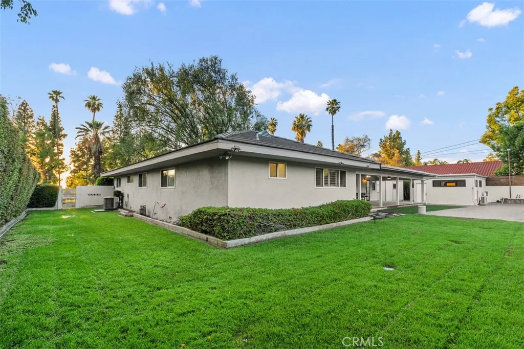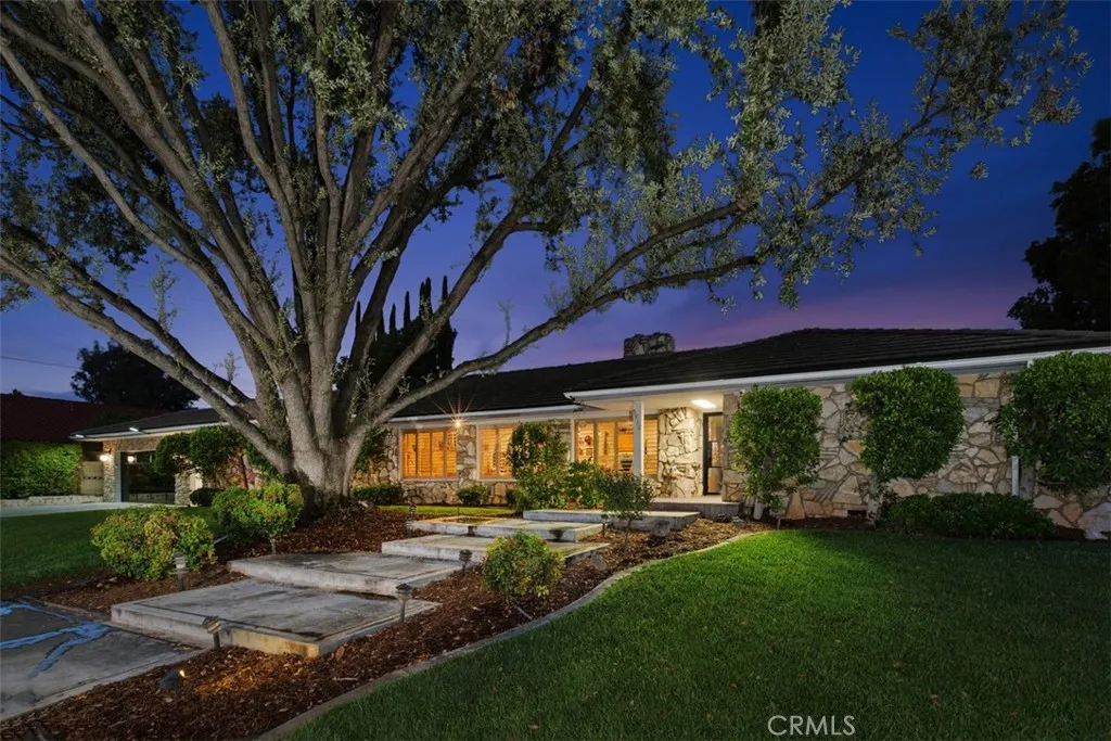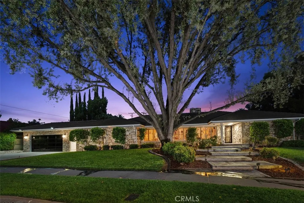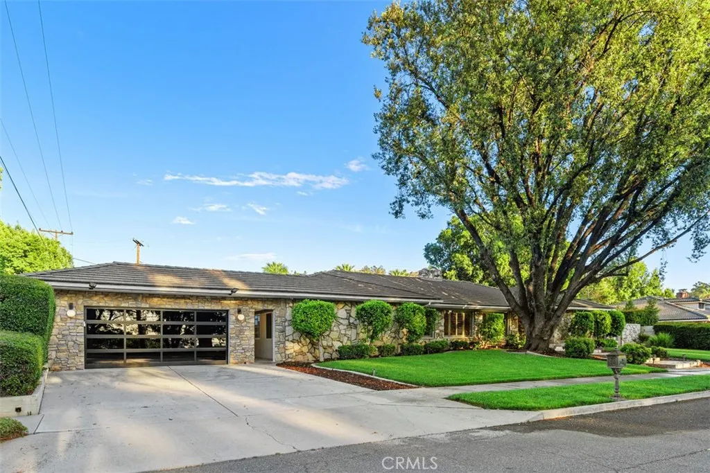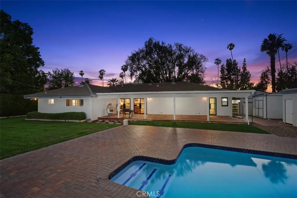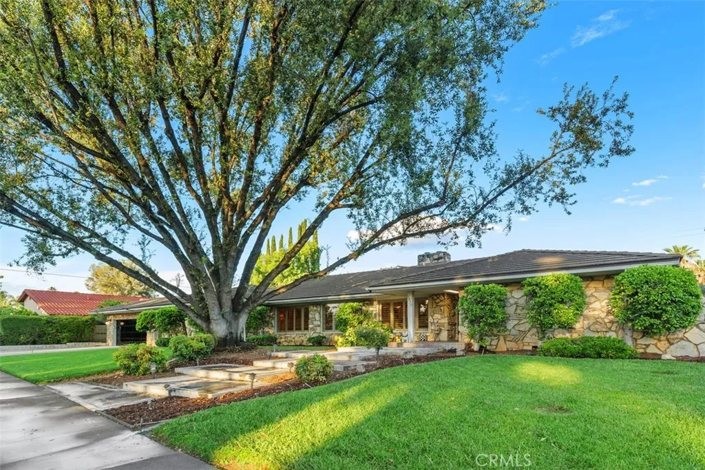 Located along historic tree-lined Victoria Avenue in Riverside’s sought after Hawarden Hills neighborhood is this highly updated and cared for Mid-Century Ranch single story estate. Tucked away on a quiet frontage road of one of Riverside’s most iconic city landmarks this nearly 4,000 square foot home offers a well designed floorplan in a picturesque setting. The living and dining rooms offer expansive park-like views through the three large picture windows looking west. The luxury plank flooring, marble fireplace, plantation shutters, and high end fixtures provide a sense of warmth and curated design to the space. The focal point of the interior is the great room composed of the entertainer’s kitchen and family room. The remodeled kitchen has a grand island with beautiful custom porcelain solid surface counters and backsplash, custom cabinetry, 60” Nostalgie Italian range, deep farmhouse sink, refrigerator and freezer, custom lighting and seating for eight. The family room with it’s raised fireplace is well situated across from the kitchen making the ideal setting for hosting dinner parties and family dinners. Two iron French Doors lookout from the family room on to the patio and pool area. The primary suite is privately located at the east end of the home and has plank flooring, separate tub and walk-in shower, dual sinks, dressing table, and walk-in closet. The three secondary bedrooms provide amply space and are supported by the 2 guest bathrooms. The backyard features a massive covered patio and deck that covers most of the home. A detached pool house/ADU has been recently remodeled and includes a living space, ¾ bathroom and storage area. The in ground pool has been resurfaced and is the perfect place to enjoy Riverside’s sunny weather. The carport has been converted into an oversized 2 car garage and is equipped with a Tesla charger. This turnkey Hawarden Hills makes for the perfect place to call home.
