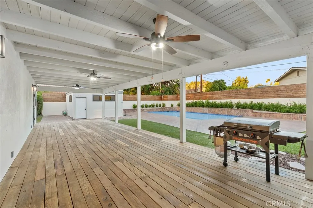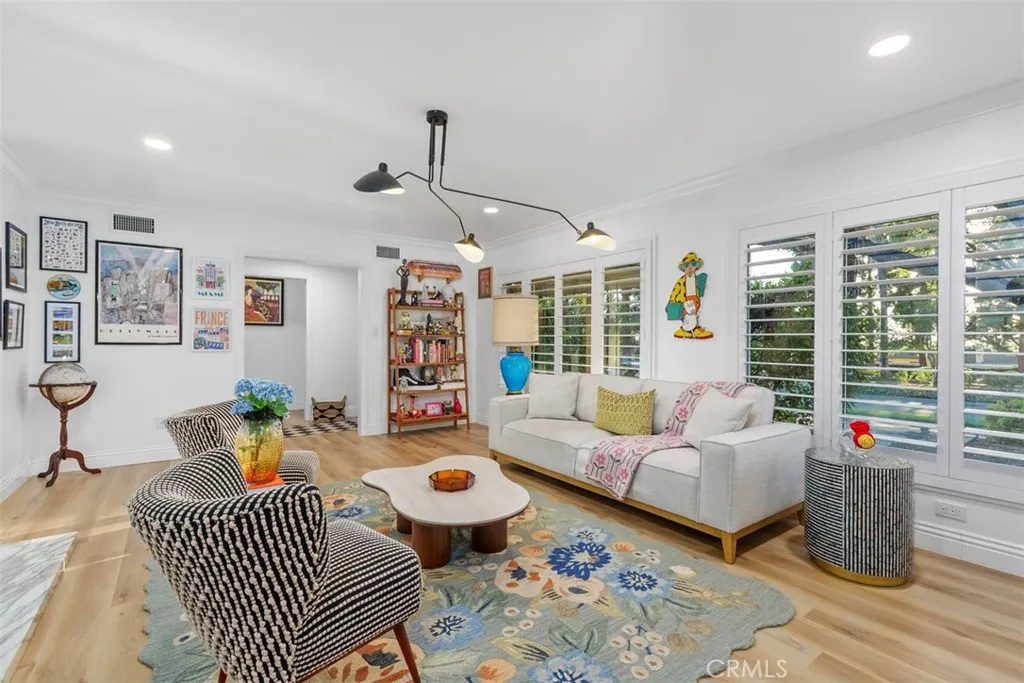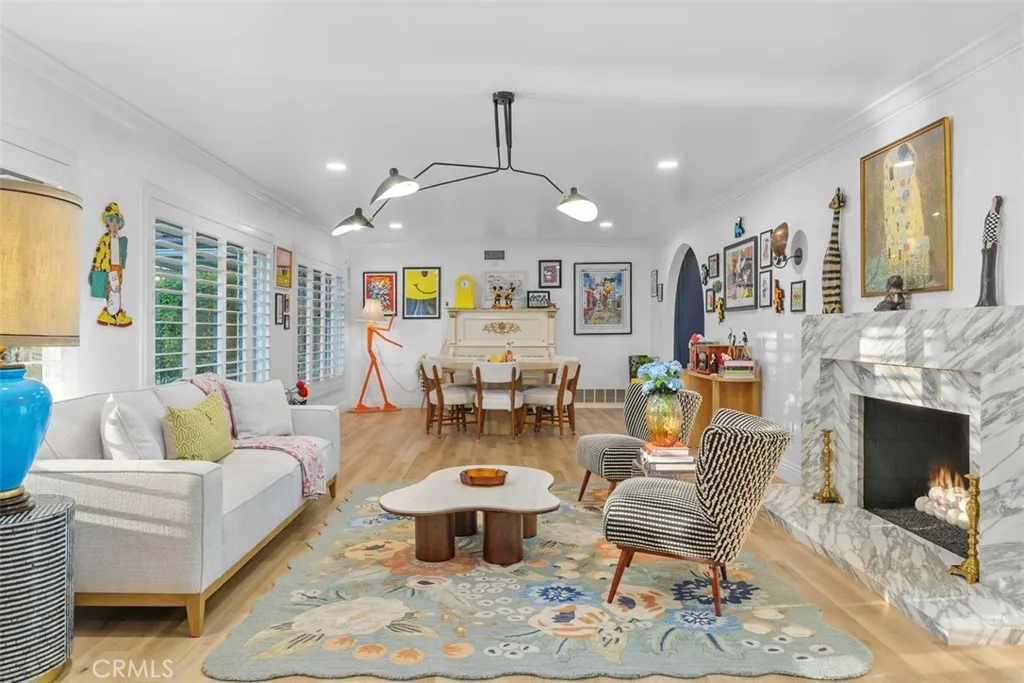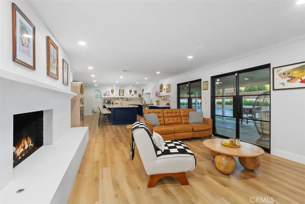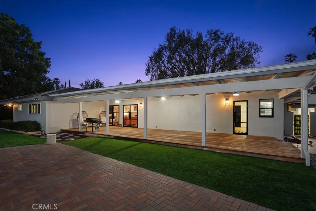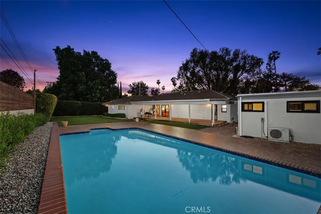 Located along historic tree-lined Victoria Avenue in Riverside’s sought after Hawarden Hills neighborhood is this highly updated and cared for Mid-Century Ranch single story estate. Tucked away on a quiet frontage road of one of Riverside’s most iconic city landmarks this nearly 4,000 square foot home offers a well designed floorplan in a picturesque setting. The living and dining rooms offer expansive park-like views through the three large picture windows looking west. The luxury plank flooring, marble fireplace, plantation shutters, and high end fixtures provide a sense of warmth and curated design to the space. The focal point of the interior is the great room composed of the entertainer’s kitchen and family room. The remodeled kitchen has a grand island with beautiful custom porcelain solid surface counters and backsplash, custom cabinetry, 60” Nostalgie Italian range, deep farmhouse sink, refrigerator and freezer, custom lighting and seating for eight. The family room with it’s raised fireplace is well situated across from the kitchen making the ideal setting for hosting dinner parties and family dinners. Two iron French Doors lookout from the family room on to the patio and pool area. The primary suite is privately located at the east end of the home and has plank flooring, separate tub and walk-in shower, dual sinks, dressing table, and walk-in closet. The three secondary bedrooms provide amply space and are supported by the 2 guest bathrooms. The backyard features a massive covered patio and deck that covers most of the home. A detached pool house/ADU has been recently remodeled and includes a living space, ¾ bathroom and storage area. The in ground pool has been resurfaced and is the perfect place to enjoy Riverside’s sunny weather. The carport has been converted into an oversized 2 car garage and is equipped with a Tesla charger. This turnkey Hawarden Hills makes for the perfect place to call home.