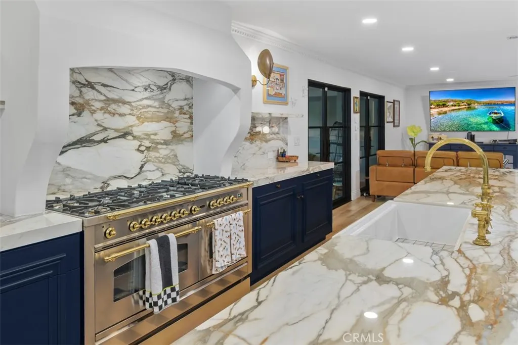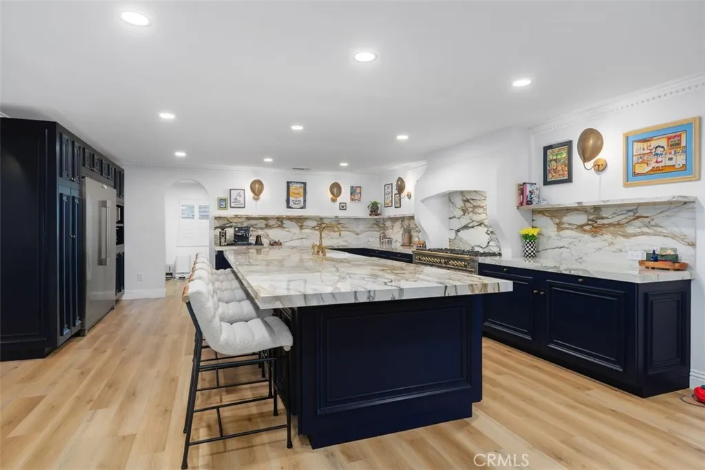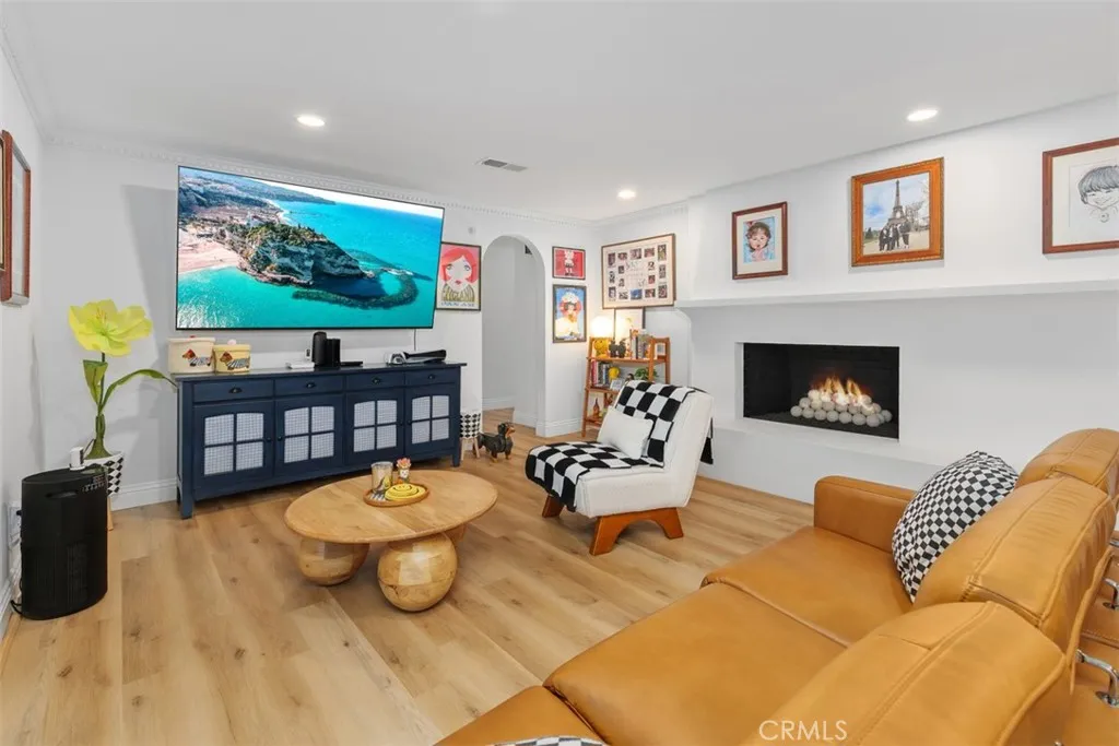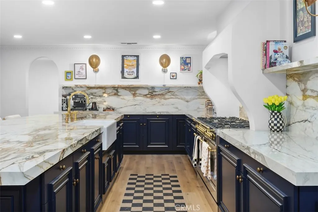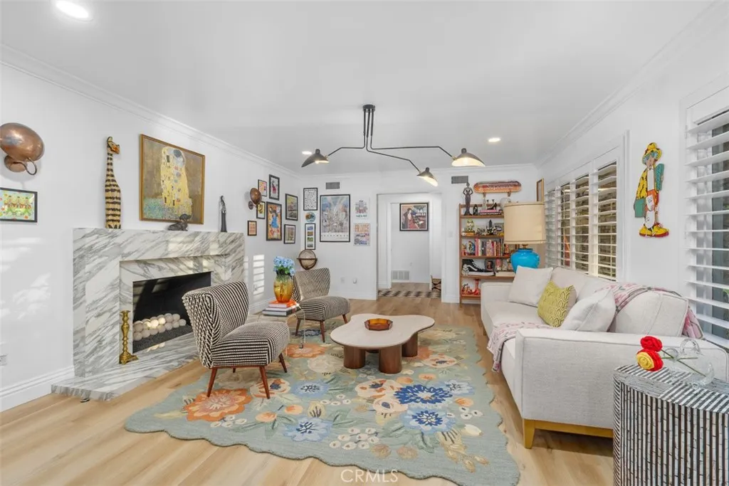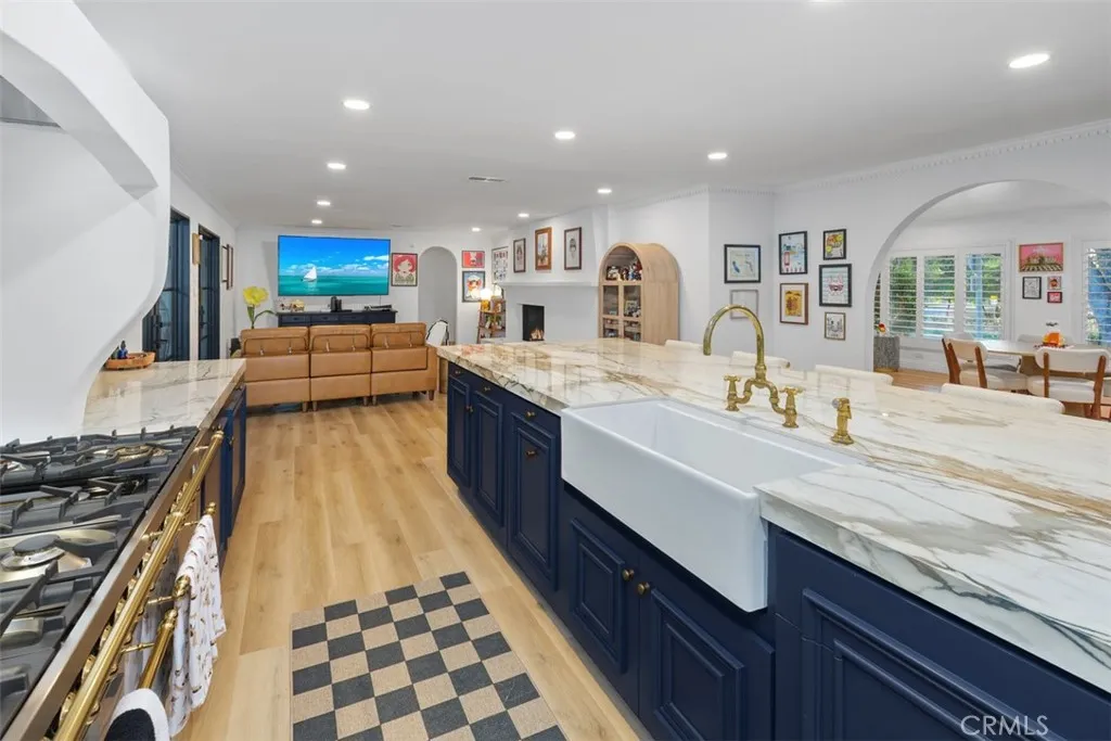 Located along historic tree-lined Victoria Avenue in Riverside’s sought after Hawarden Hills neighborhood is this highly updated and cared for Mid-Century Ranch single story estate. Tucked away on a quiet frontage road of one of Riverside’s most iconic city landmarks this nearly 4,000 square foot home offers a well designed floorplan in a picturesque setting. The living and dining rooms offer expansive park-like views through the three large picture windows looking west. The luxury plank flooring, marble fireplace, plantation shutters, and high end fixtures provide a sense of warmth and curated design to the space. The focal point of the interior is the great room composed of the entertainer’s kitchen and family room. The remodeled kitchen has a grand island with beautiful custom porcelain solid surface counters and backsplash, custom cabinetry, 60” Nostalgie Italian range, deep farmhouse sink, refrigerator and freezer, custom lighting and seating for eight. The family room with it’s raised fireplace is well situated across from the kitchen making the ideal setting for hosting dinner parties and family dinners. Two iron French Doors lookout from the family room on to the patio and pool area. The primary suite is privately located at the east end of the home and has plank flooring, separate tub and walk-in shower, dual sinks, dressing table, and walk-in closet. The three secondary bedrooms provide amply space and are supported by the 2 guest bathrooms. The backyard features a massive covered patio and deck that covers most of the home. A detached pool house/ADU has been recently remodeled and includes a living space, ¾ bathroom and storage area. The in ground pool has been resurfaced and is the perfect place to enjoy Riverside’s sunny weather. The carport has been converted into an oversized 2 car garage and is equipped with a Tesla charger. This turnkey Hawarden Hills makes for the perfect place to call home.