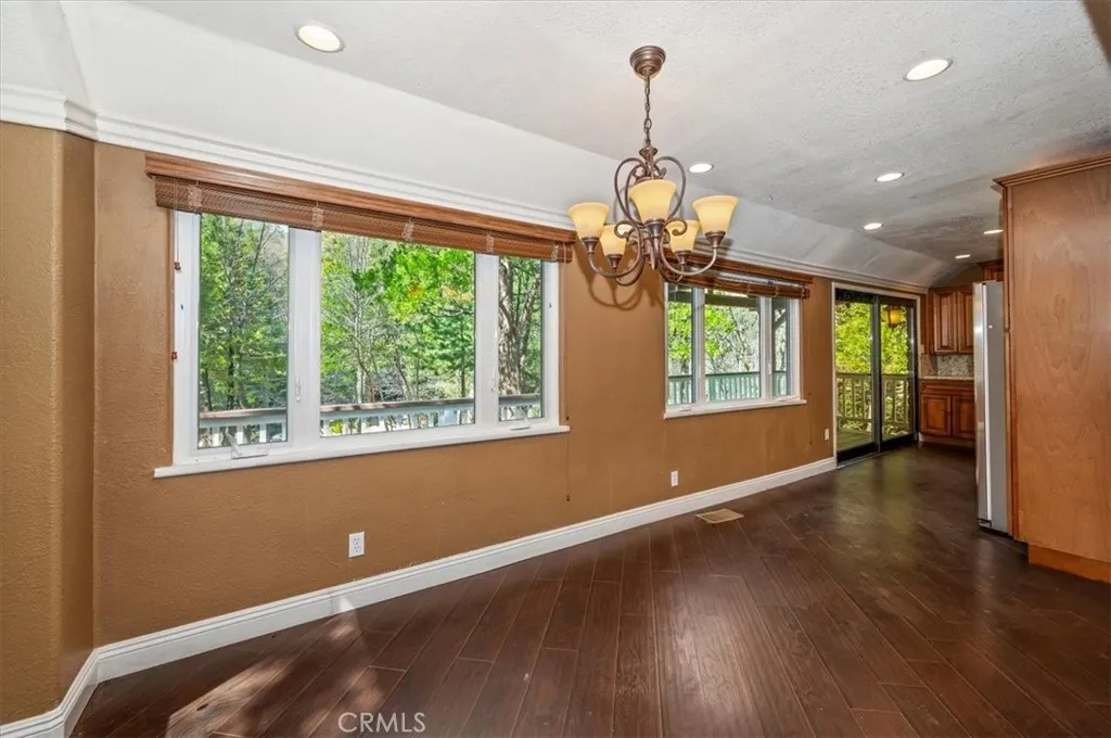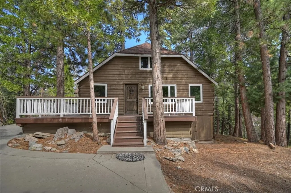 If you've been searching for that classic storybook cabin tucked deep in the woods, this is the one that feels like it's been waiting for you. Set on a peaceful, tree-filled lot of nearly one-third acre, this charming 1927 cabin offers total privacy, fresh mountain air, and a true escape from the everyday. A newly poured concrete driveway winds you up to the cabin, which sits gently on a hill among the trees. Step onto the wraparound covered deck and you're instantly surrounded by the quiet stillness of the forest-perfect spot for morning coffee, reading a book, or watching the light shift through the cedars. Located in the beloved Little Bear community, you're a short stroll to Blue Jay shops and restaurants and just a short drive to Lake Arrowhead-but it still feels like a hidden world of its own. The Little Bear community itself is known for its preserved forest land and timeless mountain character, making it one of the most special settings in the area. Inside, the main level has a warm, easy flow with an open living room, dining area, kitchen, two cozy bedrooms, and a full bath. Upstairs, offers two additional bedrooms and another bathroom giving plenty of space for family, guests, or quiet retreat rooms. A brand-new furnace has been added for comfort during snowy winter nights. Out back, there's a level yard perfect for a hammock, horseshoes, or simply sitting under the trees and listening to the wind. With generous off-street parking, there's plenty of room for friends and family to come and stay awhile. This is the kind of cabin where time slows down-and life feels a little simpler.