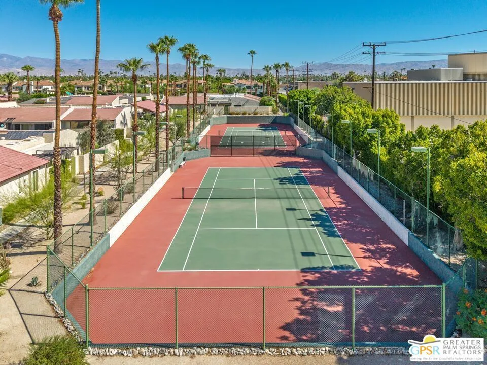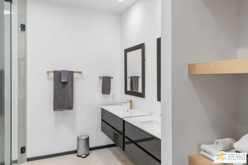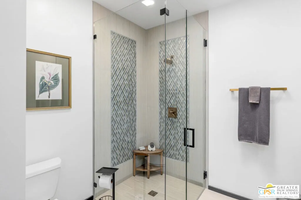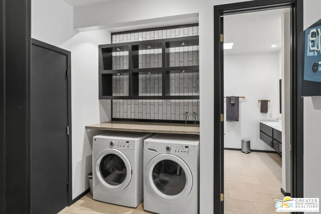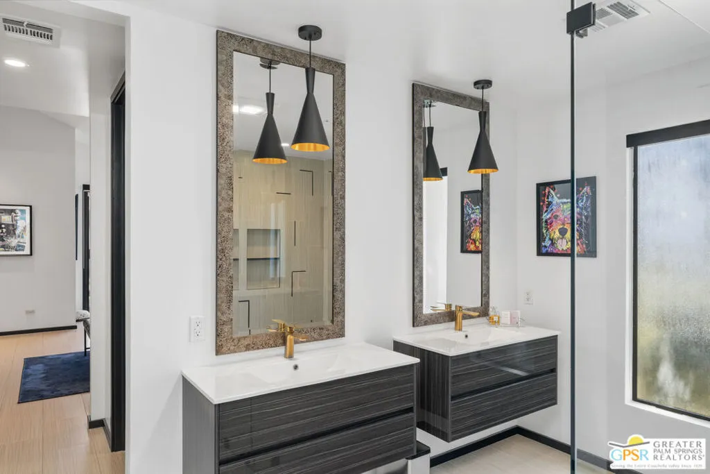 Here it is! This stunningly remodeled unit was taken down to the studs and re-imagined for your modern lifestyle. 1,839 square feet of high end finishes surround you in this 2 bedroom, 2.5 bath home. The large open concept is perfect for entertaining large or intimate gatherings. The light and bright gourmet kitchen features a large center island, stainless appliances and ample storage. The luxurious primary suite features a walk-in closet, dressing area, bar fridge and a spectacular en-suite spa-like bath. Your guests will also feel like they are staying in a resort in the guest room and bath. This beautiful unit also features a very stylish powder room, an extra flex space that can be used as an office, gym, yoga, art studio, library or den. The large wrap around walled in private patio is perfect for that the Palm Springs indoor-outdoor lifestyle and is just steps from the pool. There is also a 2 car garage with direct access. The Palm Regency amenities include 2 pools, 2 spas, 2 tennis courts, clubhouse and stunning mountain views all around. The ideal central PS location is close to everything! You will not find another unit of this quality in this price range. This one is priced to sell and ready to go!