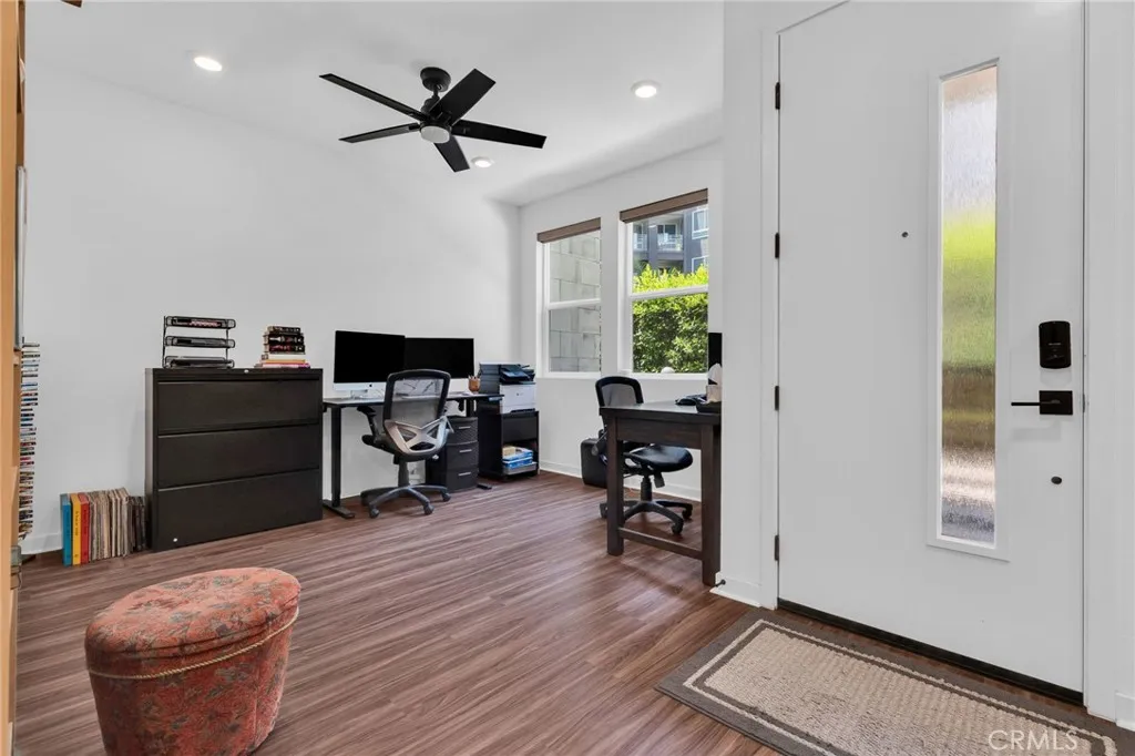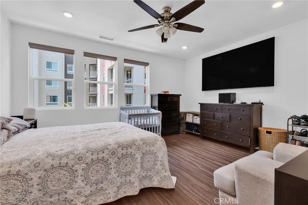 FHA ASSUMABLE LOAN: 3.75%. Welcome to this beautifully maintained 2-bedroom / 3.5+ bathroom home built in 2022 (the FIRST FLOOR has a flex space for possible conversion to a bonus room with its own split system) in the desirable city of Orange. The open-concept living and dining area is filled with natural light and recess lighting and modern finishes. The spacious kitchen includes a farm-style sink, abundant cabinetry, a breakfast bar, quartz countertops, and stainless-steel appliances. The unit has upgraded vinyl water-resistant flooring throughout with its own balcony. Keep your electric bills down with paid-off solar panels. The large primary suite offers a well-sized room with lots of windows and a ceiling fan attached to an updated en-suite bathroom with dual sinks and a walk-in closet with dual side mirrors for ultimate comfort and privacy. The unit boasts full washer and dryer hookups, making it convenient to do laundry, and has plenty of added storage. The second room also has a ceiling fan and an en-suite full bathroom with lots of natural light overlooking the scenic pool area. Additional highlights include an attached 2-car garage with direct access and added storage. Flex space would be great if you wanted to convert it to a private mother-in-law suite, or it could be used as a private office space or baby room. Pets are no problem. Tankless water heater and central air and heat for the entire unit Perfectly situated minutes from The Outlets at Orange, CHOC Hospital, UCI Medical Center, schools, dining, Chapman University, and major freeways (5, 22, 57), this home offers both convenience and tranquility. DON’T MISS OUT ON THIS PROPERTY; CONTACT US TODAY!