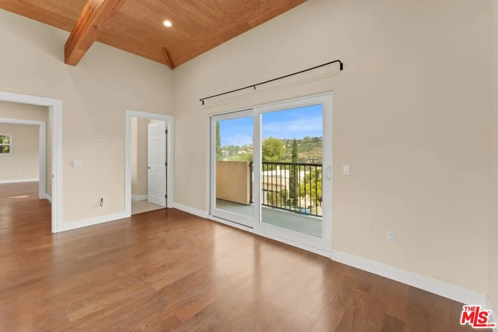 This newer build in Mount Washington offers luxurious, modern living on a secluded street with direct access to the 35-acre Elyria Canyon Park - nature park and hiking trails. Featuring three bedrooms all with en suite bathrooms and private patios. The home boasts high ceilings, wood floors, recessed lighting, and a gated yard elevated above the street with hillside views. It's easy to connect with nature as all common areas and bedrooms have access to outdoor patios. The gourmet kitchen includes premium commercial appliances, stone countertops and abundant storage. There is kitchen peninsula seating, an open sightline dining room, step-down living room with patio access and separate family room with rear yard access. The primary suite offers a spa-like bath with a soaking tub, separate shower, vaulted ceilings, a private patio and an oversized walk-in closet. All serviced by a two-car direct access garage. Experience the perfect blend of modern comfort and nature-focused living. Owner to pay gardener. Renters insurance required.