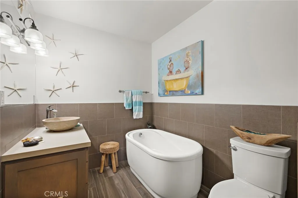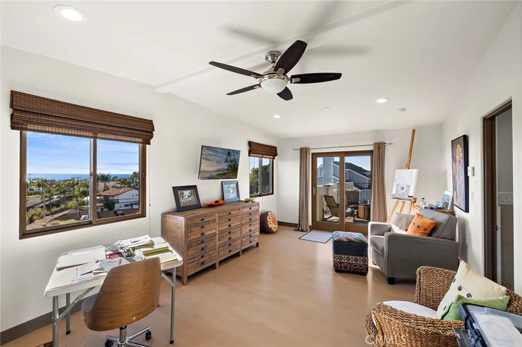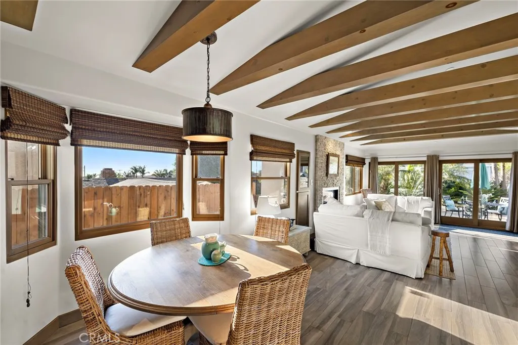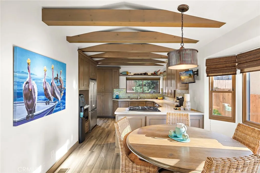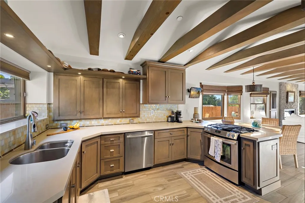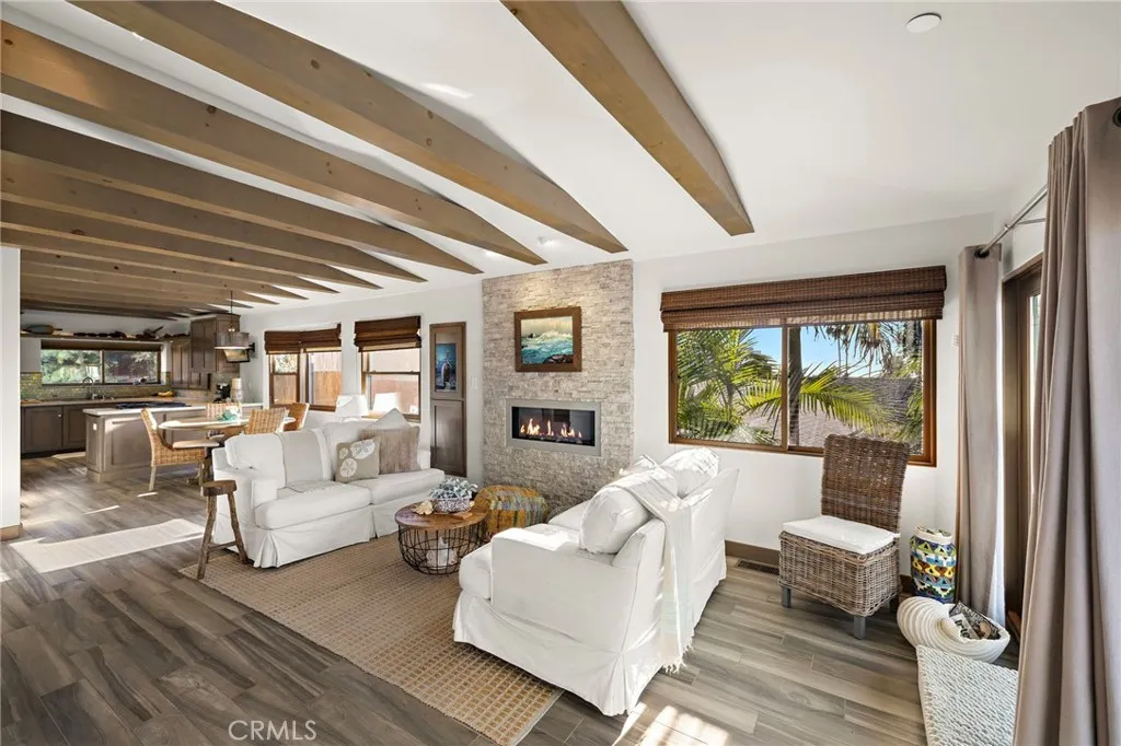 Experience elevated coastal living in this stunning Southwest San Clemente lease, just moments from Lost Winds and Riviera beaches. This beautifully maintained 3BD/2BA residence offers a light-filled, open-concept floor plan with soaring beamed ceilings, a statement fireplace, and seamless indoor-outdoor flow. Ocean views can be enjoyed from the main living areas and extend to the upstairs living areas and the oversized upstairs patio—perfect for sunset lounging and coastal breezes. The kitchen is thoughtfully appointed with stainless steel appliances and designer finishes, opening to spacious dining and living areas. Upstairs features a serene primary suite and additional bedroom, while the lower level offers flexible living with guest accommodations. Lush landscaping, a welcoming front patio, and a private backyard with pergola create ideal spaces for relaxing or entertaining. Note: Owner is in the process of enclosing one downstairs en-suite bedroom to create a separate private owner’s unit.