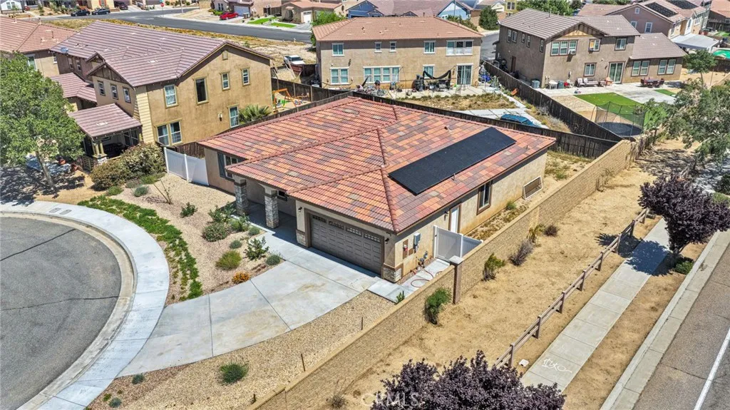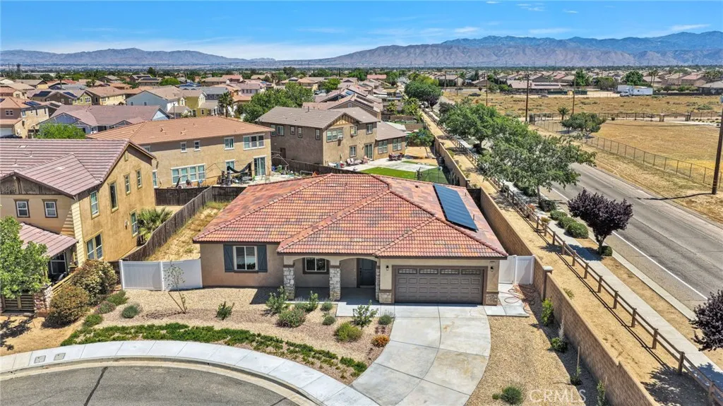 Experience elevated living in this expansive two-story residence designed for comfort, style, and effortless entertaining. The beautifully appointed kitchen showcases abundant cabinetry, tiled countertops, and a generous center island that serves as the perfect gathering space. It flows seamlessly into the dining area and opens to the backyard, creating an ideal indoor-outdoor lifestyle. Step outside to your own private backyard retreat featuring a sparkling pool, perfect for summer entertaining and relaxing weekends at home. Energy efficiency meets long-term savings with the added benefit of solar, enhancing both sustainability and value. The thoughtfully designed layout includes a convenient downstairs powder room for guests, spacious living areas, and modern appliances that complement the home’s functionality. With ample room to live, work, and entertain, this property offers the perfect blend of comfort and upscale appeal. Located in a desirable Victorville neighborhood near schools, shopping, and commuter access, this home delivers luxury, space, and lifestyle all in one. Buyer to verify all information.