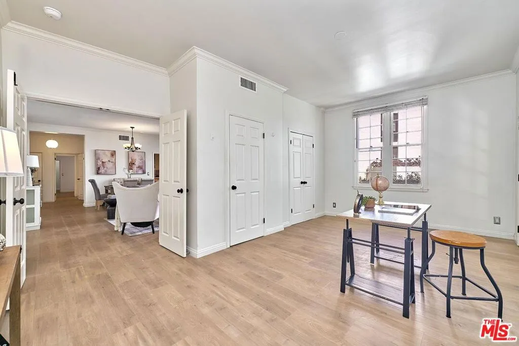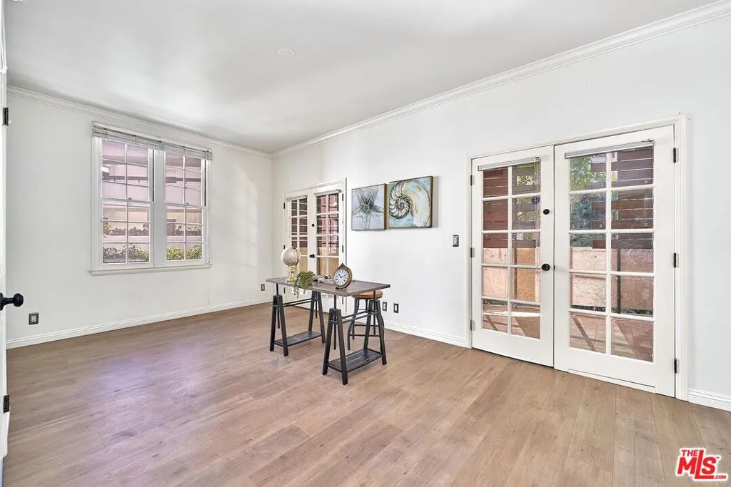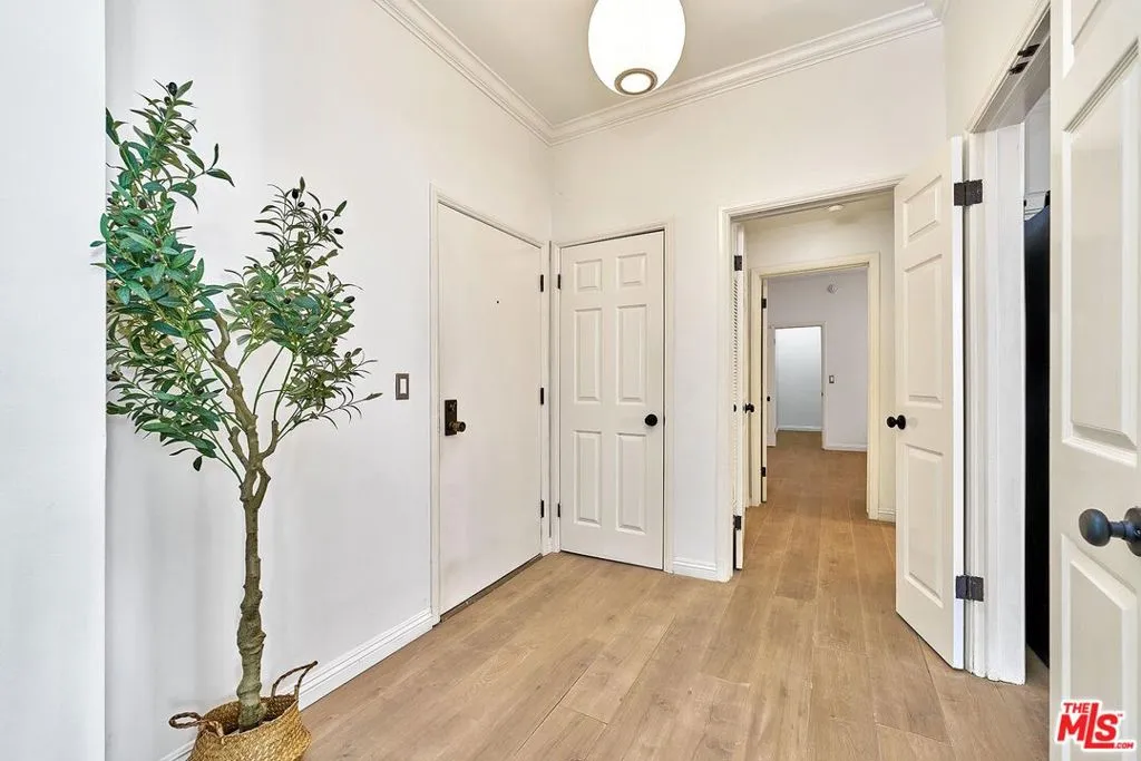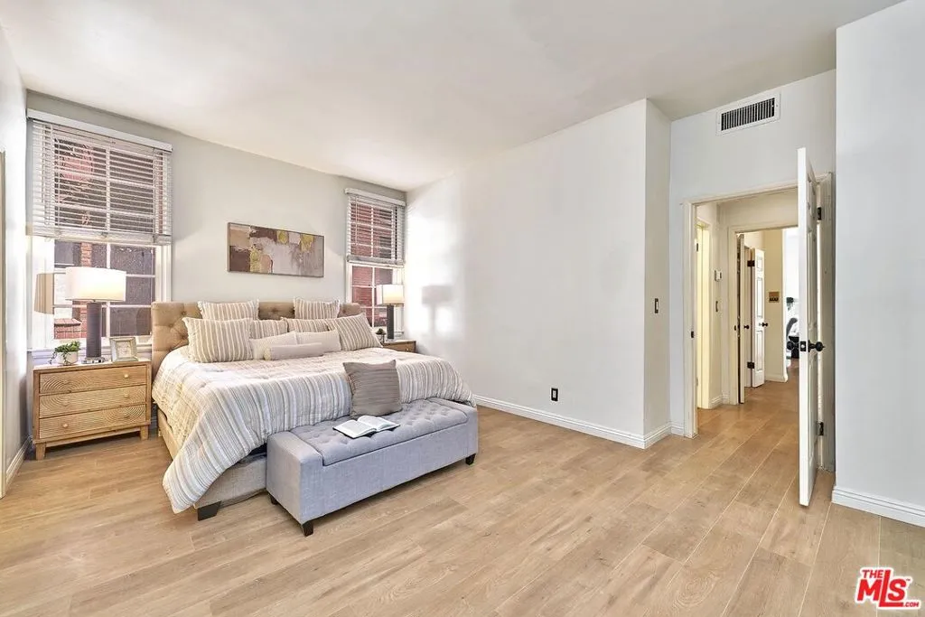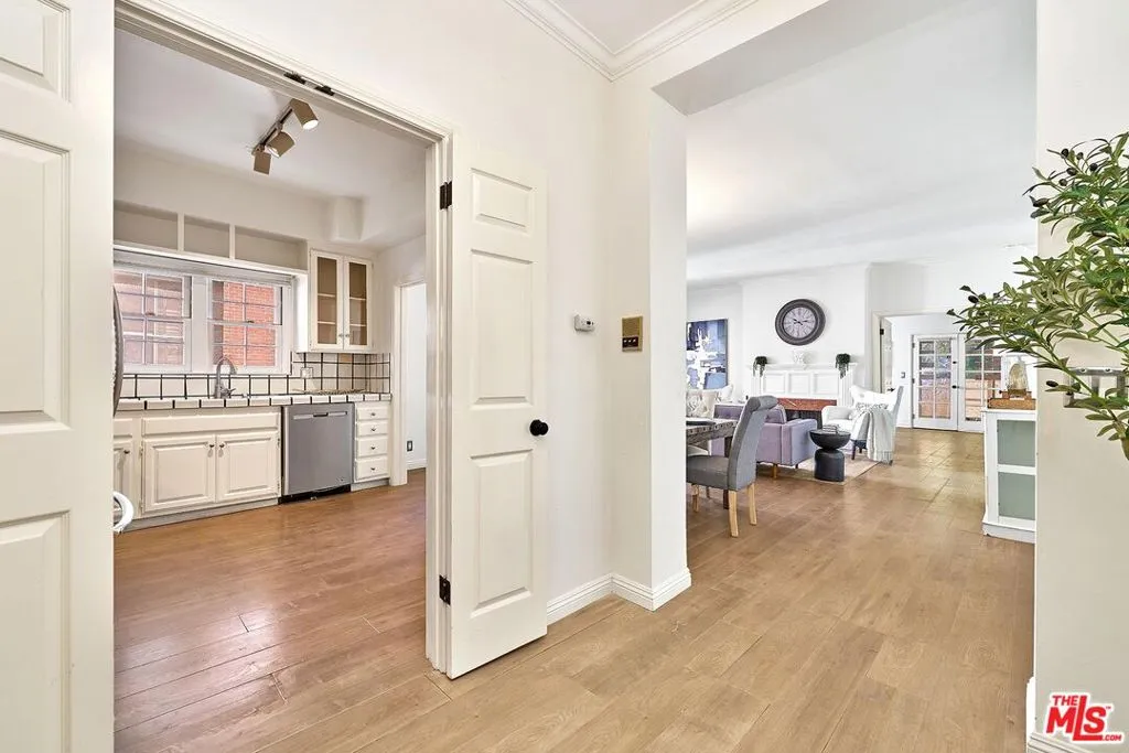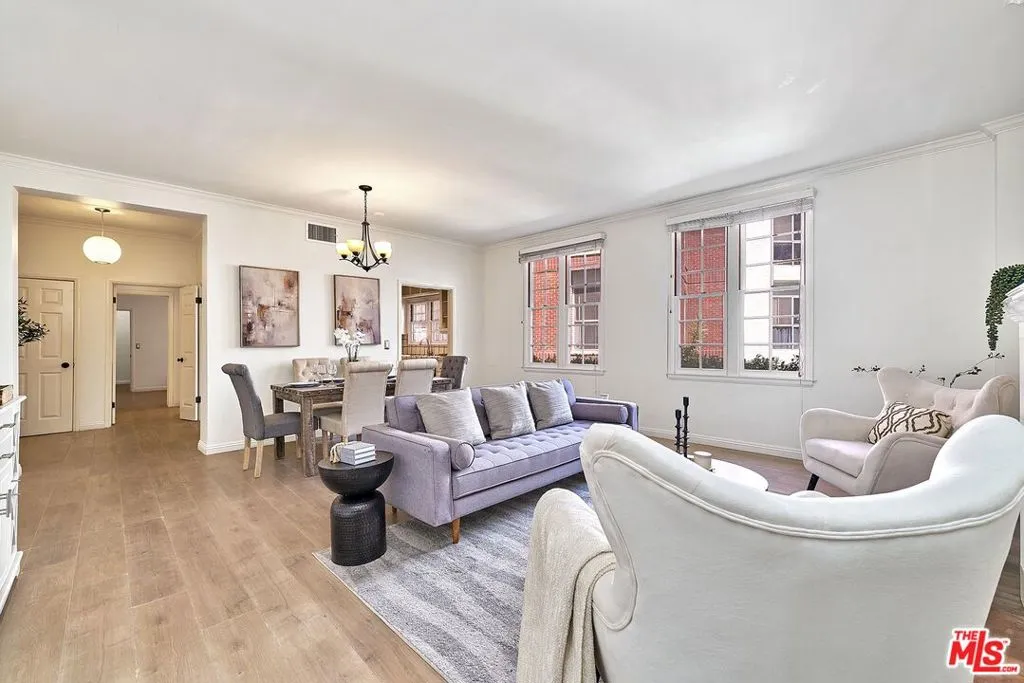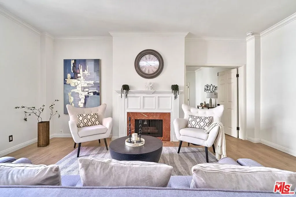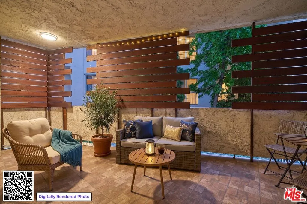 Welcome to your serene Brentwood retreat at 420 S. Barrington Avenue. This inviting condominium offers the perfect blend of comfort, style, and secure city living. The thoughtfully designed floor plan features two spacious bedrooms positioned on opposite sides of the home, offering enhanced privacy and flexibility. A generously sized living room with a classic fireplace creates a warm and inviting centerpiece for everyday living and entertaining. Just beyond the living room, charming French doors open to an oversized private balcony complete with custom wood-slat privacy screens, creating the perfect extension of your indoor living space for relaxing or entertaining outdoors. A brand-new HVAC system adds modern comfort and efficiency year-round, while a separate laundry area adds everyday convenience and functionality. The meticulously maintained community offers side-by-side parking in a gated garage, convenient guest parking, and additional assigned storage on the fourth floor. Set within a boutique building, the residence provides a rare sense of privacy and exclusivity, while also welcoming your furry family members.Located moments from Brentwood's premier dining, shopping, and neighborhood parks, this home delivers an exceptional blend of style, comfort, and walkable convenience in one of Los Angeles' most sought-after communities.