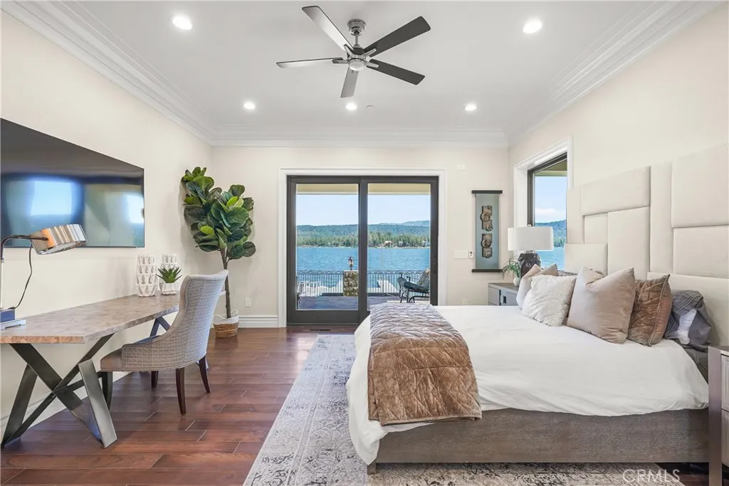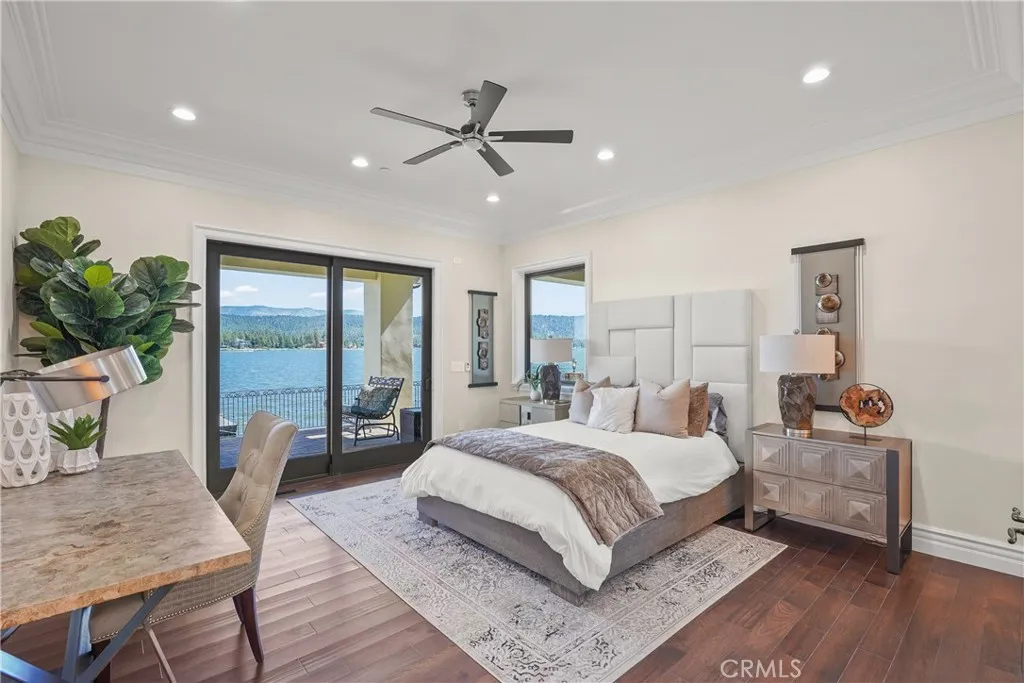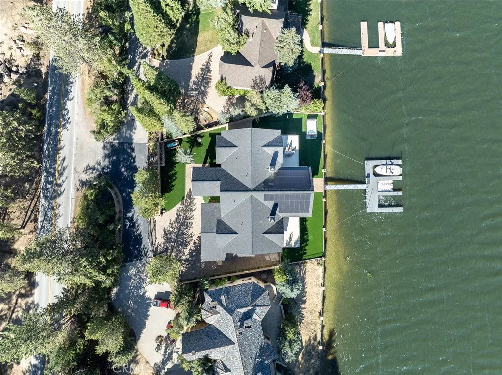 This fully modern remodeled lakefront home in Fawnskin, Big Bear Lake, in a private gated area offers a perfect blend of luxurious living and natural beauty. With six spacious bedrooms 6.5 bathrooms including a steam shower in the master suite. plus an extra game room and family room. The open-concept floor plan allows for seamless flow between the living spaces, with floor-to-ceiling windows that bring in an abundance of natural light while showcasing breathtaking lake views. Large glass doors open directly to outdoor patios, offering the perfect setting to enjoy a drink and take in the serene surroundings. The home boasts a stunning island kitchen equipped with high-end finishes and LED lighting, which can be controlled remotely from your phone for convenience. This chef-inspired kitchen is perfect for entertaining guests or enjoying a quiet meal. Adjacent to the kitchen is a cozy family room with ample seating, providing a great space for relaxing and socializing. The property also includes a game room with a bar area, ideal for hosting parties or enjoying casual evenings with loved ones. A private 3 slip dock extends from the property, offering direct access to the water for boating, fishing, jet skis, or simply enjoying the lakefront lifestyle. With unparalleled views of the lake and surrounding mountains, the home truly makes you feel as if you're on the water itself. Whether you’re relaxing indoors, enjoying the outdoors, or hosting gatherings in the game room, this home is a perfect sanctuary for those seeking luxury, comfort, and a prime location on Big Bear Lake.