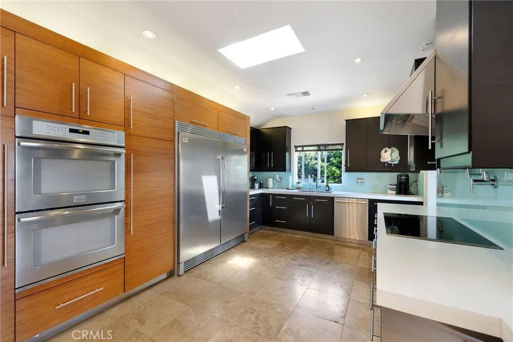 Welcome to this remodeled 3 Bedroom home in the heart of Lake View Terrace. Step inside to a spacious layout featuring a bright living room with a modern kitchen that includes a quartz countertops, dual ovens, built-in refrigerator and freezer, and induction cooktop. Enjoy meals in the formal dining area or at the breakfast bar. Upstairs, the primary suite offers a cozy retreat with an updated en-suite bathroom, multi-head shower, built-in storage, and a walk-in closet. The home also features remodeled bathrooms, a finished two-car garage, spacious front and backyard, and an outdoor BBQ perfect for entertaining guests.
