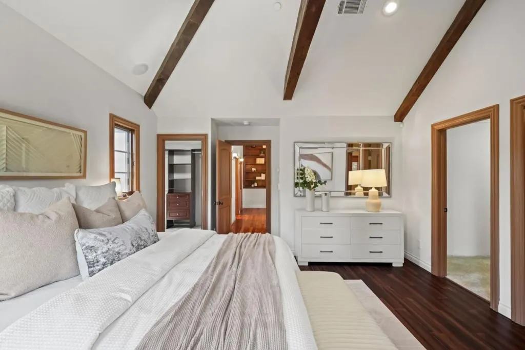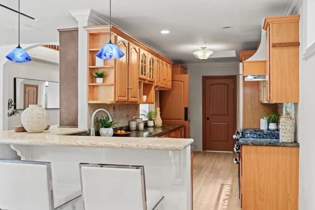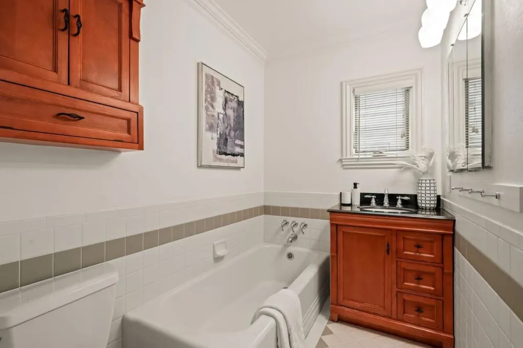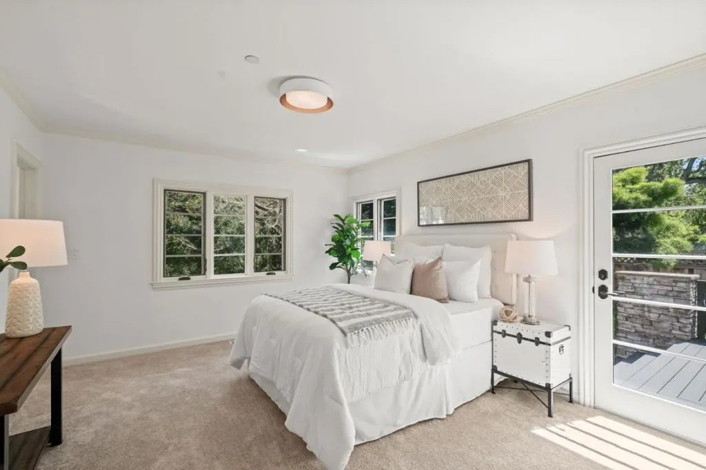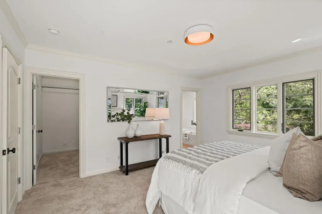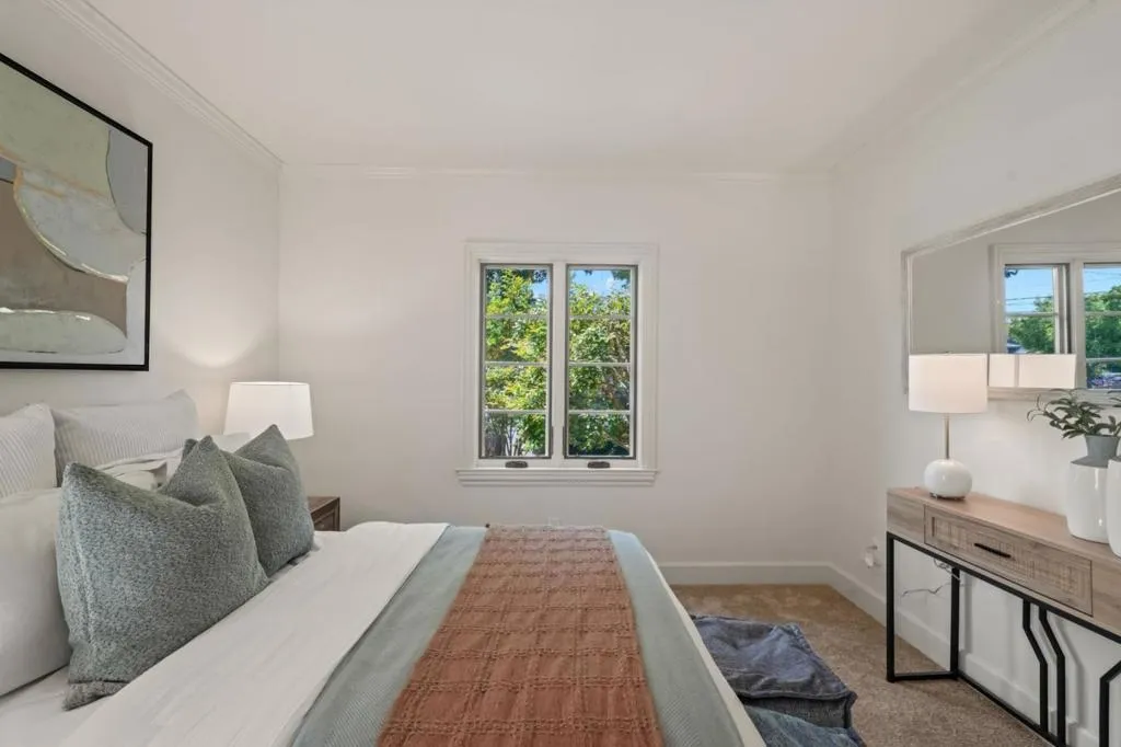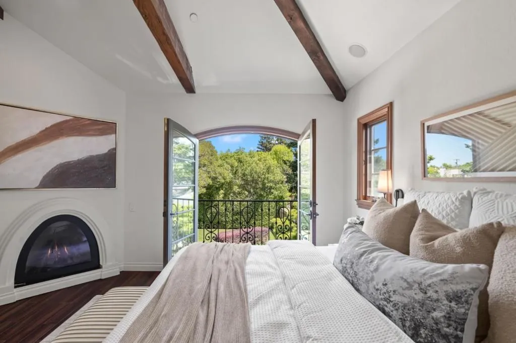 Remodeled and expanded in 2006, this Burlingame stunner offers a flexible, thoughtfully designed floor plan for modern living. Set on an oversized, private lot with mature landscaping, the home blends timeless elegance with everyday comfort. The main level features a formal living room with gas-assist wood fireplace and dining room with soaring two-story ceiling and statement chandelier. The chef's kitchen includes stainless steel appliances, granite countertops, breakfast bar, and eat-in area, opening to a home theater family room with surround sound. A laundry/pantry with additional oven and refrigerator adds convenience. The main level includes two bedrooms with a hall bath, plus a junior primary suite with en-suite bath, walk-in closet, and private rear entrance ideal for guests, extended family, or au pair. Upstairs, the primary suite offers dual walk-in closets, along with a wood-paneled library with custom shelving and sliding ladder, a 5th bedroom, and hall bath. Additional features include new flooring and paint, plus attached one-car garage. The backyard is designed for California living with a built-in BBQ, plumbed gas firepit, and water feature surrounded by a sunny yard and lush landscaping. Walk to top-rated Burlingame schools, Caltrain, and downtown Burlingame.