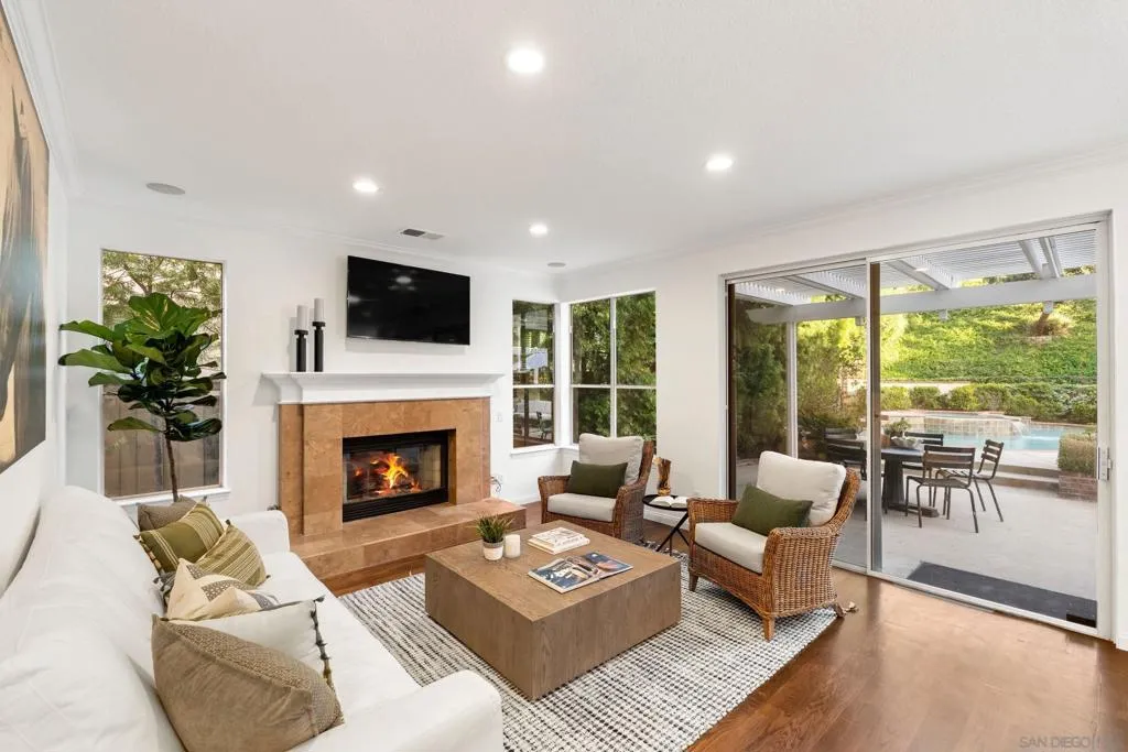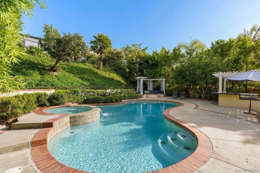 Sitting on a private cul-de-sac in the highly desirable Santa Fe Summit neighborhood of Carmel Valley, this home is walking distance to Torrey Pines High School and nearby parks, hiking trails and highly-rated schools. As you step inside, you're greeted with soaring ceilings, beautiful millwork, and a light and bright floor plan with a full bedroom and bathroom on the first floor, fully remodeled kitchen with ample cabinet and counter space, and upstairs master suite with a two-way fireplace, large walk-in closet and separate tub/shower. The backyard is great for entertaining highlighting a sparkling pool/spa, outdoor kitchen with sit-in bar, cabana, multiple patios and outdoor fire pit. The home also features new HVAC, a loft/media room, attached 3-car garage, EV charger, whole house water filtration and charming curb appeal. This is not one to miss!