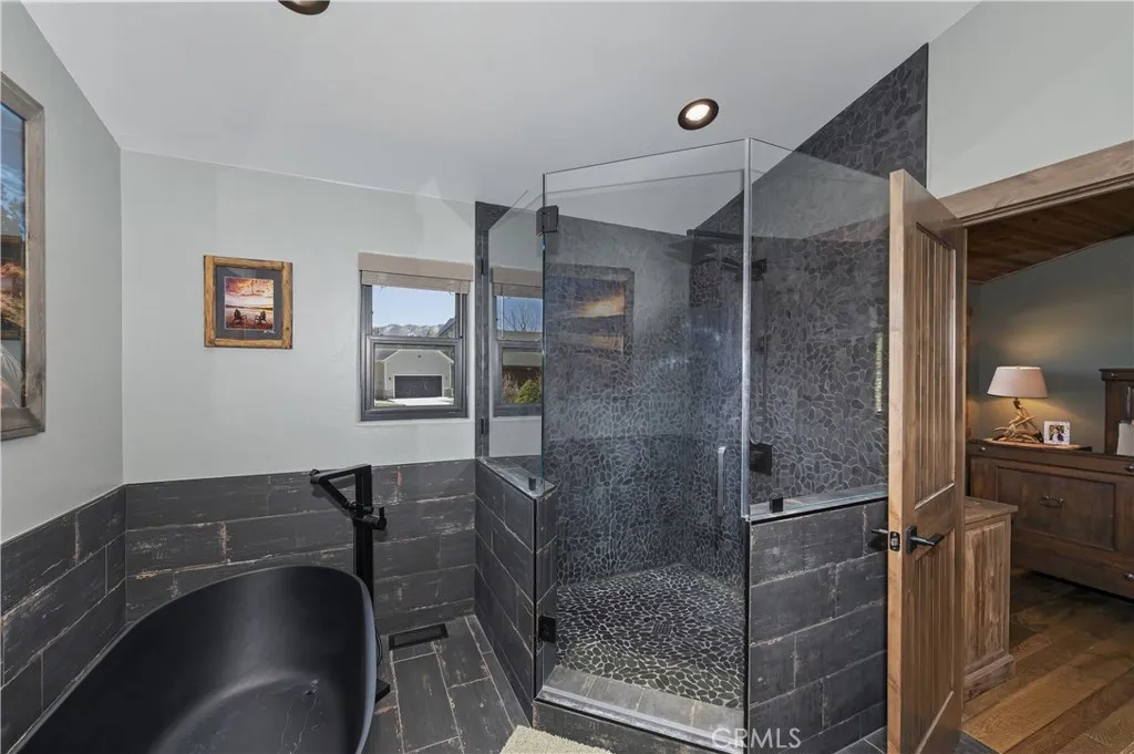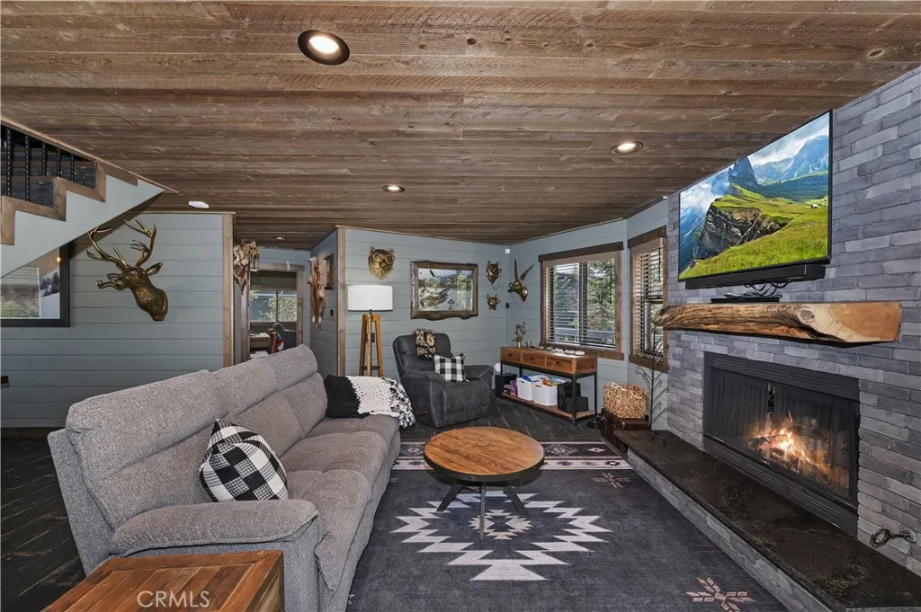 Tucked inside the gates of Eagles Knoll Estates, this fully reimagined mountain retreat blends modern upgrades with urban mountain charm. Offering 4 bedrooms, 2.5 baths, and 2,948 square feet of living space on an expansive 16,842 sq ft lot, this home was designed for comfort, entertaining, and everyday ease. From the moment you step inside, you’ll notice the attention to detail—wood-style tile flooring throughout for durability and style, stunning ghost wood pine ceilings that bring warmth and character, and an open layout perfect for gathering. The chef’s kitchen is a true centerpiece, featuring ZLINE stainless steel appliances, rich Alder cabinetry, and sleek black quartz countertops with a perfect vantage point to stay connected while entertaining. The main-level primary suite offers a private retreat with its own gas fireplace and direct access to the backyard, creating a seamless indoor-outdoor feel. Every inch of the home has been thoughtfully upgraded, including newer California Deluxe windows and doors, a newer roof, and fresh interior and exterior paint. Need space for fun? The fully finished game room off the garage is ready for it all, complete with engineered hardwood accents that elevate the space. Car enthusiasts and adventure seekers will love the oversized, 3-car garage with epoxy-style flooring—ideal for storing vehicles, boats, or mountain toys. Step outside and enjoy a backyard designed for both relaxation and play, with room for kids, pets, and gatherings. As part of this private lakeside community, you’ll also enjoy access to HOA amenities including a park, tennis/pickleball courts—and rare dock rights to the community docks, making lake days effortless. With no short-term rentals allowed, Eagles Knoll Estates offers a level of privacy and tranquility that’s hard to find, all while being just a short stroll to shops, restaurants, and the Alpine Pedal Path. This is more than a home—it’s a lifestyle.