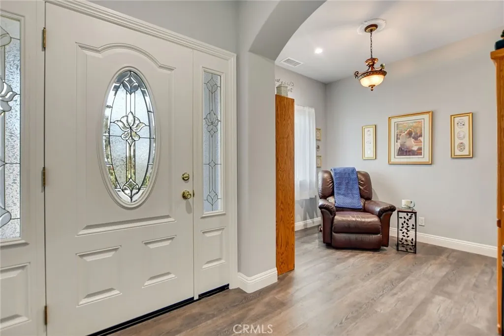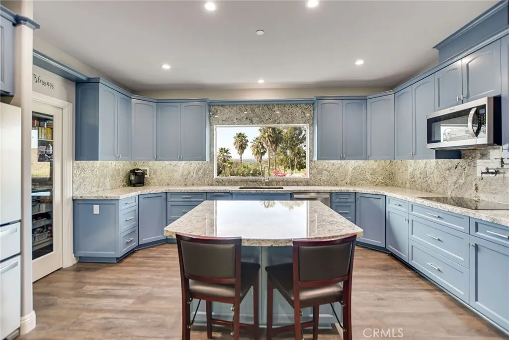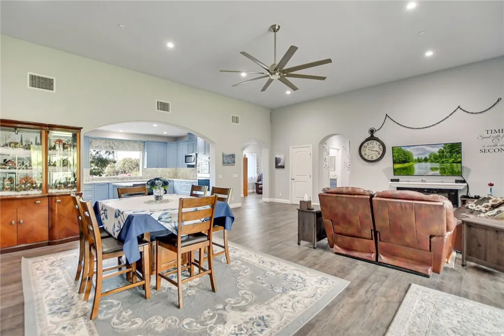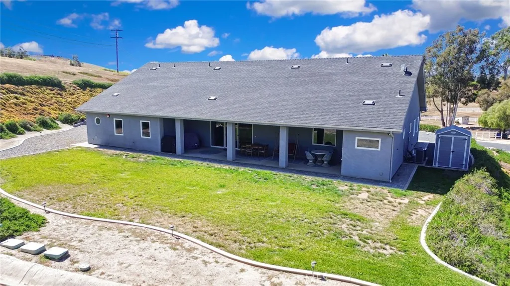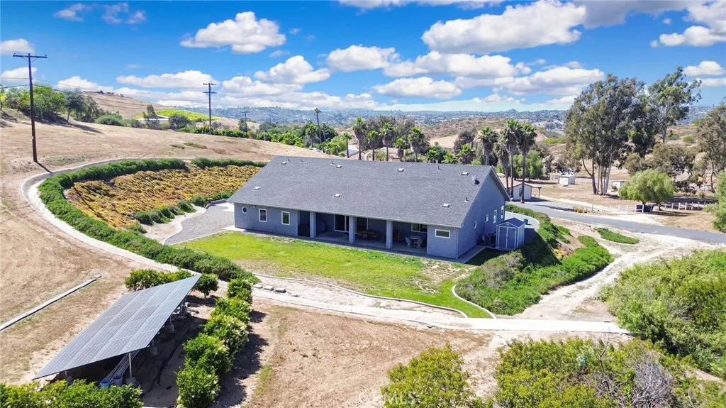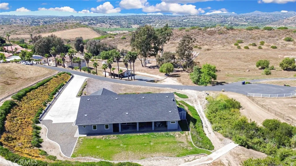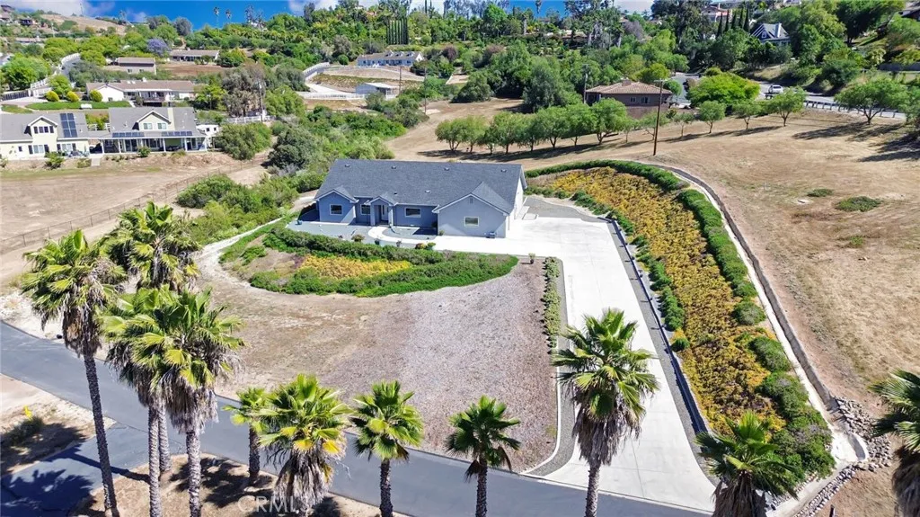 Experience refined country living in this beautifully crafted custom home set on 2.41 private acres at the end of a quiet cul-de-sac. Thoughtfully designed with both comfort and functionality in mind, this exceptional 3-bedroom, 3-bath residence offers spacious living, high-end finishes, and remarkable attention to detail throughout. The heart of the home is an impressive great room with soaring 12-foot ceilings, abundant recessed lighting, and expansive picture windows that frame the surrounding landscape. A dramatic 9’ x 12’ sliding glass patio door seamlessly connects the interior living space to a large covered patio, creating an effortless indoor-outdoor lifestyle. The chef’s kitchen is designed for both entertaining and everyday living, featuring custom soft-closing cabinetry, granite countertops throughout, under- and over-cabinet LED lighting, a generous island with ample workspace, pot filler above the stove, and a walk-in pantry conveniently located between the kitchen and garage. Each of the three bedrooms offers its own private full bathroom and walk-in closet, while the primary suite is thoughtfully positioned on the opposite wing of the home for added privacy. Luxury details continue with porcelain-tiled showers, custom closet shelving, ceiling fans throughout, waterproof luxury vinyl flooring, and a beautifully appointed laundry room with extensive cabinetry, granite countertops, and utility sink. The finished 3-car garage features sealed flooring, whole-house water filtration, automatic door openers with battery backup, and attic storage with walkable trusses. Outside, the expansive grounds offer exceptional versatility with solar panels, RV hookups, a long private driveway, landscaped yards, hillside plantings, and ample space for equestrian facilities, a future ADU, or other expansion with A70 zoning. Blending thoughtful design, modern efficiency, and peaceful acreage, this one-of-a-kind property offers a rare opportunity to enjoy privacy, space, and elevated living.