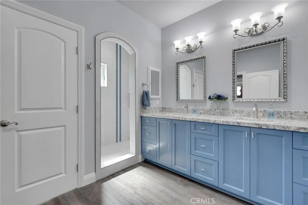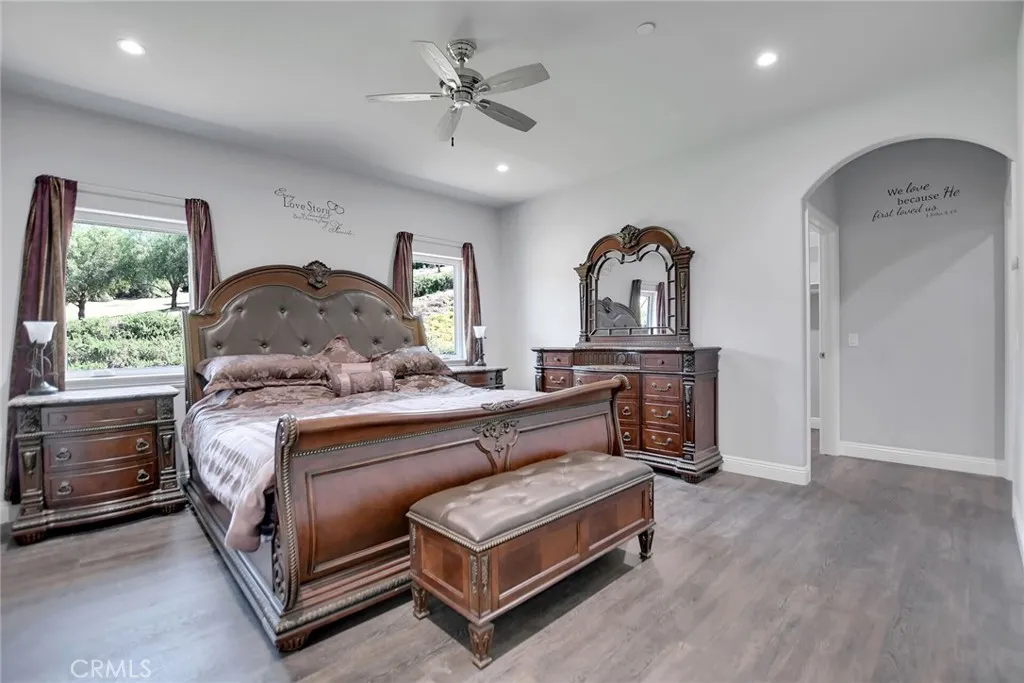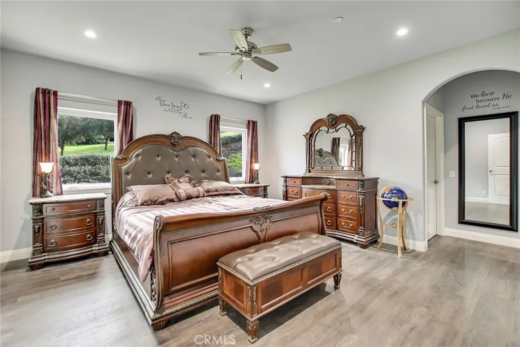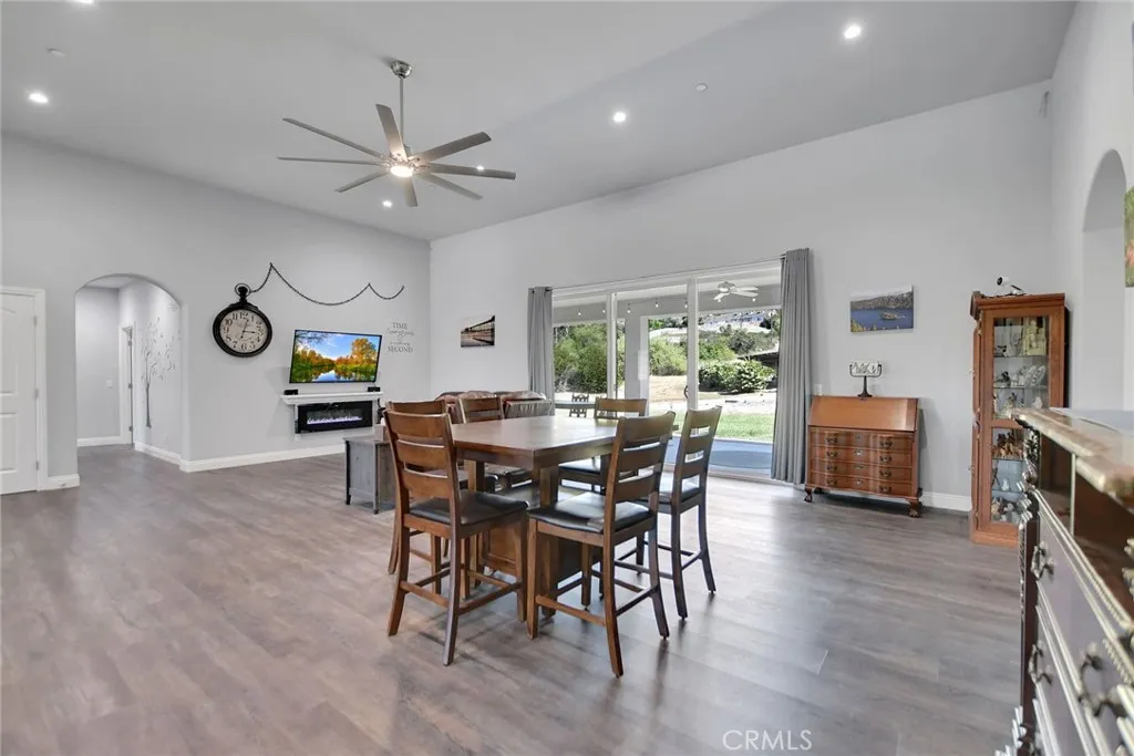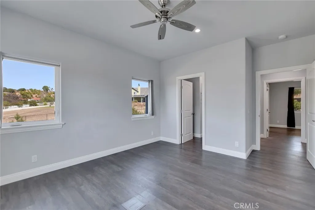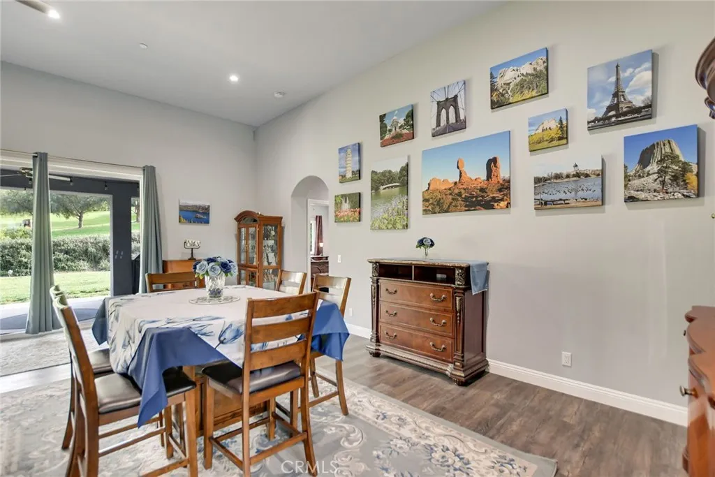 Experience refined country living in this beautifully crafted custom home set on 2.41 private acres at the end of a quiet cul-de-sac. Thoughtfully designed with both comfort and functionality in mind, this exceptional 3-bedroom, 3-bath residence offers spacious living, high-end finishes, and remarkable attention to detail throughout. The heart of the home is an impressive great room with soaring 12-foot ceilings, abundant recessed lighting, and expansive picture windows that frame the surrounding landscape. A dramatic 9’ x 12’ sliding glass patio door seamlessly connects the interior living space to a large covered patio, creating an effortless indoor-outdoor lifestyle. The chef’s kitchen is designed for both entertaining and everyday living, featuring custom soft-closing cabinetry, granite countertops throughout, under- and over-cabinet LED lighting, a generous island with ample workspace, pot filler above the stove, and a walk-in pantry conveniently located between the kitchen and garage. Each of the three bedrooms offers its own private full bathroom and walk-in closet, while the primary suite is thoughtfully positioned on the opposite wing of the home for added privacy. Luxury details continue with porcelain-tiled showers, custom closet shelving, ceiling fans throughout, waterproof luxury vinyl flooring, and a beautifully appointed laundry room with extensive cabinetry, granite countertops, and utility sink. The finished 3-car garage features sealed flooring, whole-house water filtration, automatic door openers with battery backup, and attic storage with walkable trusses. Outside, the expansive grounds offer exceptional versatility with solar panels, RV hookups, a long private driveway, landscaped yards, hillside plantings, and ample space for equestrian facilities, a future ADU, or other expansion with A70 zoning. Blending thoughtful design, modern efficiency, and peaceful acreage, this one-of-a-kind property offers a rare opportunity to enjoy privacy, space, and elevated living.