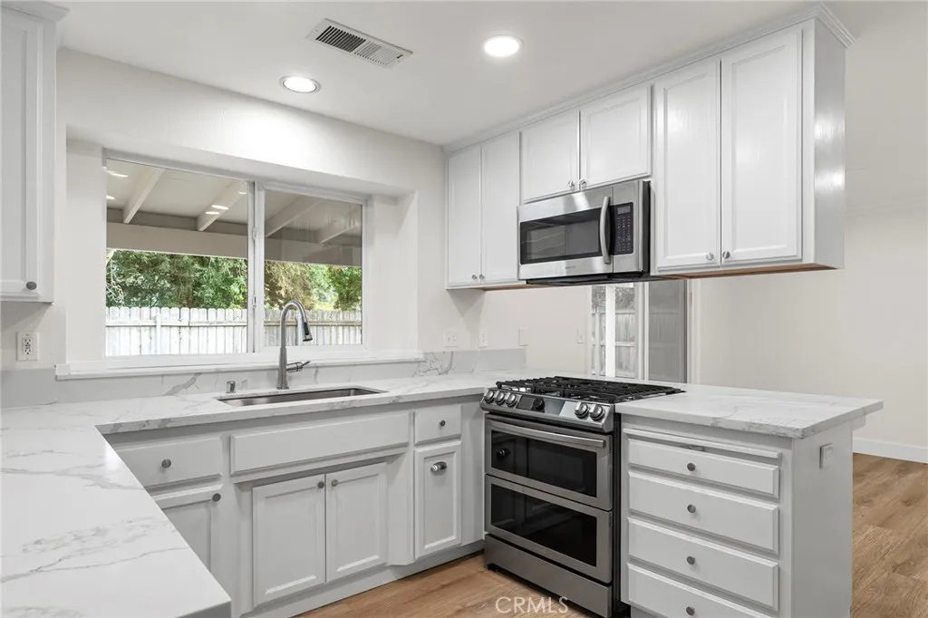 Welcome to 201 Denali Drive in the desirable Amber Grove subdivision of Chico! This well appointed 3 bedroom, 2 bath home with a flex space den offers 1,836 sq ft of comfortable living on a 0.19 acre lot. The 44 panel solar energy system provides peace of mind during our hot Chico summers. Remodeled kitchen with granite counters and high end appliances. The smart Refrigerator can even play your favorite music while preparing dinner. Recent upgrades include vinyl plank flooring, interior paint and upgraded fixtures. Enjoy the extra privacy of backing directly to a levy so there are no direct neighbors behind you. The spacious primary suite includes a walk-in closet dual sink vanity and direct access to the back yard. The indoor laundry room is complete with a utility sink. Lots of parking options with a 3 car garage and oversized driveway. Extra storage in the garage attic. Just a block away from the popular Peterson Park which features a large play structure and of course plenty of manicured grass maintained by the City of Chico.