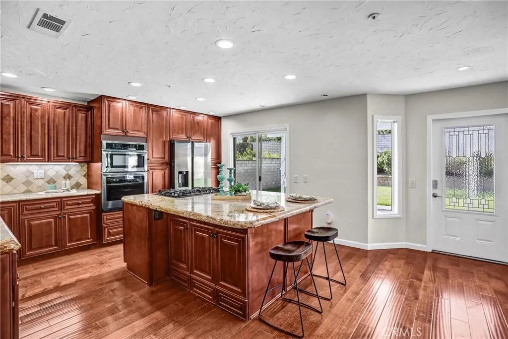 Located in the highly sought-after Heritage community, one of Fontana’s most desirable neighborhoods, this spacious 4-bedroom home offers a functional layout designed for both everyday living and entertaining. The main level features a generous living space with a seamless flow, creating an inviting setting for gatherings and daily comfort. The redesigned and expansive updated kitchen is a standout, featuring modern appliances and an oversized island that serves as the perfect centerpiece for cooking, entertaining, and casual dining. With ample counter space and storage, it’s designed to bring both style and functionality together. Upstairs, the primary suite is a true retreat, complete with vaulted ceilings and an ensuite bathroom featuring dual sinks, a soaking tub, a separate walk-in shower, and a walk-in closet. Step outside to a peaceful backyard setting with mature pomegranate, lemon, and tangerine trees, along with a charming patio and pergola, ideal for relaxing or hosting. Heritage is a well-established master-planned community offering an exceptional lifestyle with three parks, two elementary schools, a middle school, and a community center, all with no HOA. Located within the highly regarded Etiwanda School District, the area is known for its strong sense of community and access to quality education. Residents enjoy a variety of amenities, including tennis courts, basketball courts, walking trails, and recreational programs at the community center. Conveniently located near Victoria Gardens, Ontario Mills, Ontario International Airport, and with easy access to the 15, 10, and 210 freeways, this home offers both comfort and accessibility. A wonderful opportunity to own in a vibrant and well-connected neighborhood.