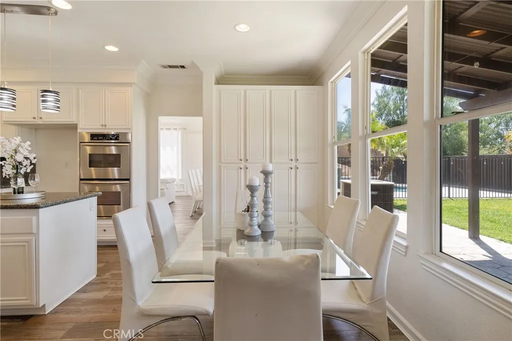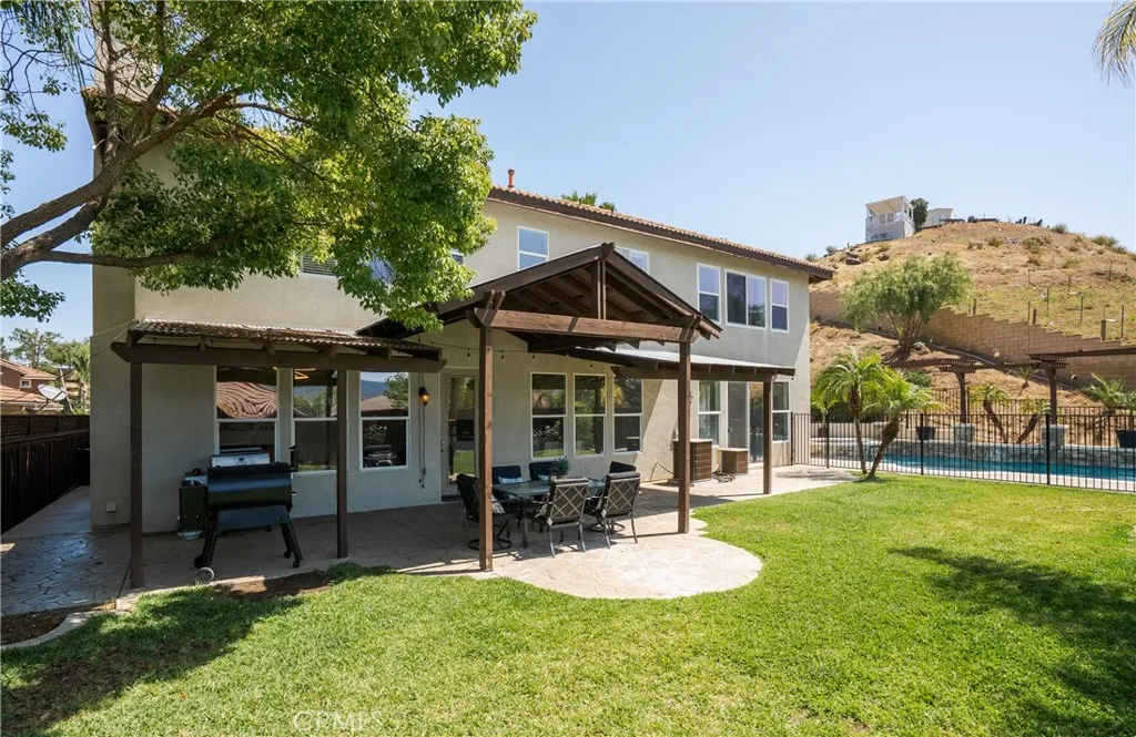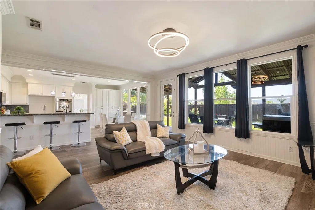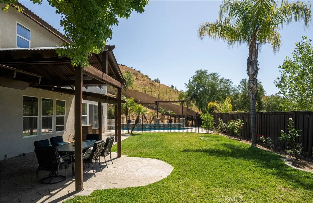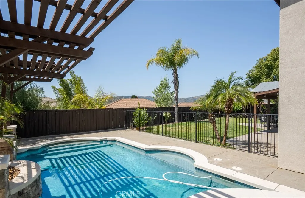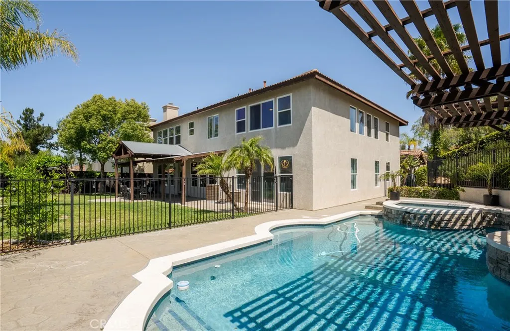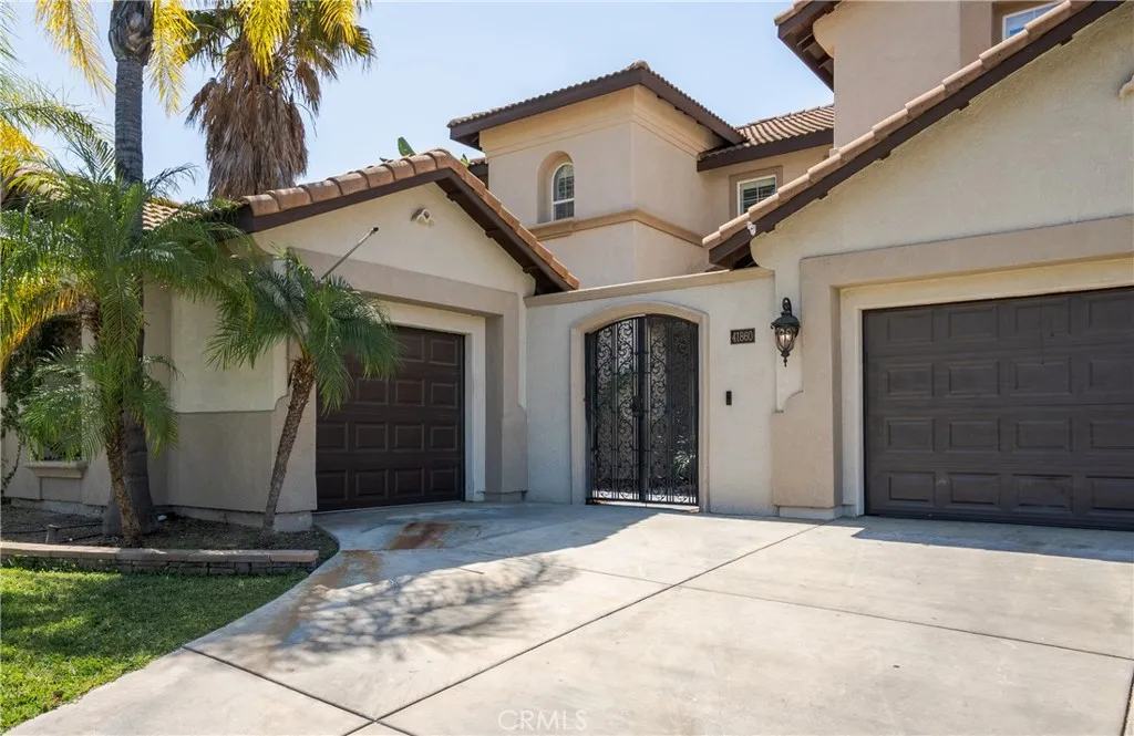 Located in the prestigious Grizzly Ridge Estates in Murrieta, this turnkey executive pool home is set at the end of a quiet cul-de-sac, offering exceptional privacy, expansive living, and sweeping views of the Santa Rosa Plateau. From the moment you arrive, a gated archway and beautifully landscaped courtyard create a grand sense of arrival, leading into a striking entry with soaring vaulted ceilings. Inside, the home opens to a thoughtfully designed layout featuring a formal living room, elegant dining room, private office, and dual staircases, along with a spacious loft and multiple areas for work or study. At the center of the home, the kitchen is designed for both function and gathering, offering granite countertops, white cabinetry, stainless steel appliances, a dining area, and bar seating. It opens seamlessly to the family room with a fireplace and built-in shelving, creating a warm and connected living space. The main level also includes a private bedroom with its own bathroom, ideal for guests or extended living, along with a laundry room and powder room. Make your way upstairs to the primary suite, offering a private bathroom and walk-in closet. The upper level also includes three additional bedrooms, a full bathroom, a spacious loft, and a dedicated study or workspace area. The backyard is designed as a private retreat, featuring a pool, spa, covered patio, and landscaped grounds—ideal for both relaxing and entertaining while taking in the surrounding views. Additional features include plantation shutters, crown molding, wainscoting, updated lighting, window treatments, and a split two- and one-car garage setup. A rare opportunity to own a home that combines space, privacy, and elevated living in one of Murrieta’s most sought-after communities.