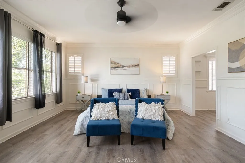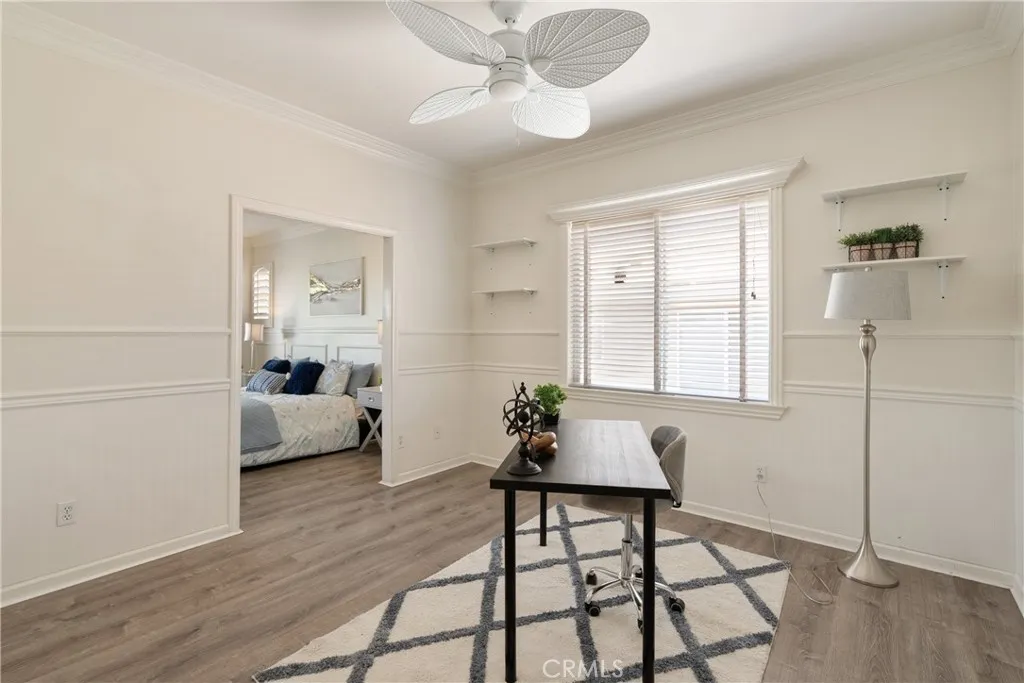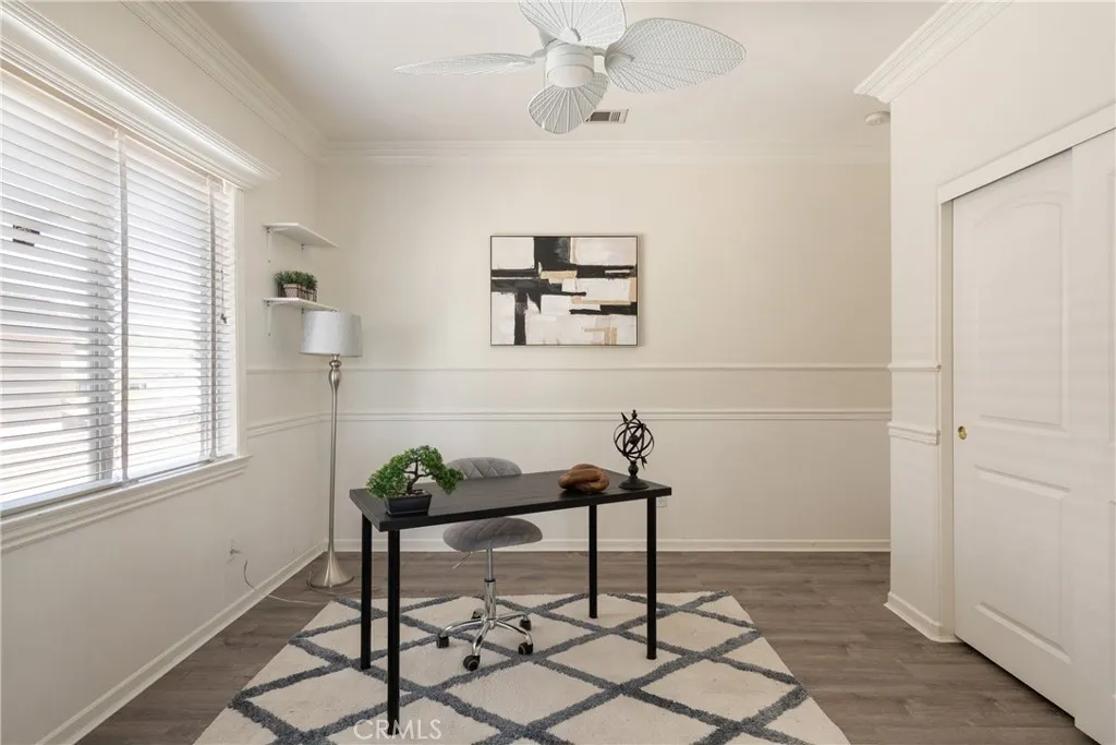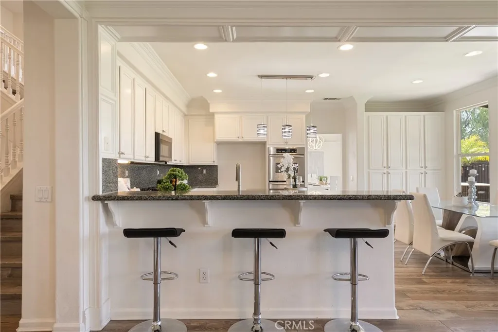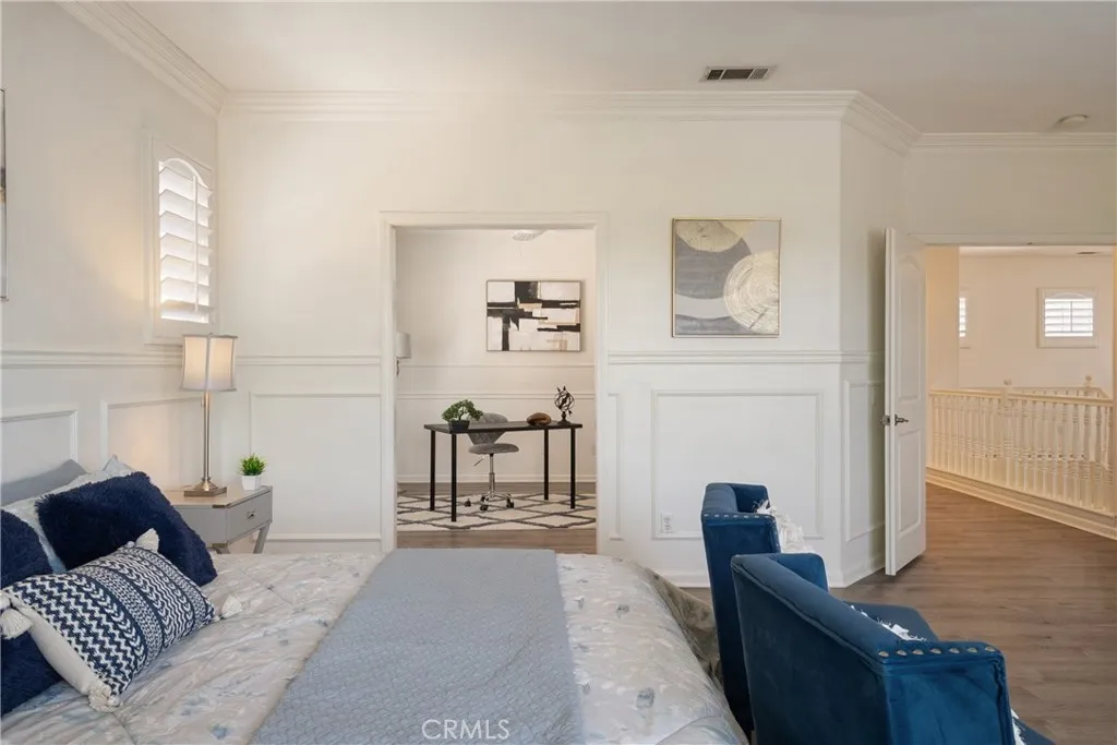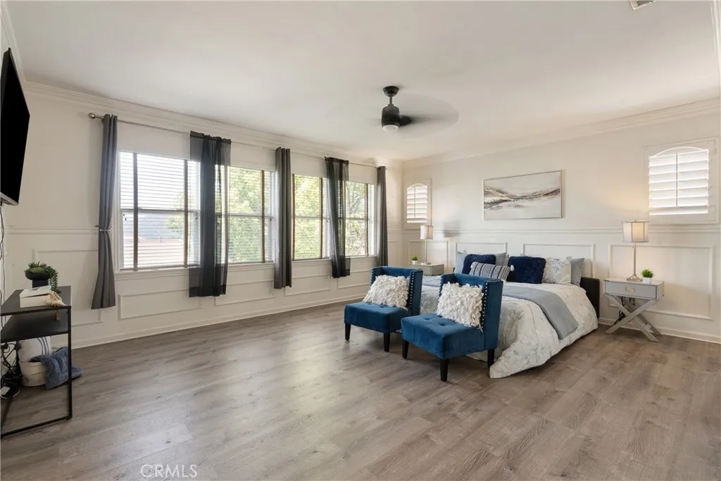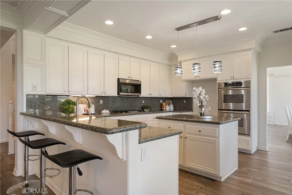 Located in the prestigious Grizzly Ridge Estates in Murrieta, this turnkey executive pool home is set at the end of a quiet cul-de-sac, offering exceptional privacy, expansive living, and sweeping views of the Santa Rosa Plateau. From the moment you arrive, a gated archway and beautifully landscaped courtyard create a grand sense of arrival, leading into a striking entry with soaring vaulted ceilings. Inside, the home opens to a thoughtfully designed layout featuring a formal living room, elegant dining room, private office, and dual staircases, along with a spacious loft and multiple areas for work or study. At the center of the home, the kitchen is designed for both function and gathering, offering granite countertops, white cabinetry, stainless steel appliances, a dining area, and bar seating. It opens seamlessly to the family room with a fireplace and built-in shelving, creating a warm and connected living space. The main level also includes a private bedroom with its own bathroom, ideal for guests or extended living, along with a laundry room and powder room. Make your way upstairs to the primary suite, offering a private bathroom and walk-in closet. The upper level also includes three additional bedrooms, a full bathroom, a spacious loft, and a dedicated study or workspace area. The backyard is designed as a private retreat, featuring a pool, spa, covered patio, and landscaped grounds—ideal for both relaxing and entertaining while taking in the surrounding views. Additional features include plantation shutters, crown molding, wainscoting, updated lighting, window treatments, and a split two- and one-car garage setup. A rare opportunity to own a home that combines space, privacy, and elevated living in one of Murrieta’s most sought-after communities.