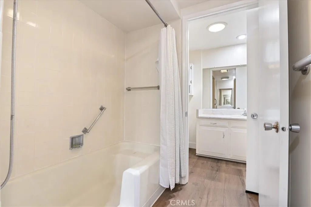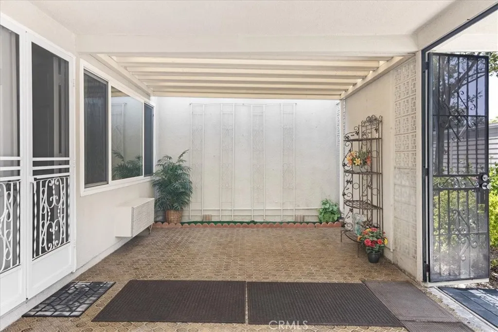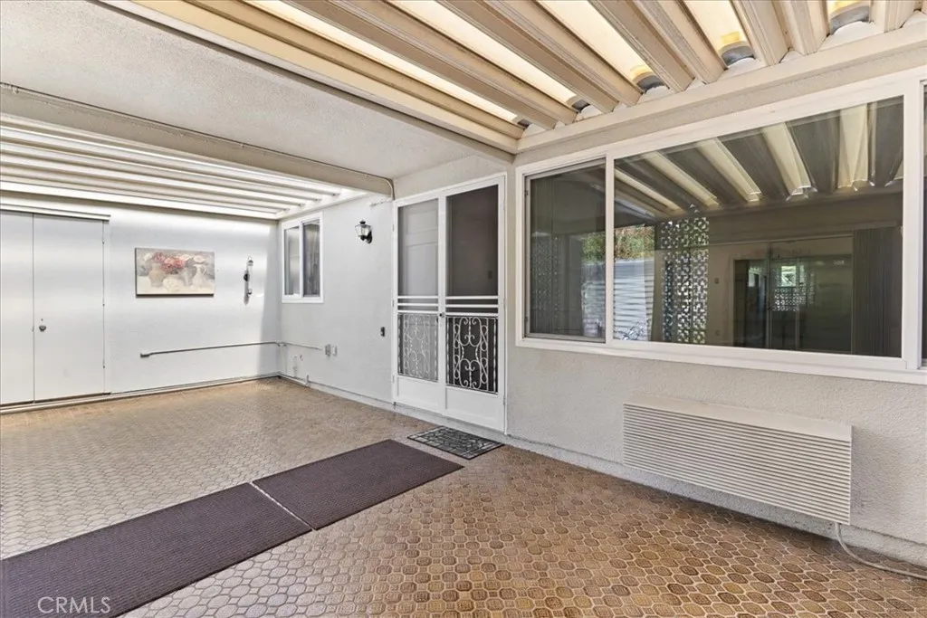 Rare Cordova model Enlarged Two bedroom with enclosed atrium, new wood -like linoleum flooring throughout, handy cap bars throughout (bathroom shower and toilet areas). Enclosed atrium is connected to second bedroom. It can be used as aathrooms den, enlarged bedroom, office TV room. Solar lighting in the dining room and den /tv room. Solar lighting in the bathroom,. Kitchen includes natural solar lighting, new counters, new appliances. Six grab bars throughout the bathroom. Huge enclosed patio in the front area is lots of light coming through the covered area , Carport is conveniently located outside the front door. The home is sparkling and has been freshly painted
