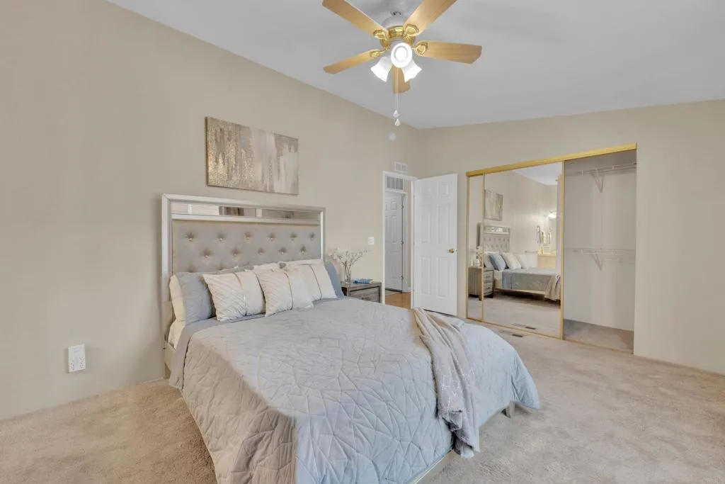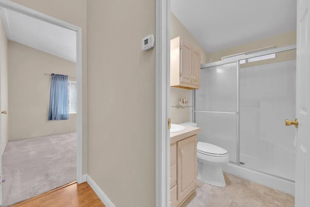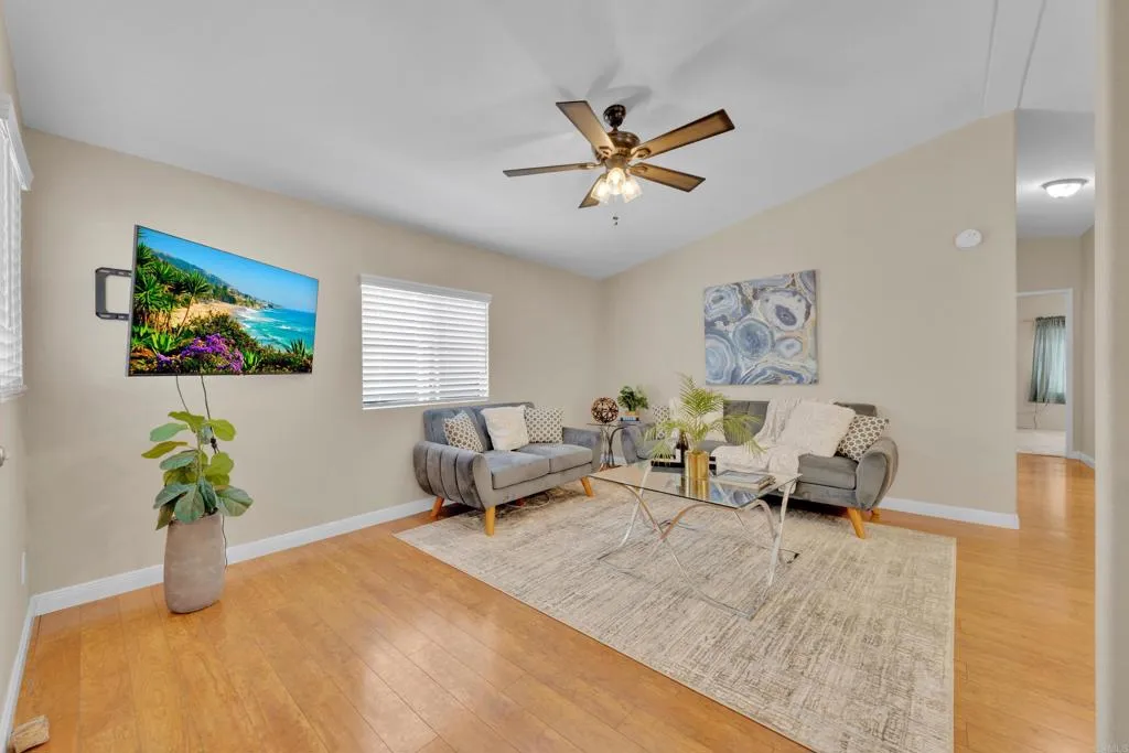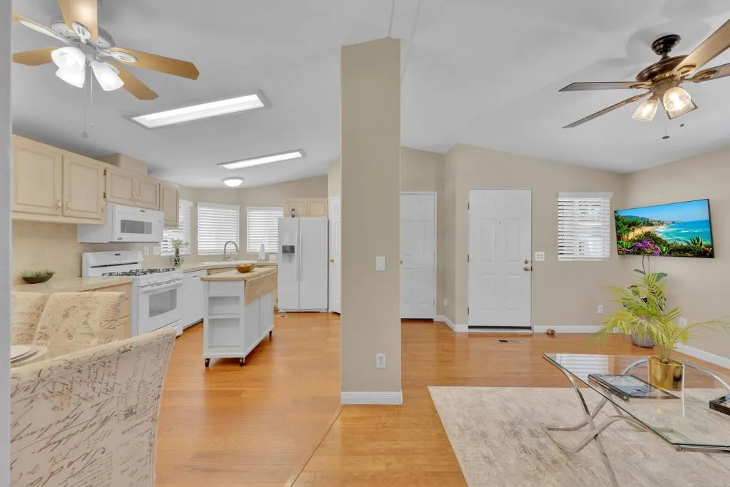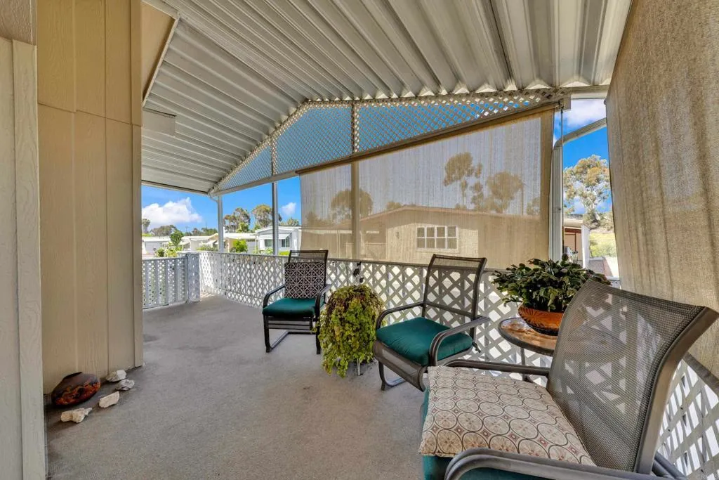 Great opportunity to buy a nice and spacious 2 bedroom home in the Terrace Estates. This newer model home offers laminate flooring, a newer roof, a newer AC compressor and newer exterior paint. This is a 55 and over community and Buyers must qualify with the park. Additionally, this home has an open floorplan, in unit laundry, carport parking, and reasonable space rent of under $1,000 per month. Easy access to the 125 freeway and nearby shopping.