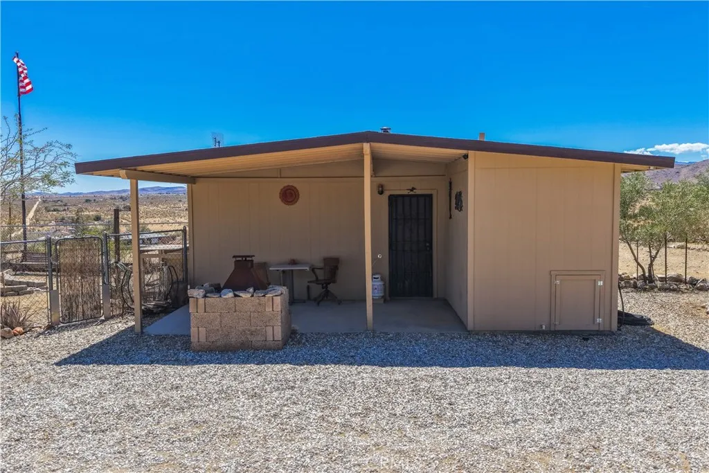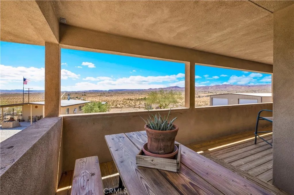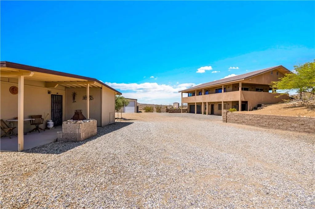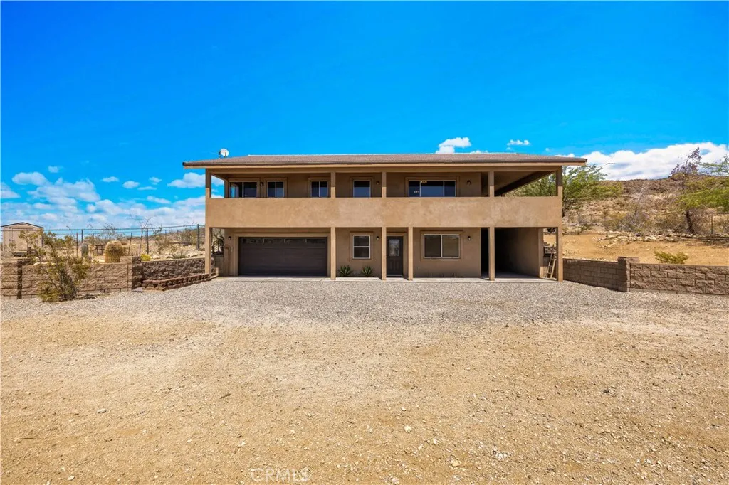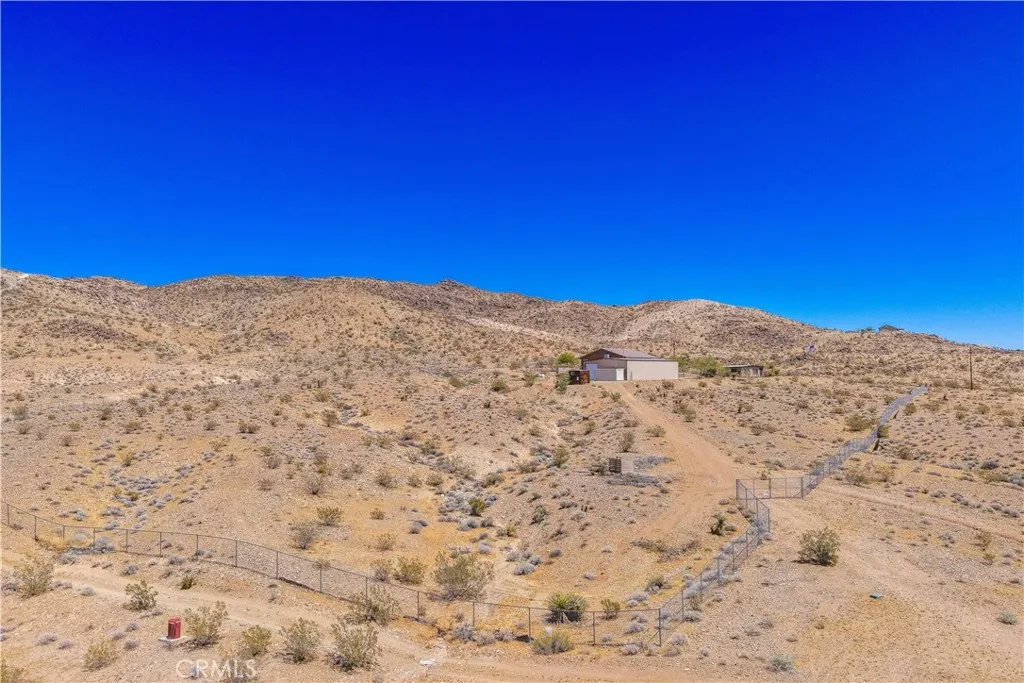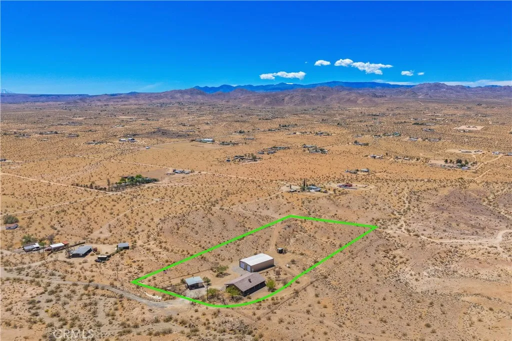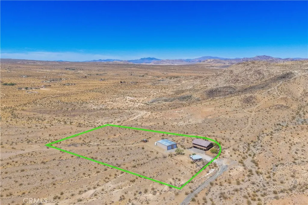Large two-story main home, additional cabin, and a 2,400 sq ft workshop all on a fenced 5-acre parcel. This unique property is the last home on the street, backed directly against the mountain, offering incredible panoramic views overlooking all of Landers and unmatched privacy. The 2012 custom-built two-story main home features high-end finishes throughout, including real wood flooring, custom oak cabinetry, and laundry rooms on both levels. The upper level showcases vaulted ceilings and an open-concept layout, with a spacious kitchen featuring raw-edge granite countertops, abundant cabinetry, and ample workspace. The living room includes a wood stove and multiple sliders leading to both the front wraparound balcony and back patio. Bedrooms are generously sized, and the primary suite offers a massive walk-in closet, patio access, and a beautifully finished bathroom with soaking tub and walk-in shower. A bedroom on the lower level and a fully finished two-car garage add to the flexibility. The separate cabin provides excellent additional living space for guests, featuring an open layout, well-preserved retro charm, beautiful views, its own bathroom with walk-in shower, front porch, and a cross-fenced yard. The 2,400 sq ft metal workshop is a standout feature, equipped with three RV-height roll-up doors, power throughout with multiple 220 outlets, laundry hookups, a car lift, and custom fabrication tables with built-in storage—ideal for hobbyists, contractors, or business use. Additional features include a Connex storage container and full RV hookups. Properties offering this level of space, privacy, views, and versatility are rare—this is a must-see to truly appreciate everything it has to offer.