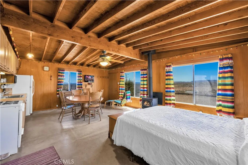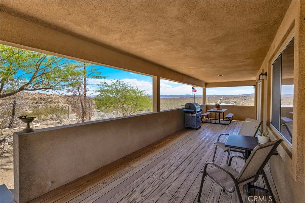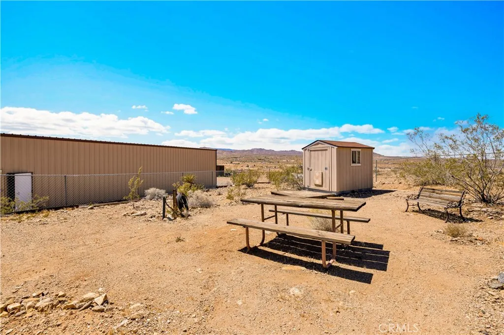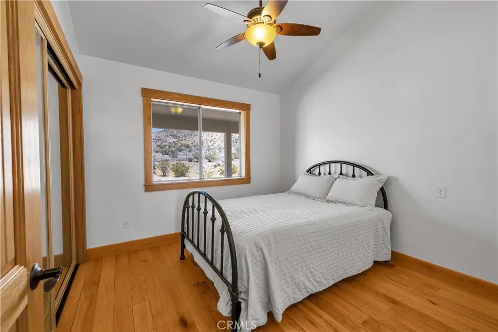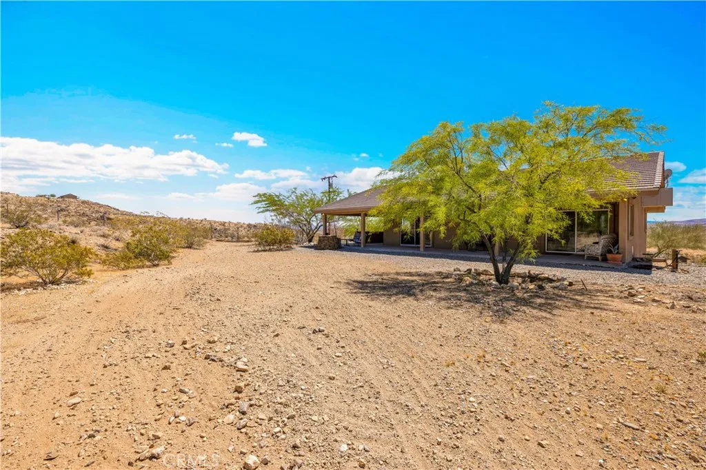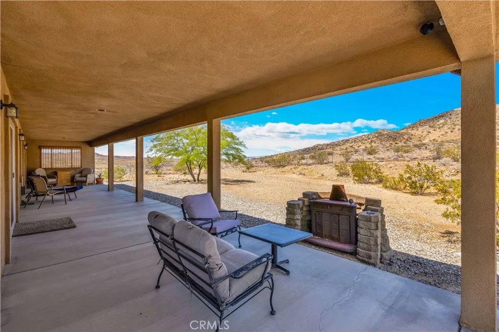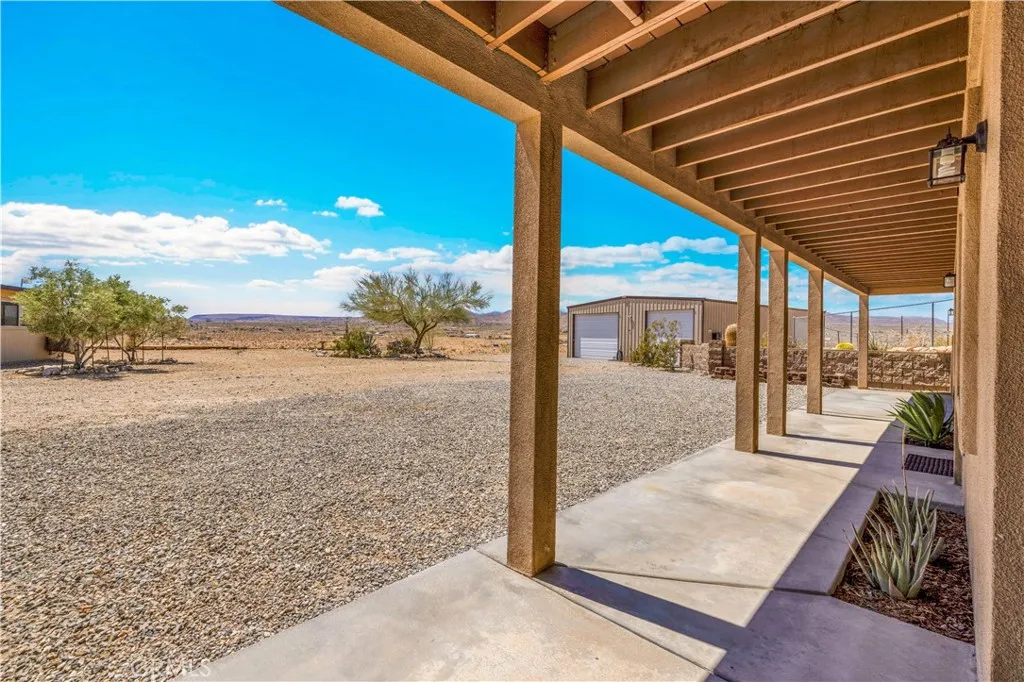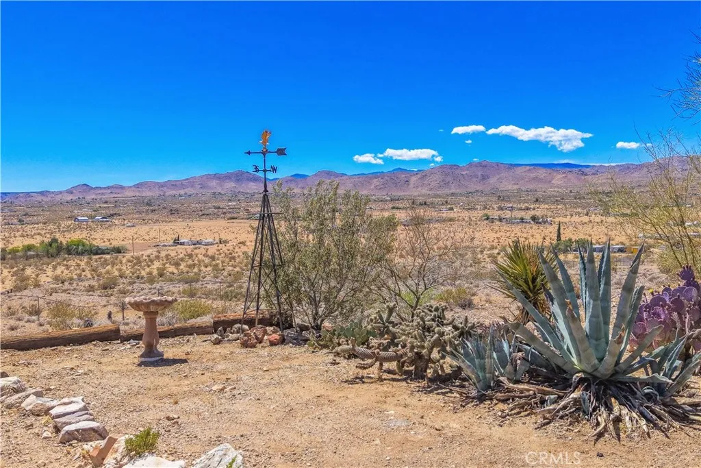Large two-story main home, additional cabin, and a 2,400 sq ft workshop all on a fenced 5-acre parcel. This unique property is the last home on the street, backed directly against the mountain, offering incredible panoramic views overlooking all of Landers and unmatched privacy. The 2012 custom-built two-story main home features high-end finishes throughout, including real wood flooring, custom oak cabinetry, and laundry rooms on both levels. The upper level showcases vaulted ceilings and an open-concept layout, with a spacious kitchen featuring raw-edge granite countertops, abundant cabinetry, and ample workspace. The living room includes a wood stove and multiple sliders leading to both the front wraparound balcony and back patio. Bedrooms are generously sized, and the primary suite offers a massive walk-in closet, patio access, and a beautifully finished bathroom with soaking tub and walk-in shower. A bedroom on the lower level and a fully finished two-car garage add to the flexibility. The separate cabin provides excellent additional living space for guests, featuring an open layout, well-preserved retro charm, beautiful views, its own bathroom with walk-in shower, front porch, and a cross-fenced yard. The 2,400 sq ft metal workshop is a standout feature, equipped with three RV-height roll-up doors, power throughout with multiple 220 outlets, laundry hookups, a car lift, and custom fabrication tables with built-in storage—ideal for hobbyists, contractors, or business use. Additional features include a Connex storage container and full RV hookups. Properties offering this level of space, privacy, views, and versatility are rare—this is a must-see to truly appreciate everything it has to offer.