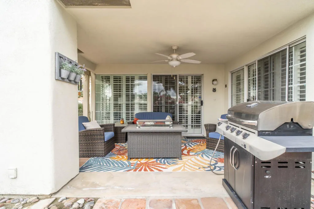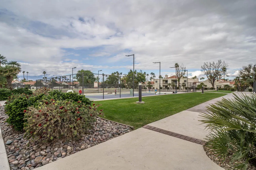 Welcome to this beautifully maintained, turnkey 3-bedroom, 2-bath home in the highly desirable Desert Breezes community, just minutes from the Indian Wells Tennis Garden. This inviting residence features plantation shutters throughout, a warm and welcoming living room with a fireplace. Recently painted and new carpets in all bedrooms.The spacious primary suite offers comfort and privacy, while the additional bedrooms provide ample space for family and guests. Step outside to a covered patio--perfect for relaxing or entertaining in true desert style.Enjoy resort-style living with Desert Breezes' exceptional amenities, including multiple pools, tennis courts, a clubhouse, fitness center, and picnic areas. The HOA also covers landscaping and trash services, adding to the ease of ownership.This is a fantastic opportunity to own a move-in-ready home in a prime Palm Desert location!