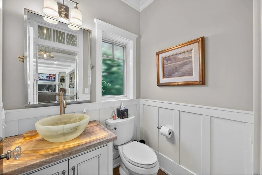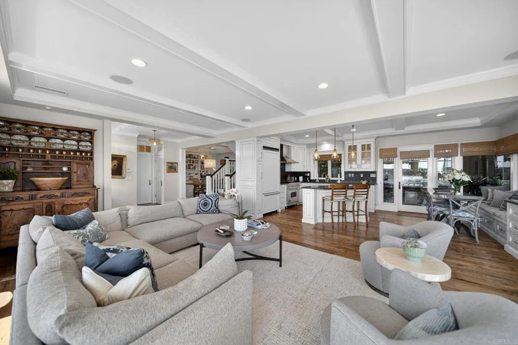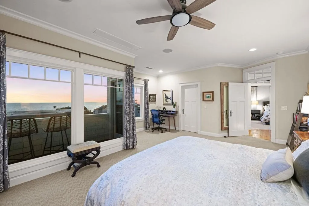 Breathtaking sunset and ocean view coastal home in Cardiff by the Sea’s coveted Composer District, steps to the surf and sand. Masterfully curated by renowned Disney architect Jim Herecka, this timeless residence was extensively remodeled with exceptional craftsmanship and the finest finishes throughout. Reclaimed antique oak floors, leathered granite countertops, custom shiplap and wainscoting, and elegant coffered ceilings create a refined yet inviting coastal paradise. Designed for seamless indoor-outdoor living, the private backyard features a pizza oven, built-in BBQ, and fireplace. Enjoy panoramic sunset and ocean views just steps to Cardiff Village offering world-class dining, coffee shops, boutiques, the Cardiff Rail Trail walking trails, top-rated schools, and iconic beaches with magazine featured surf breaks. A rare opportunity to own one of Cardiff by the Sea’s most distinctive, beautiful, and sought-after coastal homes.