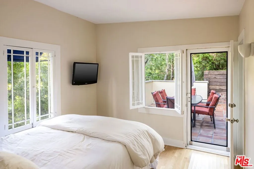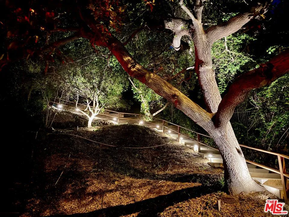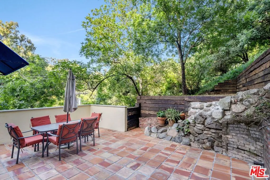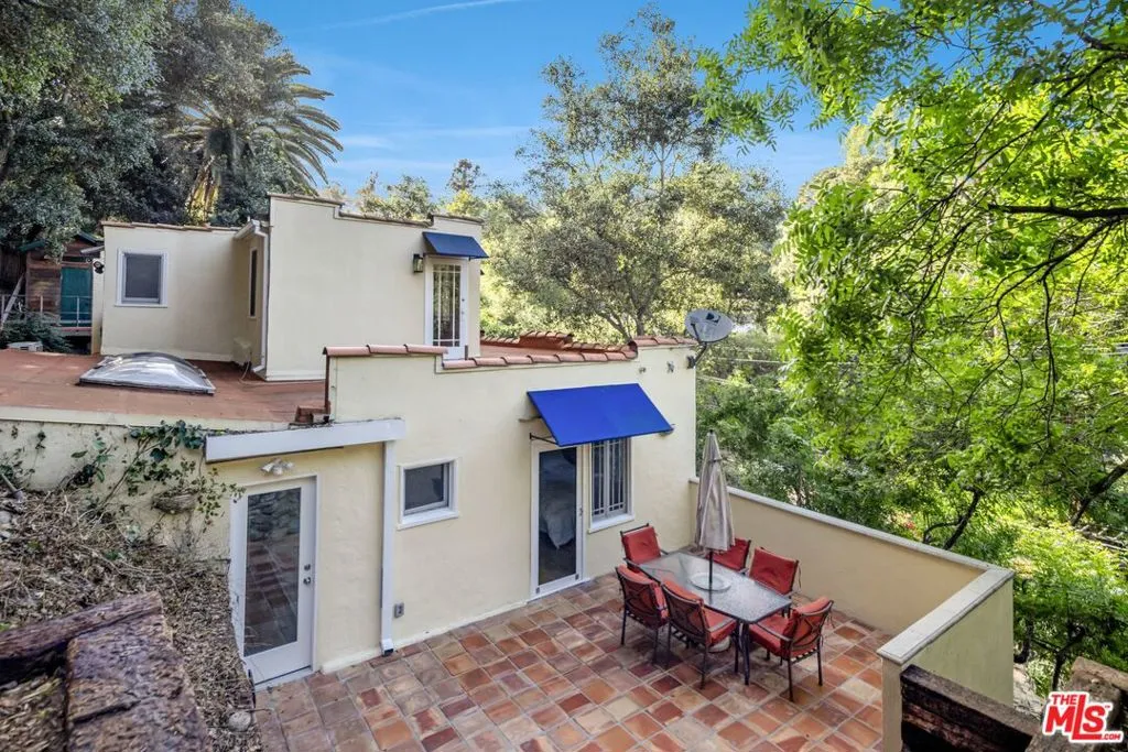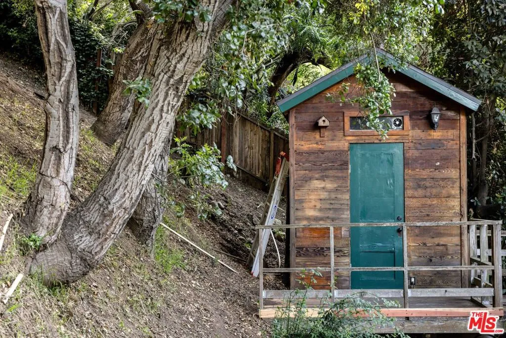 This enchanting Laurel Canyon hillside retreat is tucked away among lush tree-filled surroundings, offering a rare blend of privacy, Spanish charm, and seamless indoor-outdoor sanctuary living. A beautifully illuminated pathway w romantic staircase winds up through mature oak trees and rustic landscaping, creating a dramatic and welcoming approach that is especially magical in the evenings. Step inside and discover this light-filled jewel box rich with historic character and timeless appeal. Expansive windows invite in natural light from every angle, highlighting warm hardwood floors, soft neutral tones, and classic architectural details throughout. The spacious living room features vaulted beamed ceilings and an airy, open feel perfect for both relaxing and entertaining. The home features a newly remodeled kitchen, thoughtfully updated while maintaining its charm, along with a bright and inviting den offering the perfect flex space for lounging, working, or creative pursuits. Two well-proportioned bedrooms provide comfortable retreats both with en-suite bathrooms. A thoughtfully designed 3rd bonus space features built-in wardrobe storage along two walls and a discreet laundry area tucked behind mirrored sliding doors. Topped with a skylight, this inspirational light-filled room offers uber-flexible uses as a home office, dressing room, creative studio, child's room or cozy auxiliary space. French doors and large windows blur the line between indoors and out, with serene greenery visible from nearly every room. Step outside to the Saltillo-tiled patio and enjoy views of the terraced grounds ideal for morning coffee, quiet reflection, or hosting friends under the canopy of canyon trees. Adding to the property's charm and functionality, a rustic storage cabin provides the perfect space for bikes, surfboards, and other outdoor gear. Amazing 4 car gated parking and the kids go to Wonderland Elementary!