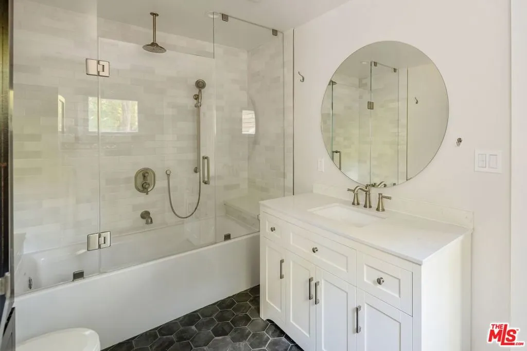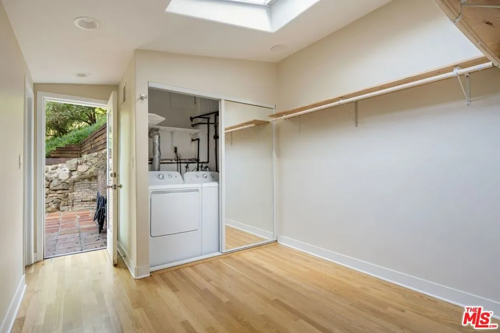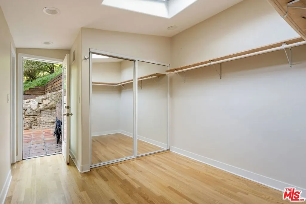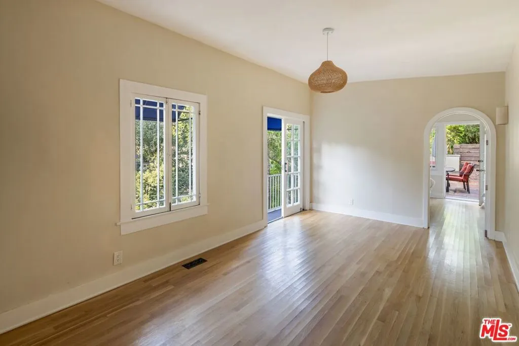This enchanting Laurel Canyon hillside retreat is tucked away among lush tree-filled surroundings, offering a rare blend of privacy, Spanish charm, and seamless indoor-outdoor sanctuary living. A beautifully illuminated pathway w romantic staircase winds up through mature oak trees and rustic landscaping, creating a dramatic and welcoming approach that is especially magical in the evenings. Step inside and discover this light-filled jewel box rich with historic character and timeless appeal. Expansive windows invite in natural light from every angle, highlighting warm hardwood floors, soft neutral tones, and classic architectural details throughout. The spacious living room features vaulted beamed ceilings and an airy, open feel perfect for both relaxing and entertaining. The home features a newly remodeled kitchen, thoughtfully updated while maintaining its charm, along with a bright and inviting den offering the perfect flex space for lounging, working, or creative pursuits. Two well-proportioned bedrooms provide comfortable retreats both with en-suite bathrooms. A thoughtfully designed 3rd bonus space features built-in wardrobe storage along two walls and a discreet laundry area tucked behind mirrored sliding doors. Topped with a skylight, this inspirational light-filled room offers uber-flexible uses as a home office, dressing room, creative studio, child's room or cozy auxiliary space. French doors and large windows blur the line between indoors and out, with serene greenery visible from nearly every room. Step outside to the Saltillo-tiled patio and enjoy views of the terraced grounds ideal for morning coffee, quiet reflection, or hosting friends under the canopy of canyon trees. Adding to the property's charm and functionality, a rustic storage cabin provides the perfect space for bikes, surfboards, and other outdoor gear. Amazing 4 car gated parking and the kids go to Wonderland Elementary!