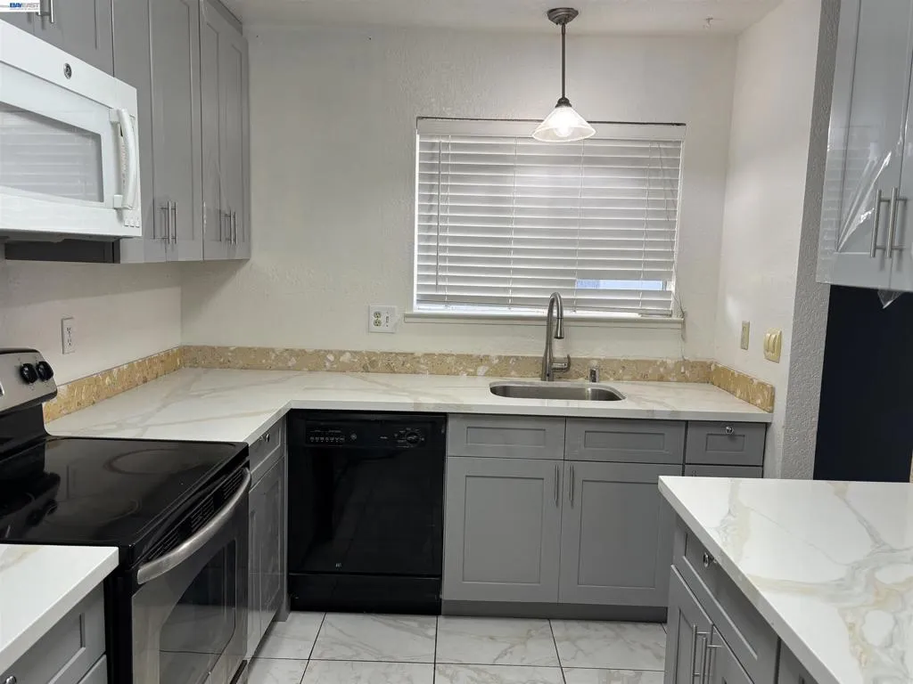 This 2 story condo boasts 2 bedrooms, 1.5 bathrooms, kitchen with new quartz counter tops and new cabinets. There is a inside laundry room with hook ups. A nice size enclosed backyard awaits your enjoyment for morning coffee or an evening wine down. There's a community pool for you to splash around in on the hot summer days. Designated parking. This unit just newly painted and with a new laminated floor and existing tiles in kitchen and bathrooms.
