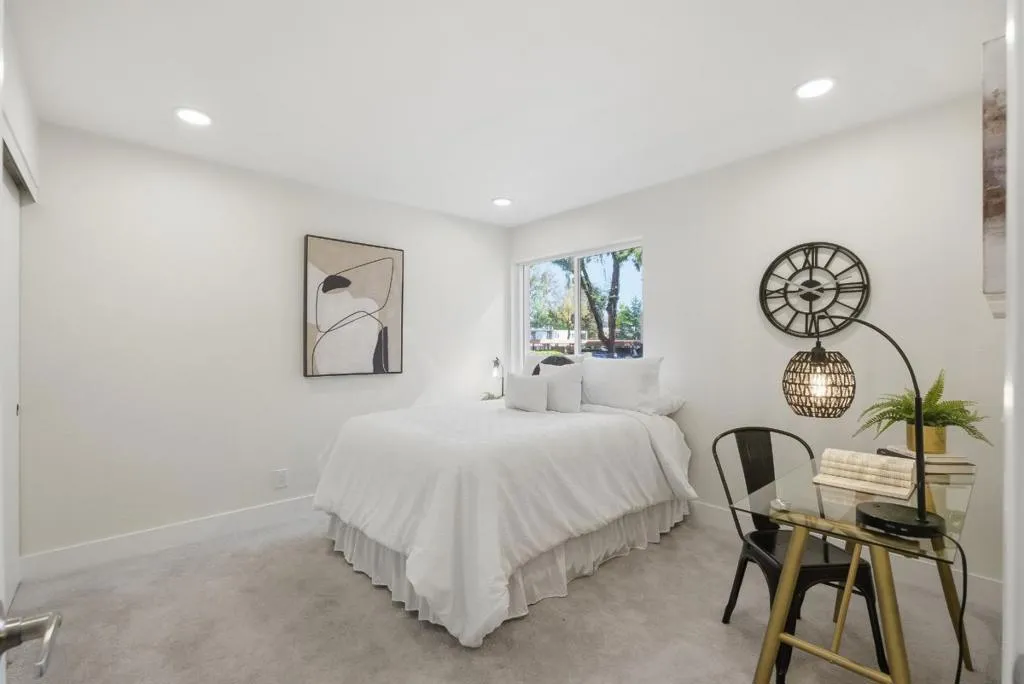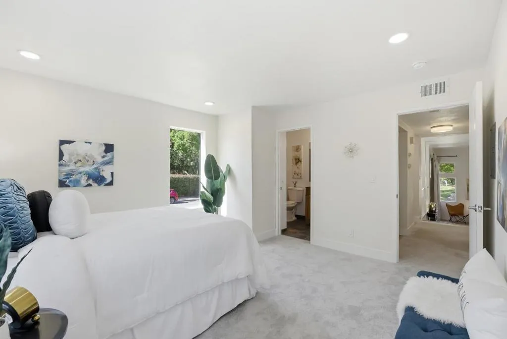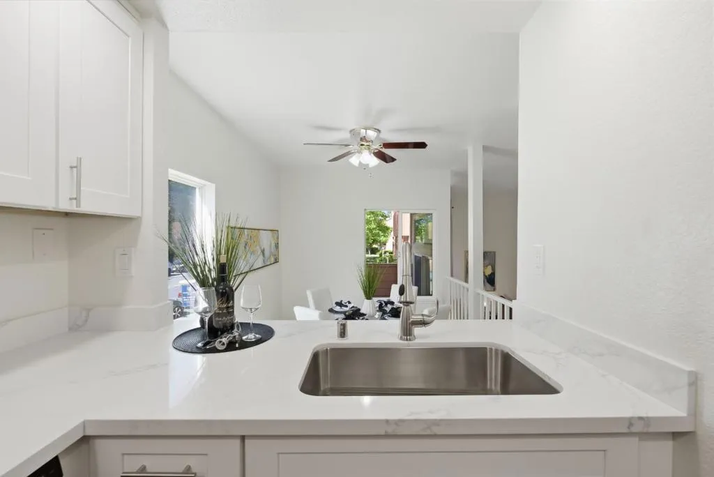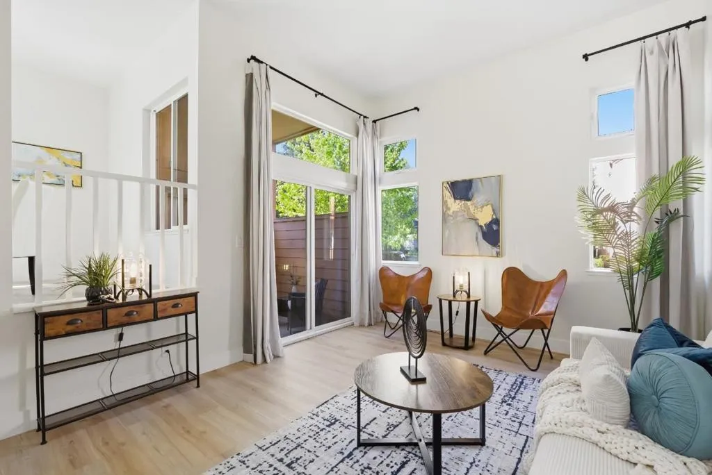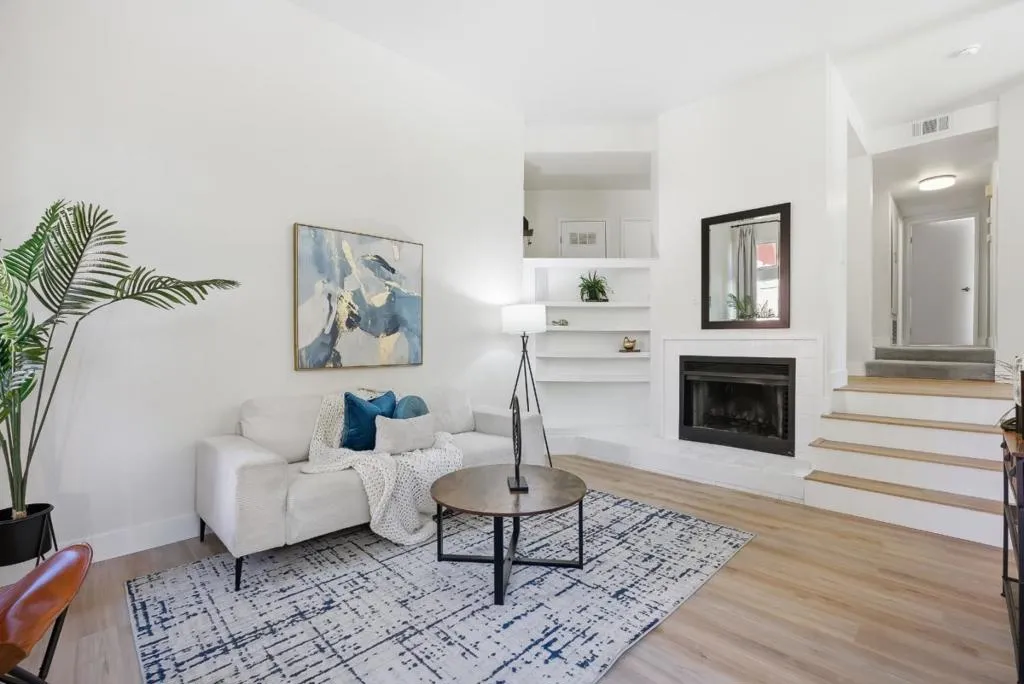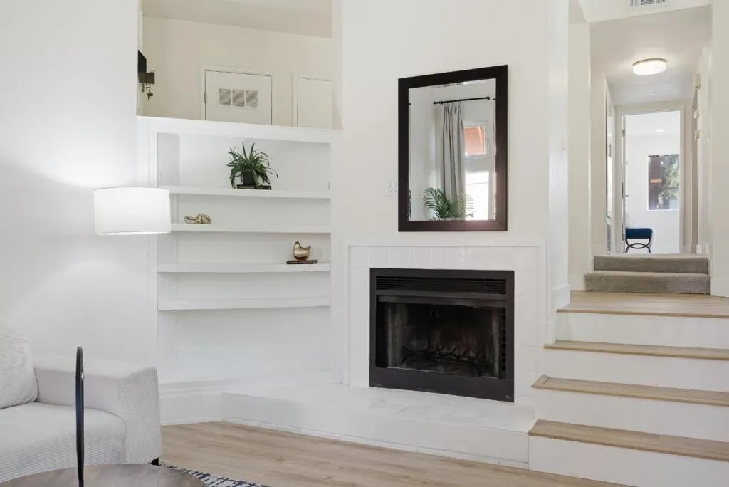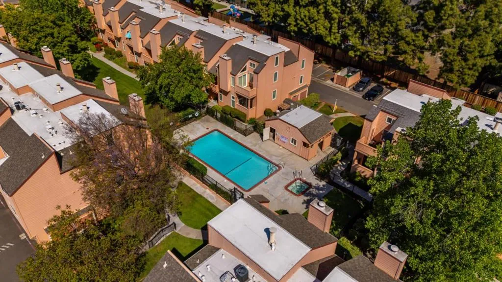 Nestled in desirable Blossom Valley, this beautifully updated end-unit 2-bedroom, 2-bath condo offers 1,122 sq ft of stylish, move-in-ready living. Designed as an end-unit split-level layout, the residence features soaring ceilings, expansive windows, and a welcoming wood-burning fireplace that anchors the bright living room. Sleek luxury vinyl plank flooring flows through the main living spaces, while the bedrooms enjoy soft carpet for added comfort. The remodeled kitchen impresses with crisp white Shaker cabinets, quartz-style counters, stainless steel appliances, and a convenient breakfast bar that opens to the dining areaideal for entertaining. A spacious primary suite boasts generous closet space and an updated bath with contemporary finishes. Additional conveniences include in-unit laundry, 1-car garage, and dual-pane windows. Residents enjoy a sparkling pool, spa, lush greenbelts with walking paths, and a superb location with easy access to Highway 85, nearby shopping, dining, and everyday amenities.