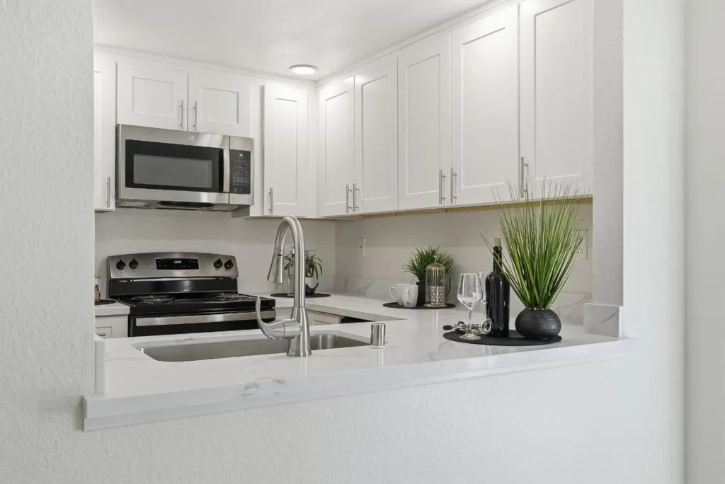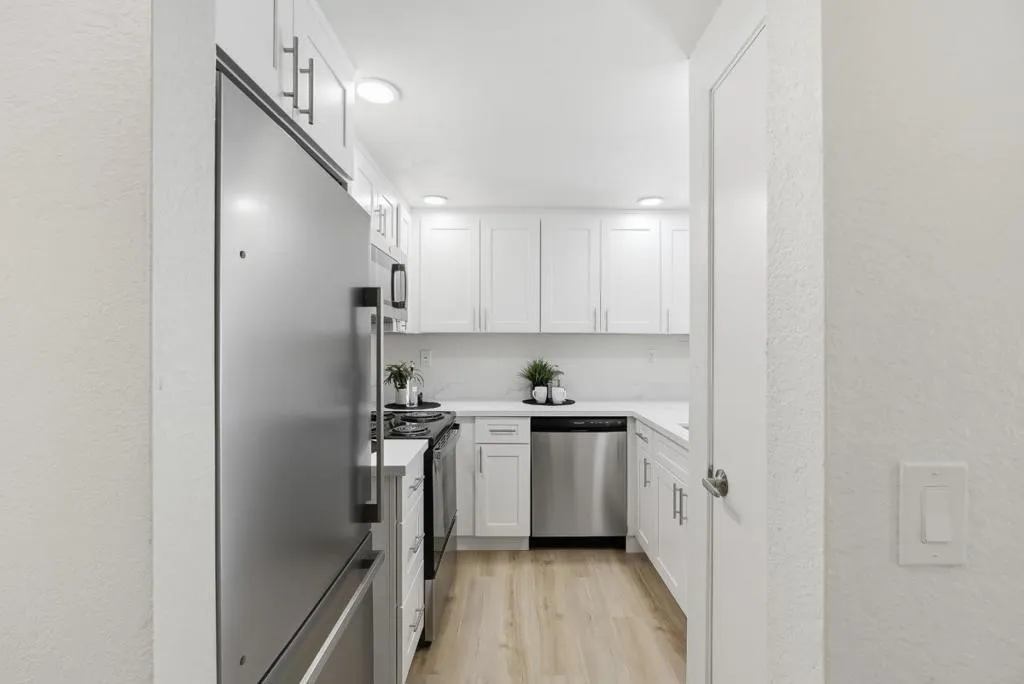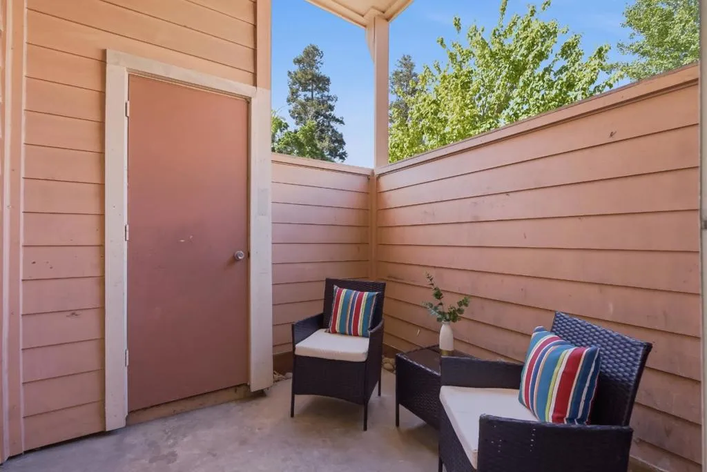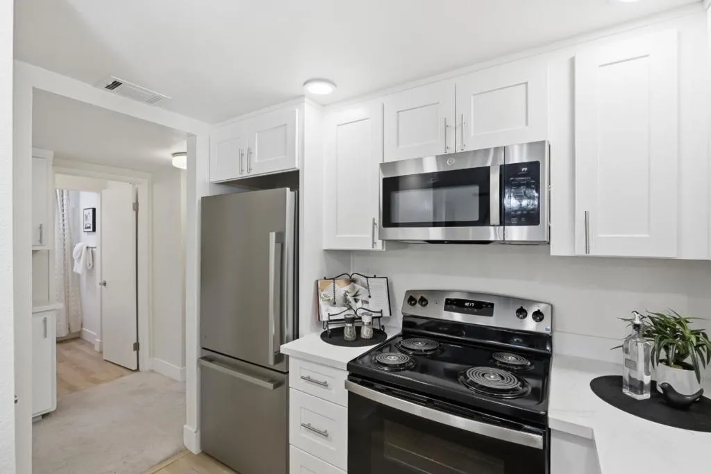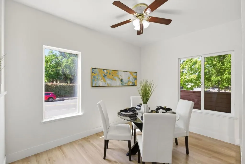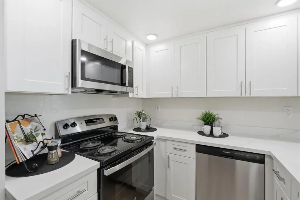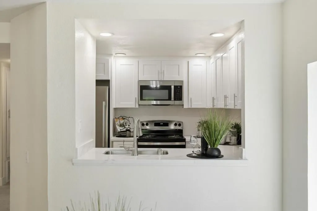 Nestled in desirable Blossom Valley, this beautifully updated end-unit 2-bedroom, 2-bath condo offers 1,122 sq ft of stylish, move-in-ready living. Designed as an end-unit split-level layout, the residence features soaring ceilings, expansive windows, and a welcoming wood-burning fireplace that anchors the bright living room. Sleek luxury vinyl plank flooring flows through the main living spaces, while the bedrooms enjoy soft carpet for added comfort. The remodeled kitchen impresses with crisp white Shaker cabinets, quartz-style counters, stainless steel appliances, and a convenient breakfast bar that opens to the dining areaideal for entertaining. A spacious primary suite boasts generous closet space and an updated bath with contemporary finishes. Additional conveniences include in-unit laundry, 1-car garage, and dual-pane windows. Residents enjoy a sparkling pool, spa, lush greenbelts with walking paths, and a superb location with easy access to Highway 85, nearby shopping, dining, and everyday amenities.
