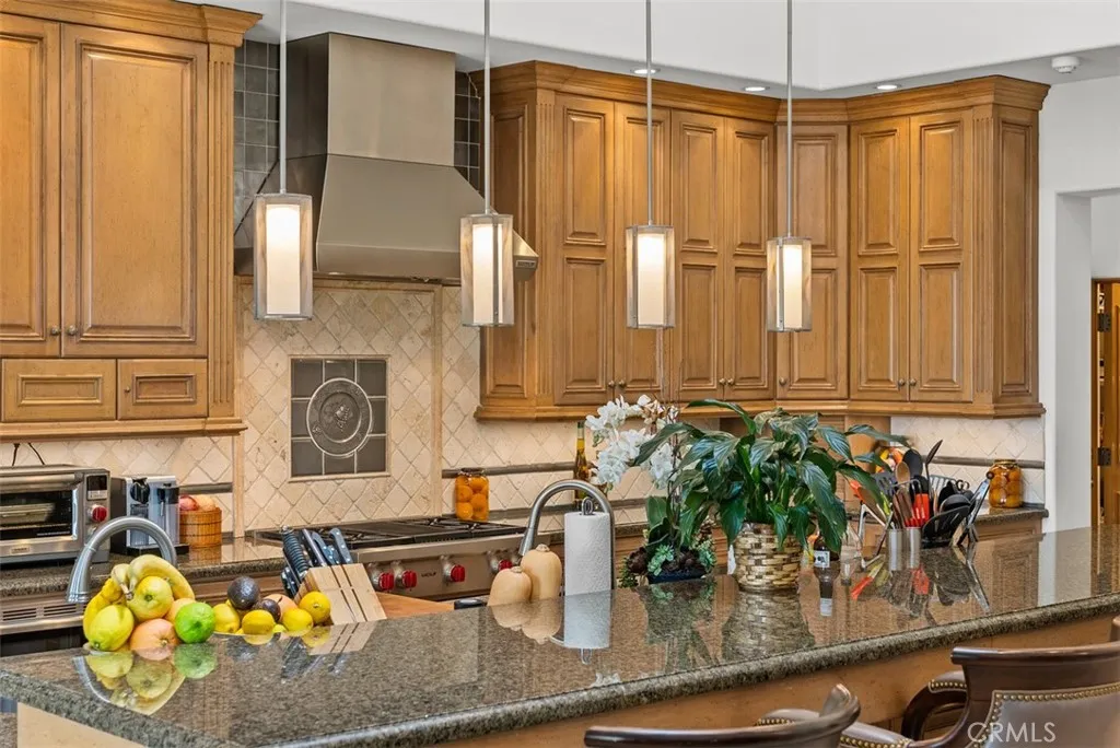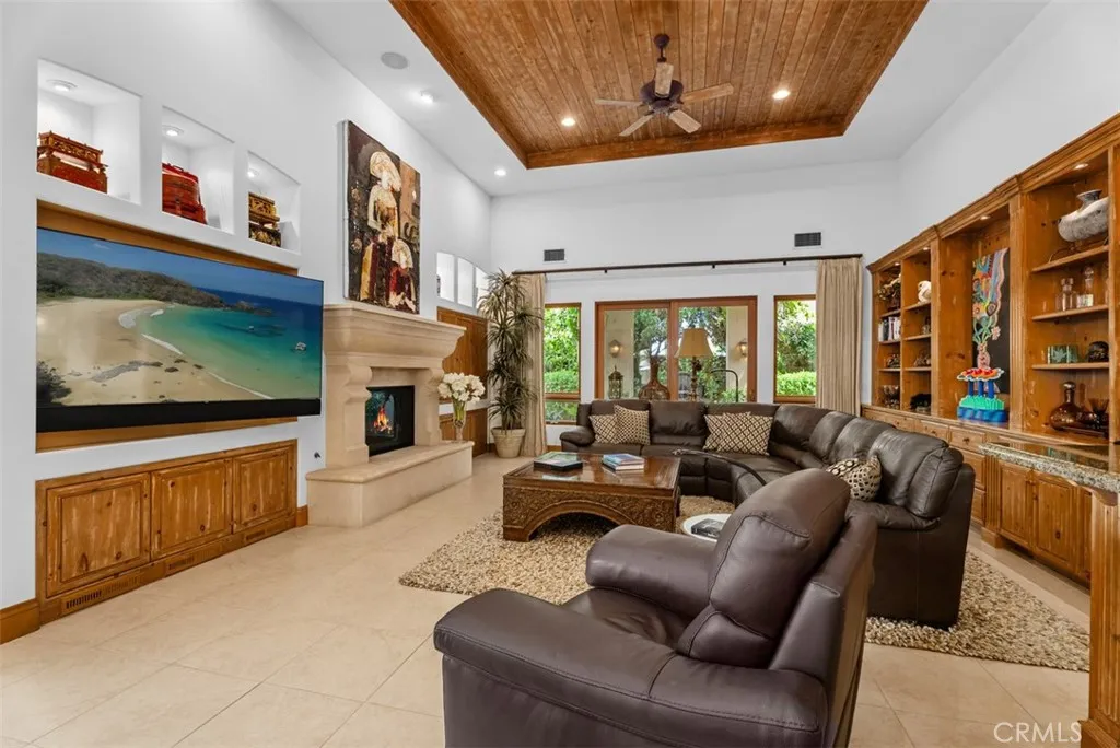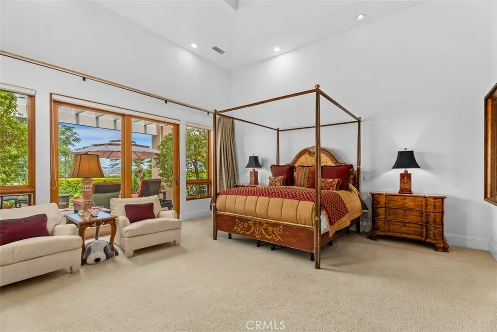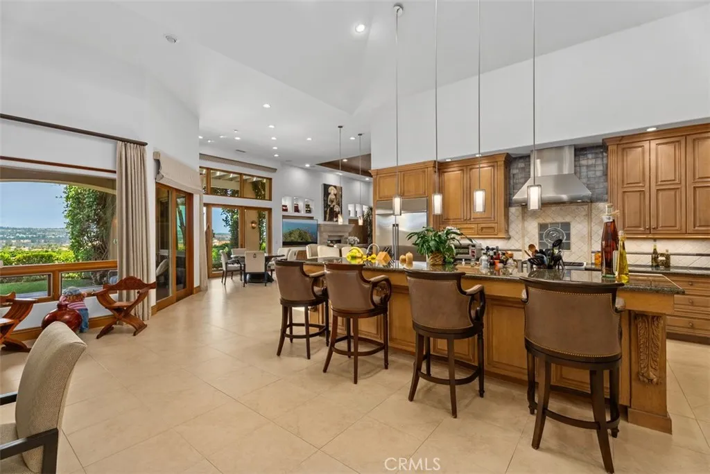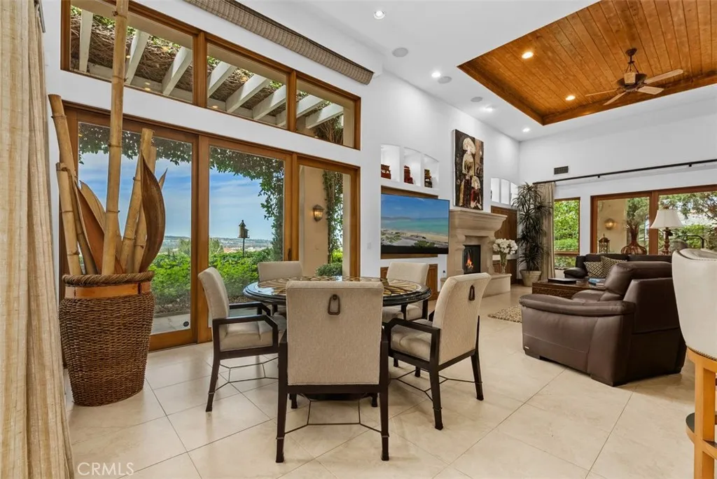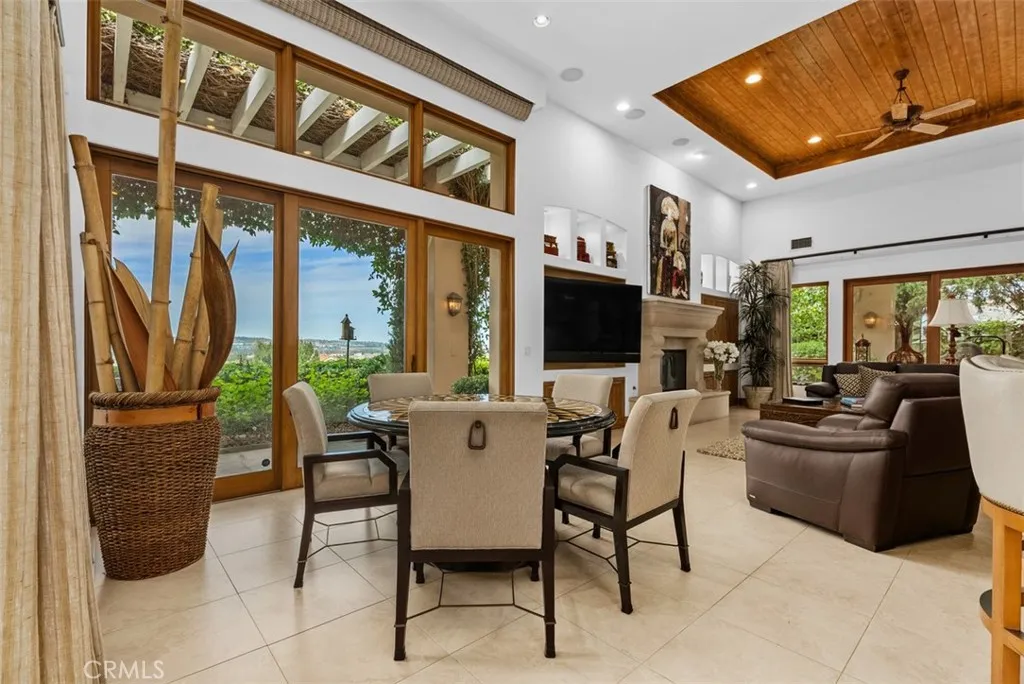 Rare single-level custom estate in the prestigious gated community of The Estates in Laguna Niguel. Ideally located on a private 14,872 sq ft double lot at the end of a cul-de-sac, this 4,874 sq ft home offers sweeping Saddleback Valley and mountain views—snow-capped in winter. Built with exceptional quality and steel reinforcement, the home features soaring ceilings throughout (up to 28 feet), abundant natural light, skylights, and expansive wall space ideal for art. The gourmet kitchen opens to a large family room and includes an oversized island, premium appliances, dual-sided fireplace, walk-in pantry, and butler’s pantry with 3 wine refrigerators. Formal living and dining rooms provide additional entertaining space. 4 spacious bedrooms including a luxurious primary suite with fireplace, sitting area, spa-style bath, and dual oversized walk-in closets (one cedar-lined). Seamless indoor-outdoor living with French doors leading to a private backyard featuring a fireplace, BBQ area, 2 fountains, and covered loggia—perfect for sunset and city light views. Mature landscaping includes camphor, Italian cypress, and multiple fruit trees. Tall hedges provide exceptional privacy. “Certain images have been digitally enhanced, including the addition of virtual elements such as TV screens and fireplace flames. These enhancements are for visual illustration only and do not represent actual conditions.”Additional features: finished attic, dedicated office, extensive built-ins, garage half bath, dual water treatment systems, dual HVAC systems (one new), dual water heaters (one of which is instant-hot), ADT security and closed-circuit perimeter monitoring, and oversized 4-car garage (extra large doors for RV). Enjoy resort-style amenities including tennis, pools, fitness center, and pickleball. A rare opportunity to own a truly custom, single-level estate in one of Laguna Niguel’s most sought-after gated communities. Short ride to beaches, Laguna Beach,,Dana point harbor
