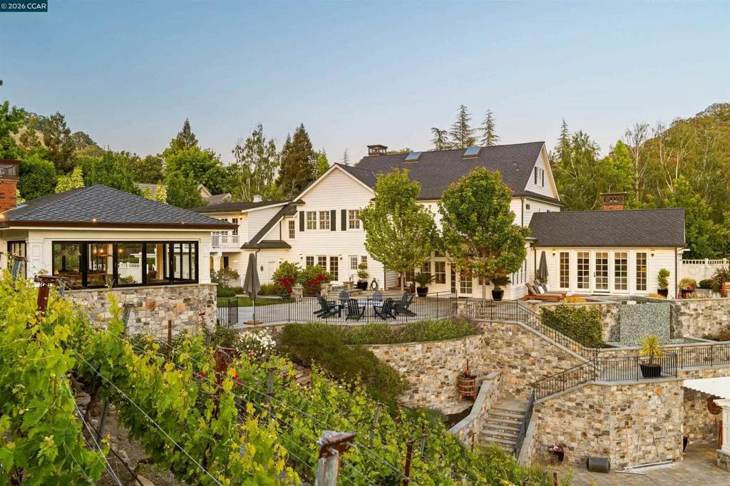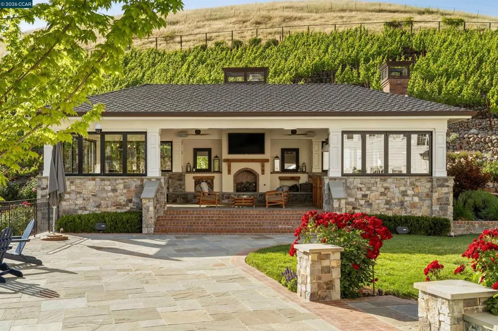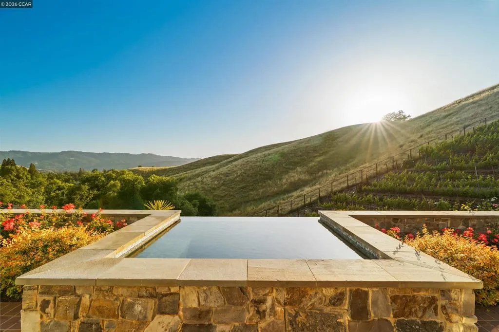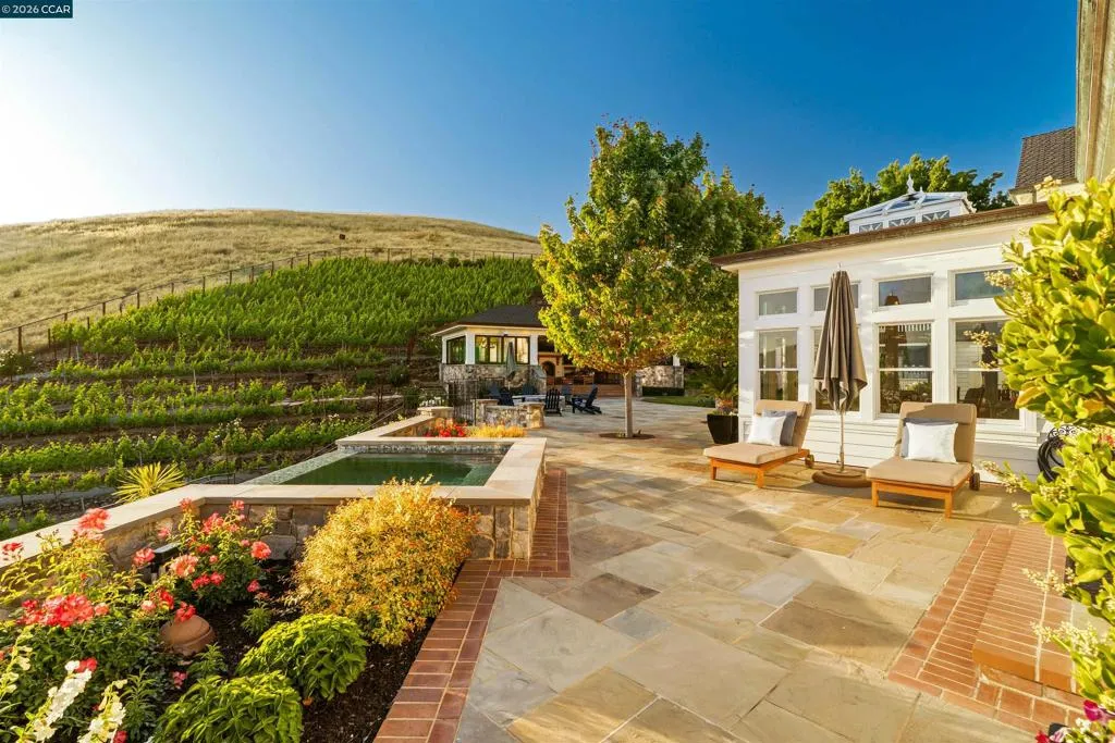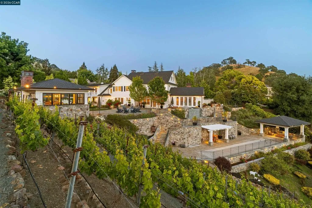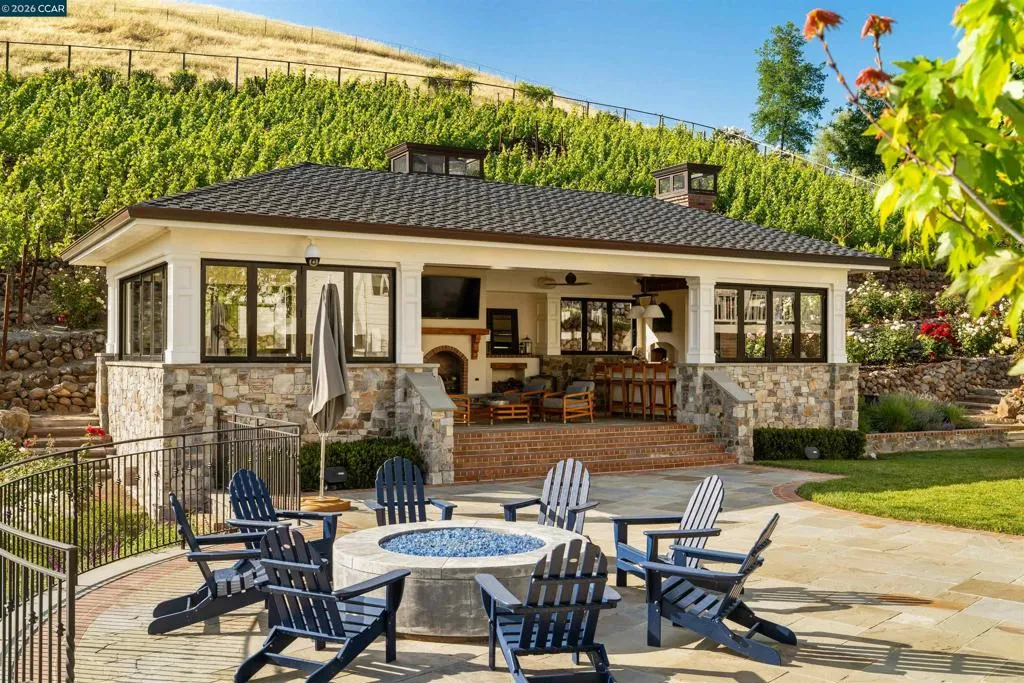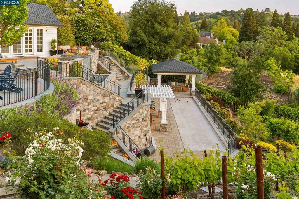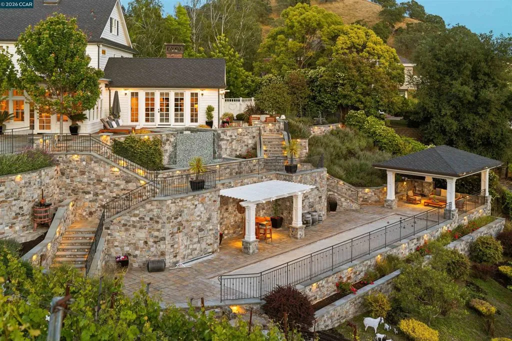 East Coast Elegance Meets California Vineyard Living! Tucked at the end of a private court in one of Alamo’s most coveted settings, this extraordinary estate captures the essence of timeless design, refined craftsmanship, and effortless living. Set on approximately 1.15 acres, the property offers an expansive, thoughtfully designed floor plan that balances grand-scale entertaining with intimate, everyday living. A series of beautifully appointed spaces ~ including a bonus room, media room, wine room and sunroom ~ provide flexibility, comfort, and privacy for every lifestyle. The 5th bedroom has been transformed into a custom office. Throughout the home, stately architecture is paired with designer finishes and bespoke details, creating a warm yet elevated aesthetic. The kitchen is a true showpiece, featuring a La Cornue range, multiple Sub-Zero refrigeration, marble countertops, bar with zinc countertop, walk-in pantry and a seamless connection to the home’s main living spaces ~ ideal for both casual and elegant gatherings. The grounds are nothing short of extraordinary. Following a multi-year, meticulously executed transformation, the outdoor experience rivals that of a private resort. At its heart, a spectacular pavilion anchors the backyard ~ complete with a full outdoor kitchen, wood-fired pizza oven, BBQ, fireplace, and integrated media ~ designed for incredible entertaining on any scale. Enjoy the bocce court with its own pavilion, blue waterfall wall, oversized spa, meditation garden with statue and birds nest at the top of the vineyard to take in the Mt. Diablo views. Surrounded by sweeping, unobstructed vistas of the Las Trampas ridge, rolling hills and open space, the property features a well-established vineyard with both Montepulciano and Cabernet Sauvignon vines, offering a rare opportunity to enjoy a true wine country lifestyle at home. This is a home where every detail has been considered, every space has purpose, and every moment is framed by beauty~ an exceptional offering that is welcoming and unforgettable. Peace of mind with a security gate to the neighborhood with guard on duty 24/7. Top rated schools. True sense of community on this lovely street. A rare opportunity that has it all ~ in one extraordinary setting.