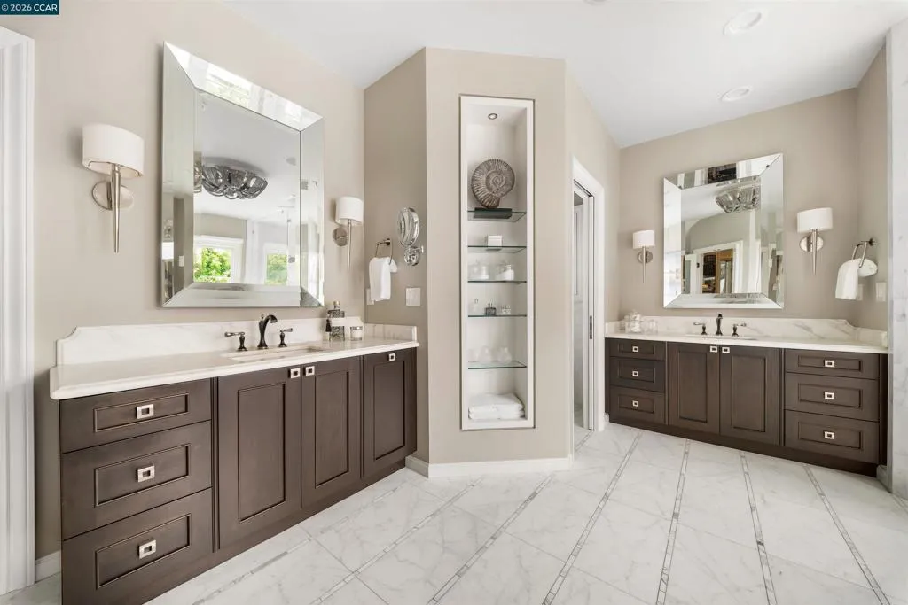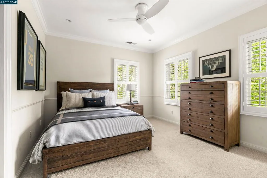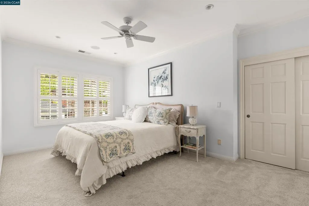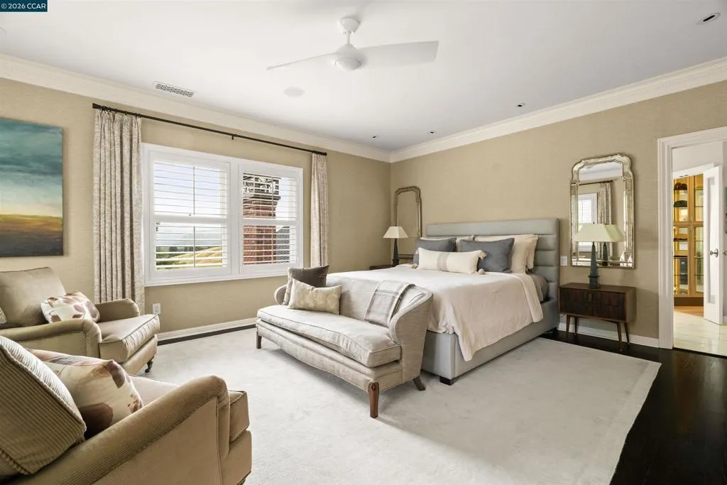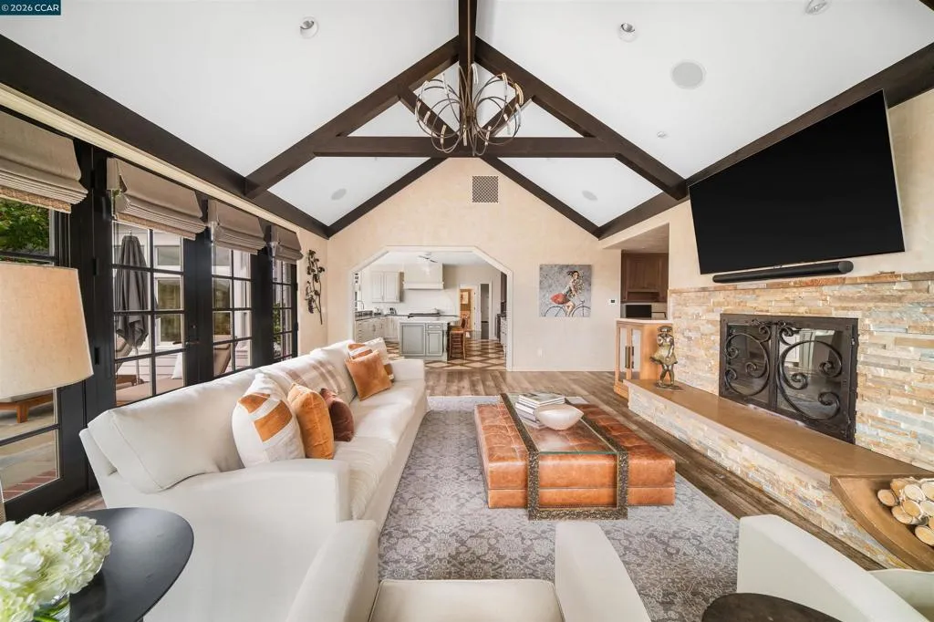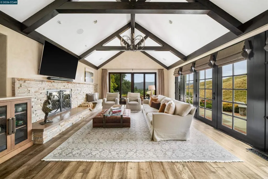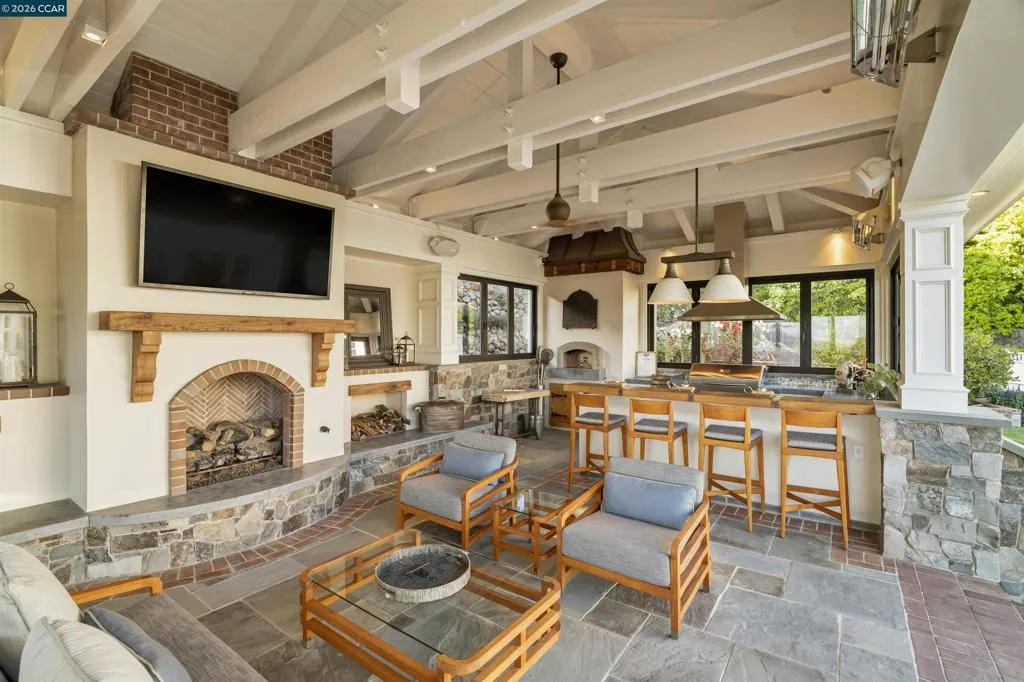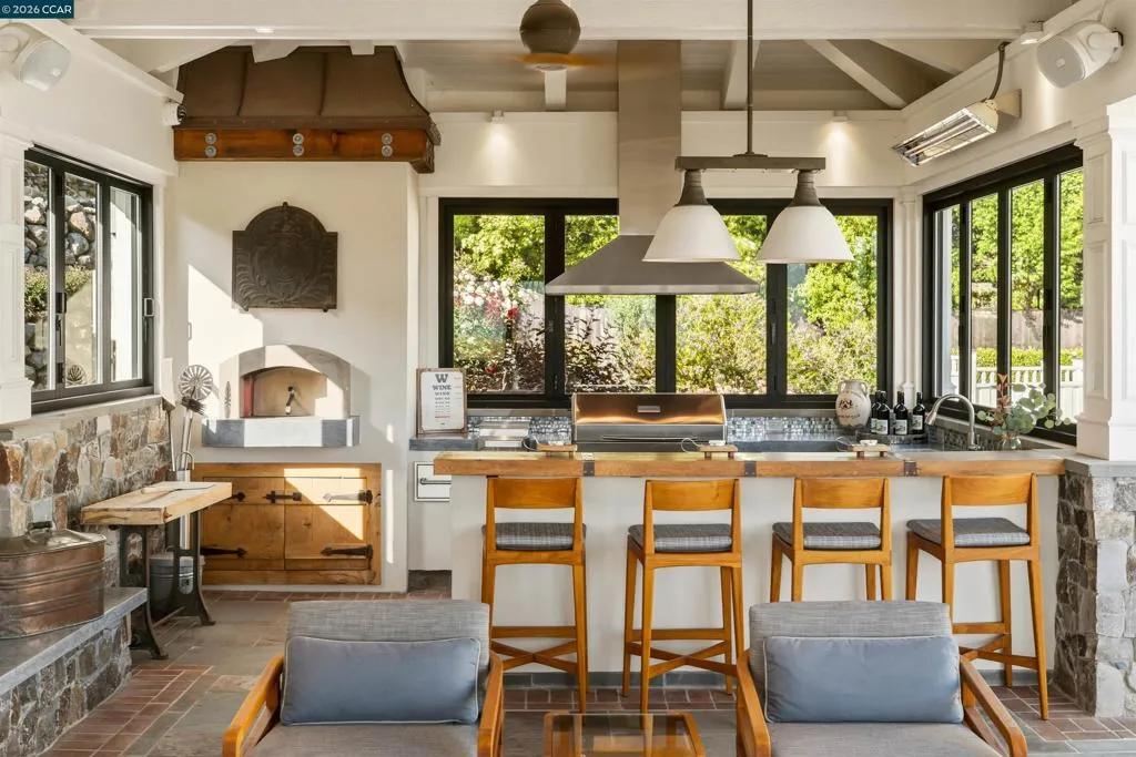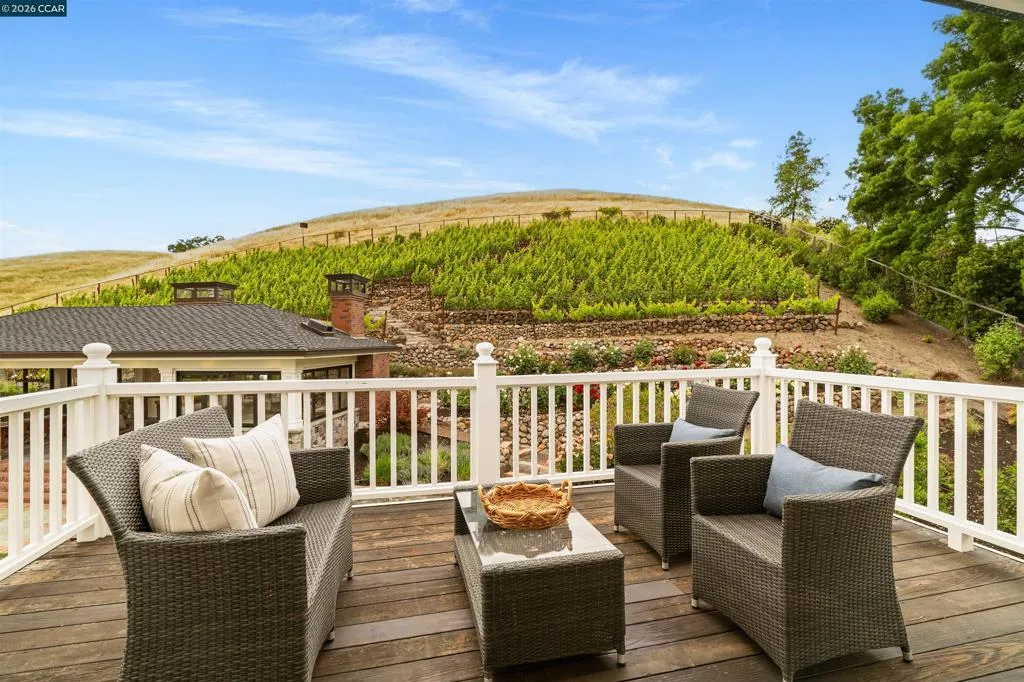 East Coast Elegance Meets California Vineyard Living! Tucked at the end of a private court in one of Alamo’s most coveted settings, this extraordinary estate captures the essence of timeless design, refined craftsmanship, and effortless living. Set on approximately 1.15 acres, the property offers an expansive, thoughtfully designed floor plan that balances grand-scale entertaining with intimate, everyday living. A series of beautifully appointed spaces ~ including a bonus room, media room, wine room and sunroom ~ provide flexibility, comfort, and privacy for every lifestyle. The 5th bedroom has been transformed into a custom office. Throughout the home, stately architecture is paired with designer finishes and bespoke details, creating a warm yet elevated aesthetic. The kitchen is a true showpiece, featuring a La Cornue range, multiple Sub-Zero refrigeration, marble countertops, bar with zinc countertop, walk-in pantry and a seamless connection to the home’s main living spaces ~ ideal for both casual and elegant gatherings. The grounds are nothing short of extraordinary. Following a multi-year, meticulously executed transformation, the outdoor experience rivals that of a private resort. At its heart, a spectacular pavilion anchors the backyard ~ complete with a full outdoor kitchen, wood-fired pizza oven, BBQ, fireplace, and integrated media ~ designed for incredible entertaining on any scale. Enjoy the bocce court with its own pavilion, blue waterfall wall, oversized spa, meditation garden with statue and birds nest at the top of the vineyard to take in the Mt. Diablo views. Surrounded by sweeping, unobstructed vistas of the Las Trampas ridge, rolling hills and open space, the property features a well-established vineyard with both Montepulciano and Cabernet Sauvignon vines, offering a rare opportunity to enjoy a true wine country lifestyle at home. This is a home where every detail has been considered, every space has purpose, and every moment is framed by beauty~ an exceptional offering that is welcoming and unforgettable. Peace of mind with a security gate to the neighborhood with guard on duty 24/7. Top rated schools. True sense of community on this lovely street. A rare opportunity that has it all ~ in one extraordinary setting.
