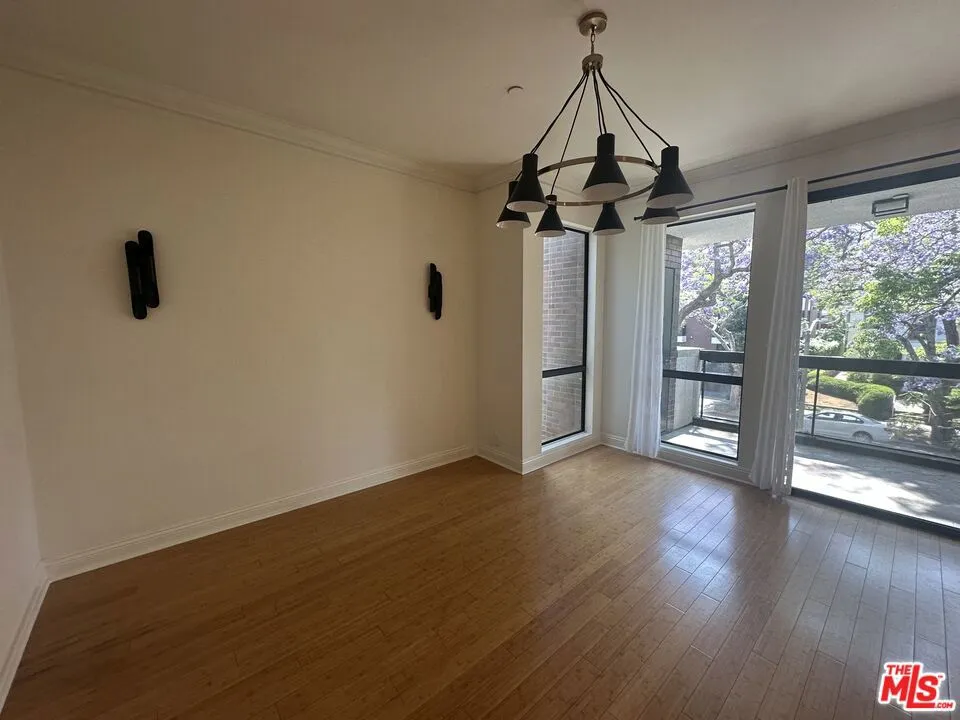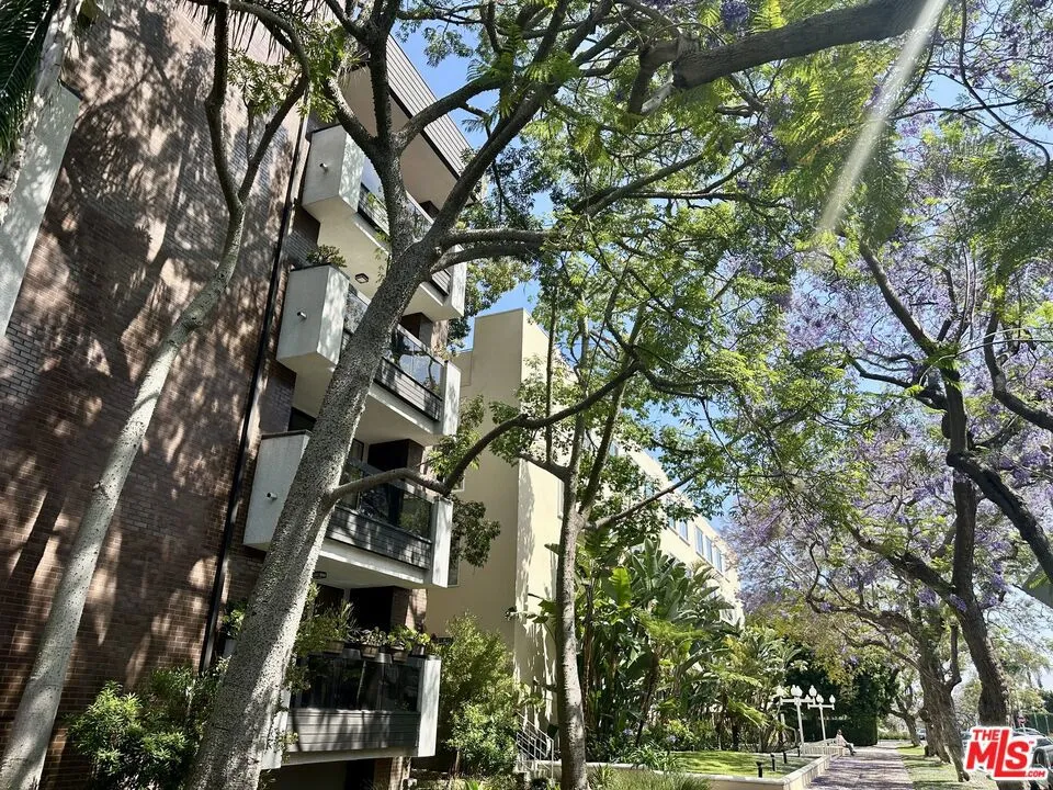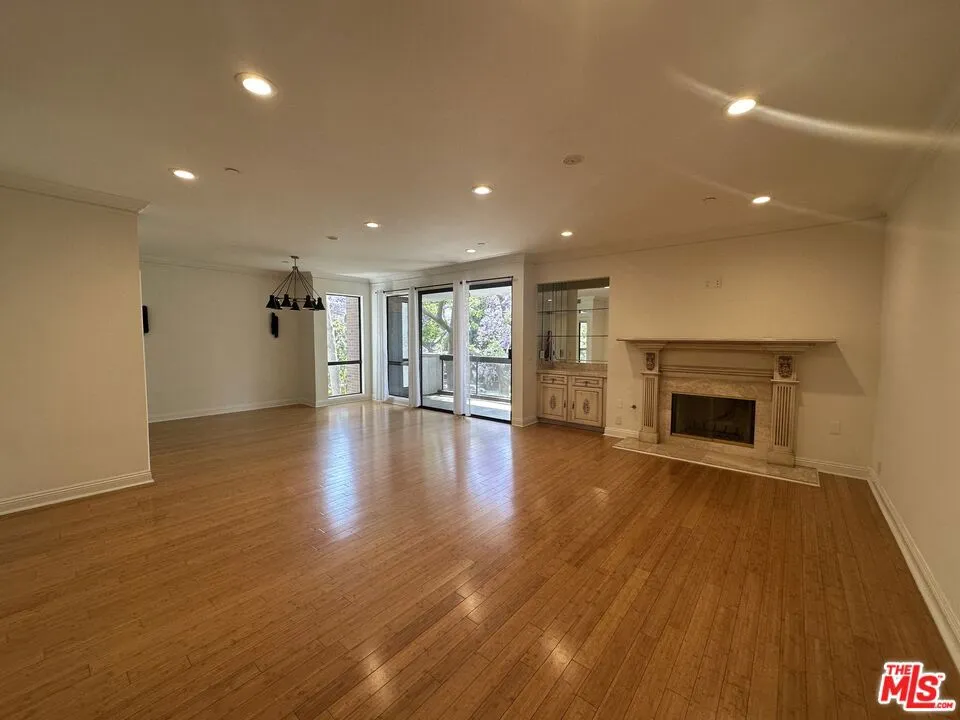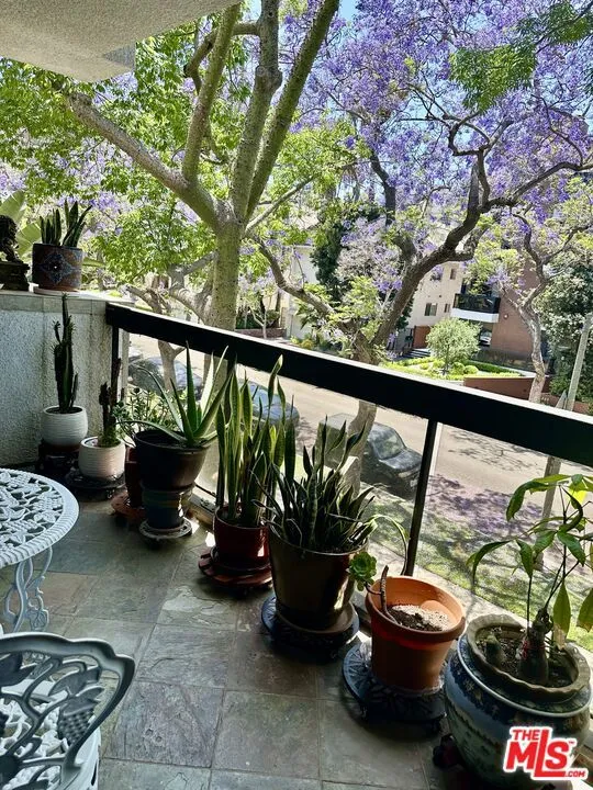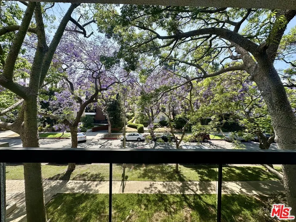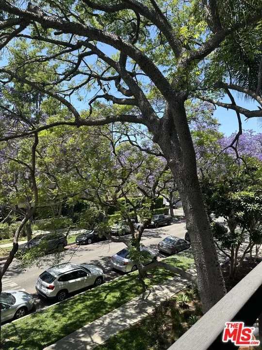 Prime Beverly Hills street. Discover your new home in this bright, elegant front-facing condo. Just steps from the vibrant and artistic Burton Way, enjoy easy access to the Golden Triangle or Beverly Grove, offering premier shopping, dining, and entertainment within walking distance.This nearly 2,100 sq ft residence features soaring 9-foot ceilings, crown molding, and natural bamboo flooring throughout. The renovated kitchen includes quartz countertops, soft-close cabinets, a top-of-the-line Thor gas range, a cozy breakfast nook, and a private balcony off the kitchenperfect for morning coffee.The open-concept great room, complete with a gas fireplace, opens to a second spacious balcony off the living room facing beautiful purple jacaranda trees. The private primary suite is tucked away in the rear, boasting a walk-in closet and a luxurious bathroom finished with travertine and marble, dual vanities, and a separate soaking tub and shower.Additional amenities include three assigned parking spaces, in-unit washer and dryer, ample storage, central air conditioning and heating, plus five-day on-site concierge and security.