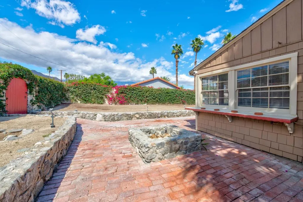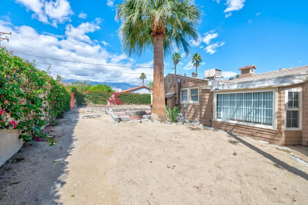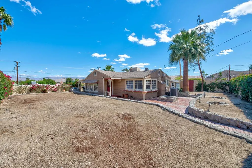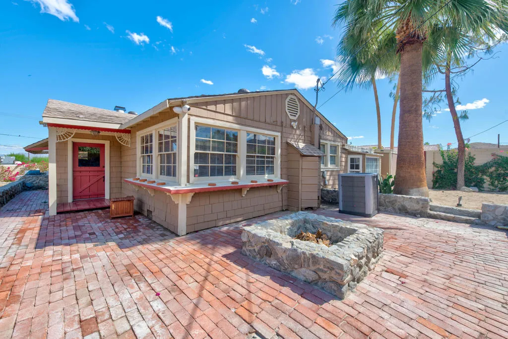 This unique home is located in the Cathedral City Cove. This 3 bedroom, 2 bath 1940s bungalow was designed and built by a lumberman from Oregon and constructed with ponderosa pine and oak from the Pacific Northwest. All of the building materials and lumber were transported by trucks to Cathedral City and were cut on site. Features include oak floors and a rock fireplace.The primary bedroom and bathroom were originally a covered porch. The HVAC is newer. The Cathedral City Historical Society chose this. home for their 2012 property of the year.The owner built a block wall fence too high and failed to obtain permits with the City Of Cathedral City.The fence in most areas needs to be lowered to 6 feet. He is working with the city to comply. The city may require the work to be completed before the close of escrow. He has submitted new plans for the block wall fence and is awaiting approval.