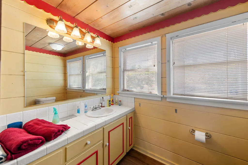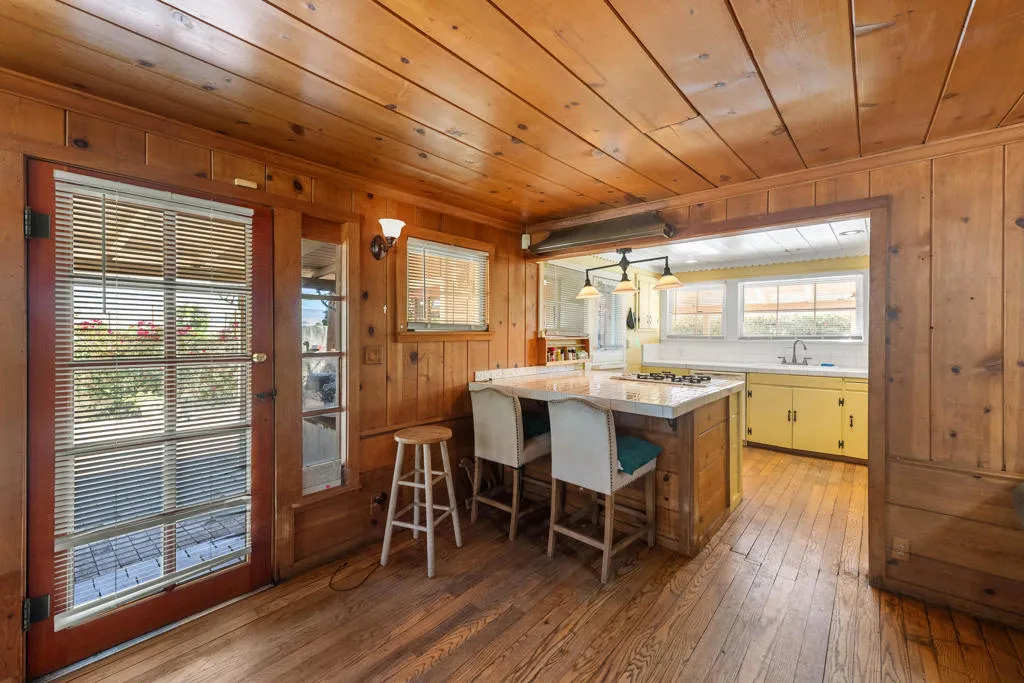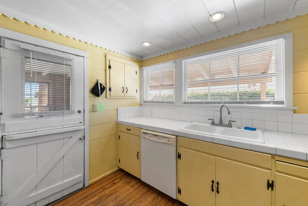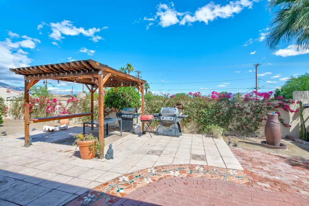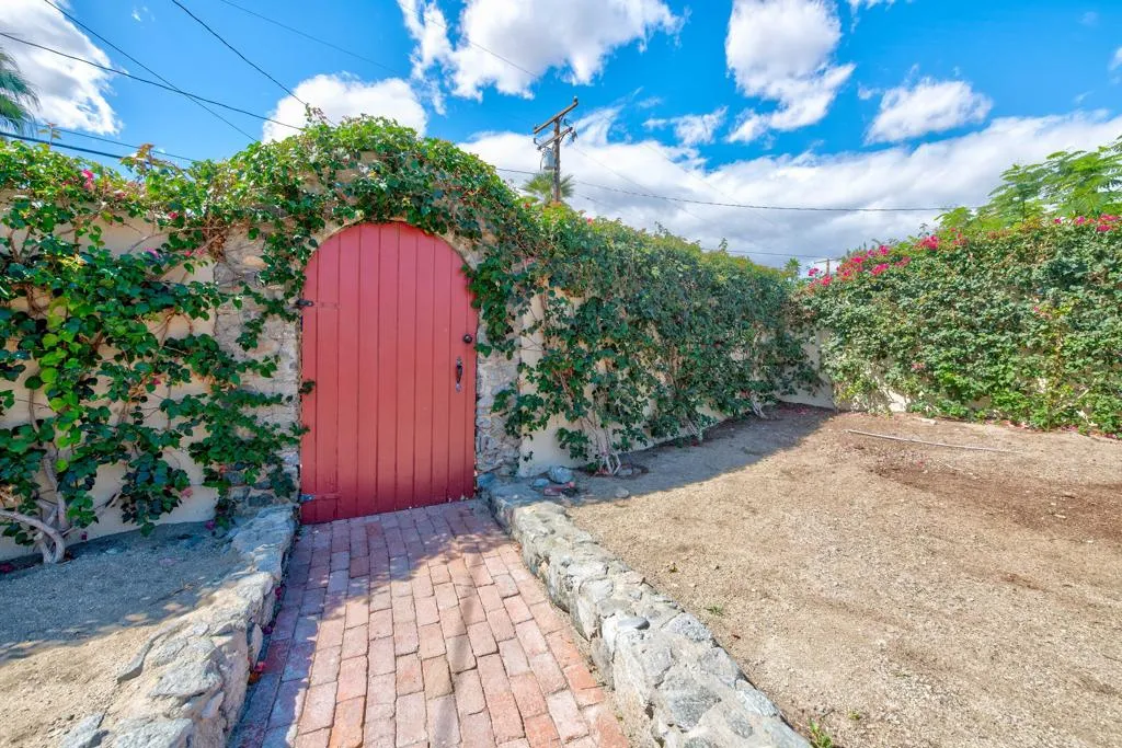This unique home is located in the Cathedral City Cove. This 3 bedroom, 2 bath 1940s bungalow was designed and built by a lumberman from Oregon and constructed with ponderosa pine and oak from the Pacific Northwest. All of the building materials and lumber were transported by trucks to Cathedral City and were cut on site. Features include oak floors and a rock fireplace.The primary bedroom and bathroom were originally a covered porch. The HVAC is newer. The Cathedral City Historical Society chose this. home for their 2012 property of the year.The owner built a block wall fence too high and failed to obtain permits with the City Of Cathedral City.The fence in most areas needs to be lowered to 6 feet. He is working with the city to comply. The city may require the work to be completed before the close of escrow. He has submitted new plans for the block wall fence and is awaiting approval.