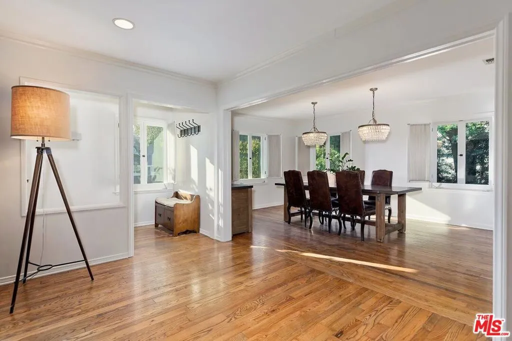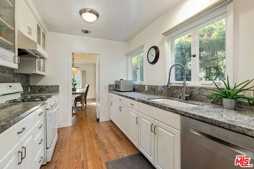 Charming Traditional with great flow in the extremely desirable Westwood Hills neighborhood! Open Living room has a fireplace & large windows looking out to treetops to provide tranquility & great natural light. Spacious formal Dining room, also with treetop views, flows from the living room & leads to an updated kitchen with granite countertops & great storage, including a large walk-in pantry. The great flow continues with a Family room off the living room with built-ins, ideal for a playroom & entertaining, as it has French Doors opening to the gorgeous, private grassy backyard, also making it ideal for California living. There are 3 bedrooms including a gracious primary en-suite with fireplace, walk-in closet, sitting area & French Doors opening to the patio & backyard. The Primary en-suite full bath is updated with double sinks & separate tub & shower. Terraced gardens, large grassy area & patio make the outdoors a fantastic entertaining haven. This cheerful home is filled with character, natural light, beautiful hardwood floors throughout, newer central AC, newer roof, solar, curb appeal & 2-car garage with storage. Desirable Warner Avenue School District.