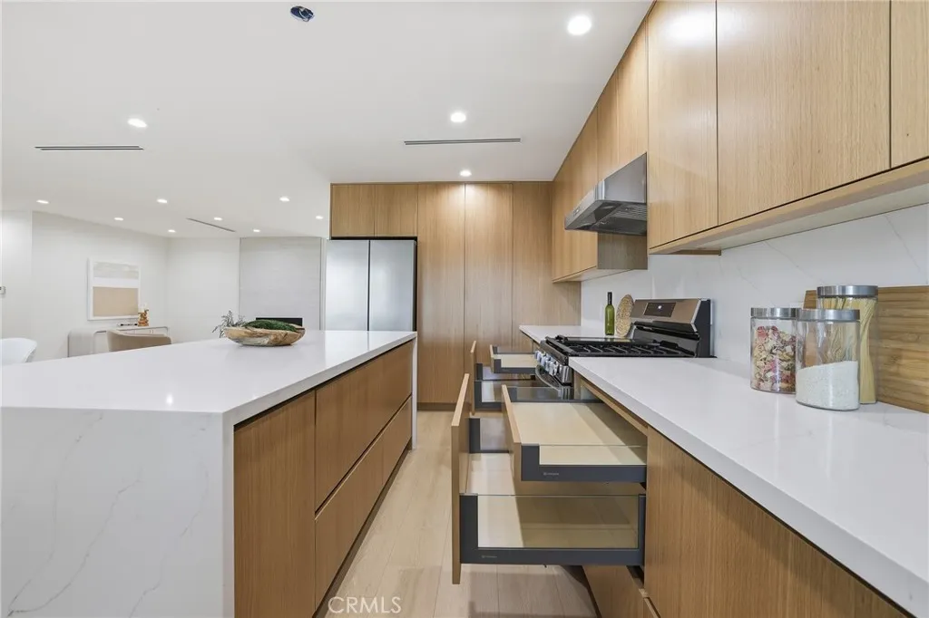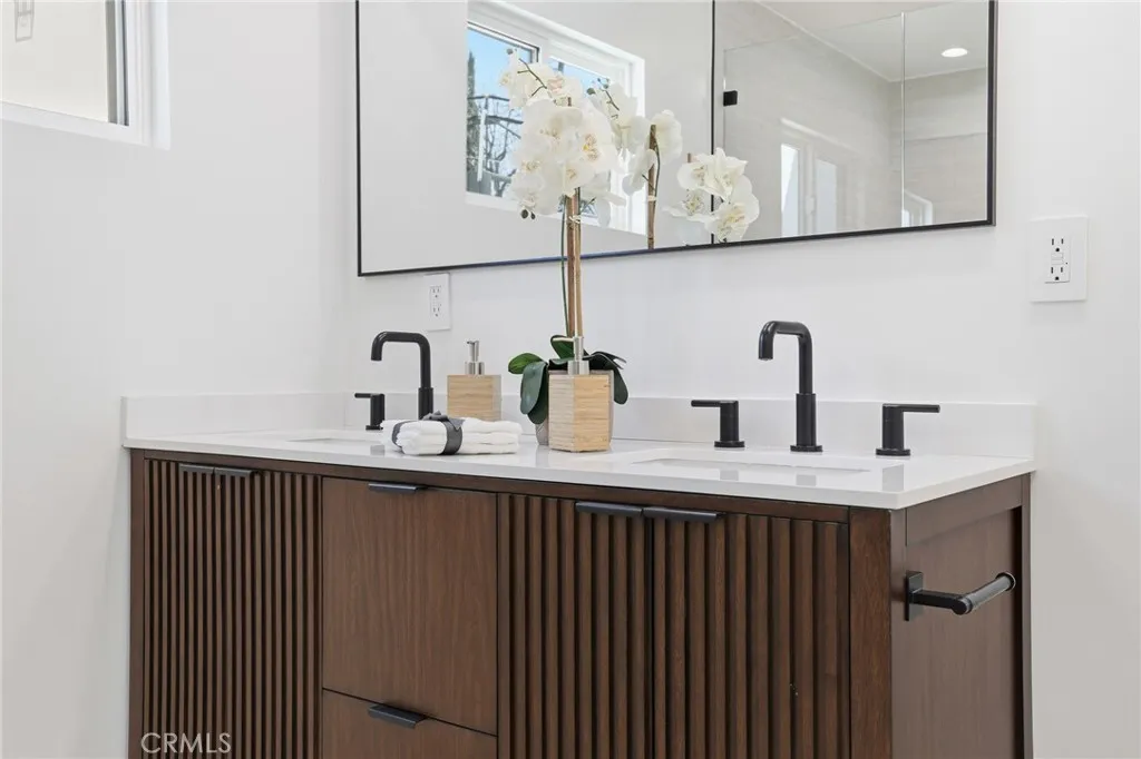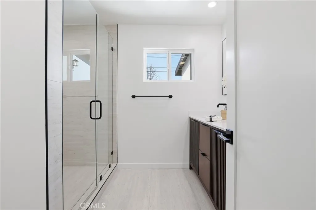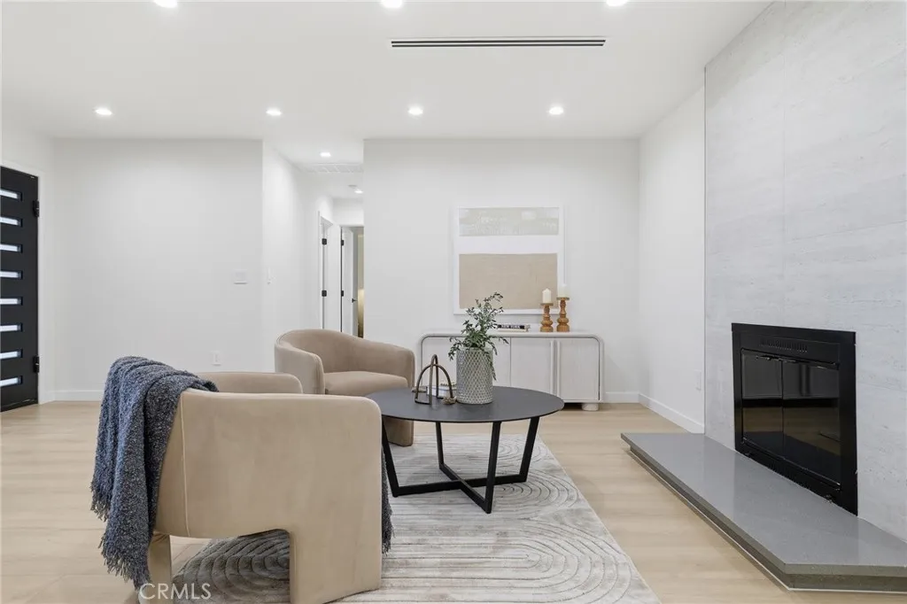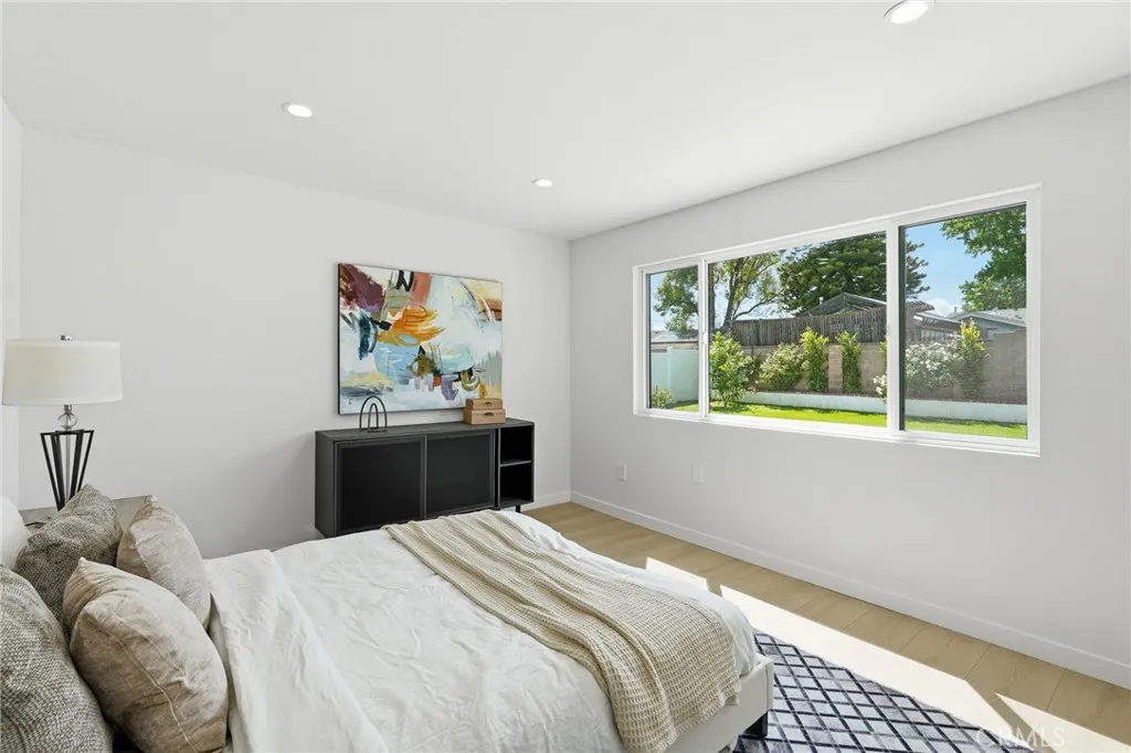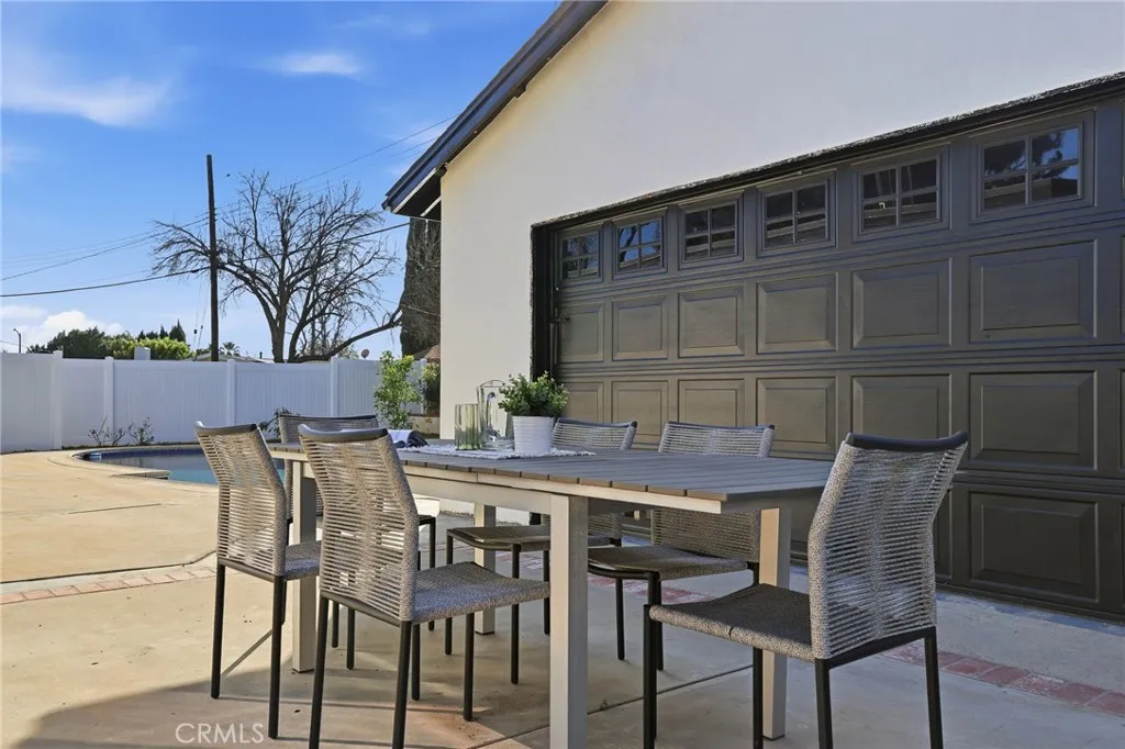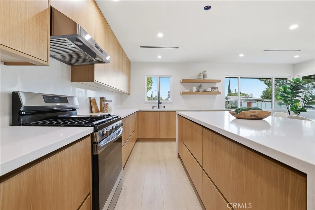 Stop looking! Welcome to this 3-bedroom, 2-bathroom single-story home located in a highly desirable area of Chatsworth minutes away from Porter Ranch, Whole Foods and various dining options. This turn-key property has been thoughtfully upgraded throughout, showcasing top-quality finishes and a functional layout that must be seen in person to truly appreciate! Step inside to discover a bright, open floor plan. The oversized living and dining areas feature multiple seating and dining options, all filled with natural light and anchored by a cozy fireplace, creating a seamless flow to the backyard. The custom kitchen, featuring oak-style cabinets crafted by the Pacific Design Center on Melrose, boasts top-quality cabinetry, stainless steel appliances, and elegant quartz countertops and backsplash, making it a dream for cooking and entertaining. The center island serves as the heart of this kitchen. Both bathrooms have been completely remodeled with high-quality finishes and vanities. The home has been meticulously updated with new laminate flooring, windows, interior and exterior doors, fresh paint, and smooth stucco, updated electrical switches and rewiring, updated plumbing, new air conditioning ducting, and skim-coated interior walls and so much more!. Outside, enjoy a private backyard with a pool, ideal for summer relaxation and entertaining. The detached garage is fully air-conditioned, offering versatility as a game room or potential ADU possibilities.