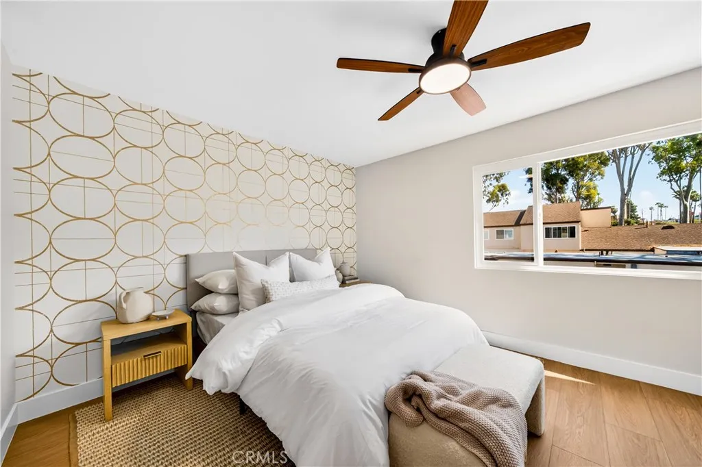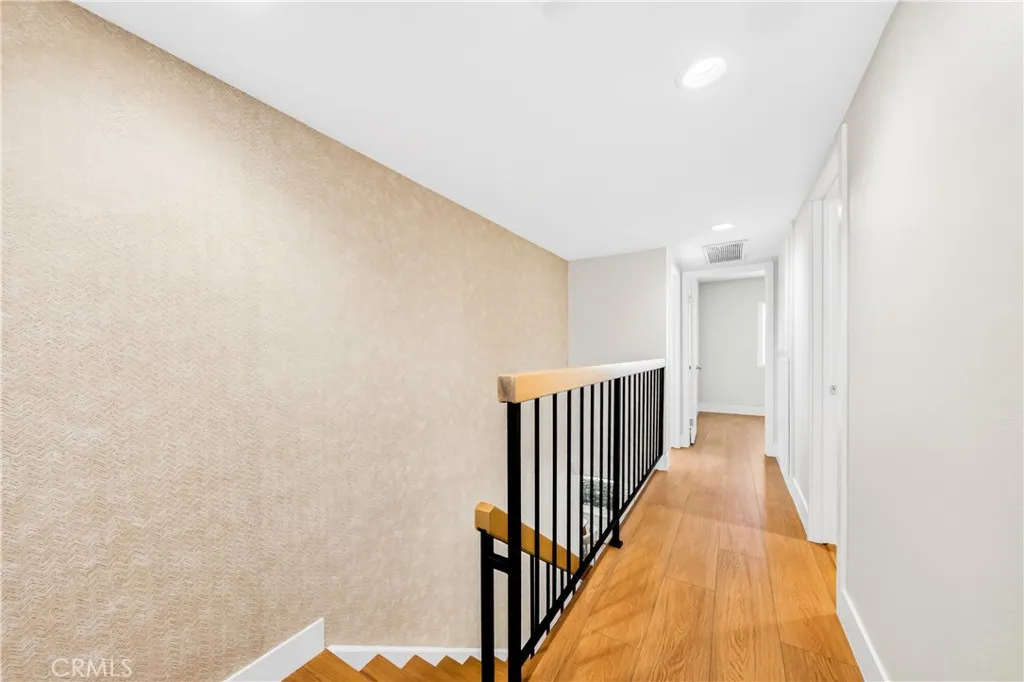 Exquisite SoCal Transitional Modern Remodel – This property offers access to the highly regarded Palos Verdes Peninsula School District. This beautifully reimagined home showcases a warm, light, and airy design with natural tones and layered textures, complemented by champagne bronze fixtures for a polished, cohesive look. Completed as a full custom remodel by a professional contractor, no detail was overlooked. Interior Highlights: All-new Beach Collection Carmel flooring and baseboards, fresh Shoji White walls with Alabaster trim, and recessed lighting. Also includes dual-paned windows and HVAC. Downstairs and the stairwell features Luna Copper Distressed Chevron wallpaper for a sophisticated touch. Kitchen: Custom-designed with a walk-in pantry, breakfast nook, and peninsula. Features newly added cabinets, appliances, veined Calacatta Laza Oro quartz countertops, and a textured herringbone backsplash from counter to ceiling. Woven pendant lighting and wall sconces add artisanal charm. Primary Suite & Bath: Champagne bronze finishes and geometric accents echo the curated wallpaper and tile selections, creating a cohesive, elegant retreat. Sun Circles wallpaper in Cream Gold enhances the ensuite. Downstairs Bath: Fully updated with a new shower addition. Exterior & Patio: Refreshed landscaping with new trees and plants creates a serene outdoor space, perfect for entertaining or relaxing. Living in the Strathmore community of Rancho Palos Verdes offers a serene and well-maintained neighborhood with beautifully landscaped common areas and a welcoming, family-friendly atmosphere. Residents enjoy access to community amenities such as a pool, clubhouse, and walking paths. The location is ideal, with easy access to local parks, top-rated schools, and shopping centers, all just a short drive or walk away. Enjoy the coastal lifestyle with nearby trails, scenic viewpoints, and convenient proximity to dining and everyday essentials. A thoughtfully designed home where every detail elevates the living experience – truly turnkey and move-in ready. Attached to your private patio is your 2-Car detached Garage. You can also enjoy the amenities and magnet programs available through the Los Angeles Unified School District. Just bring your toothbrush!