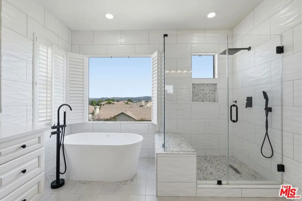 Stunning views of the mountains & citylights, nestled in the prestigious GATED golf course community of "Westridge". This exclusive home perched atop a scenic outlook presents an attractive floor plan, featuring soaring ceilings and a bright airy interior with expansive windows. Featuring MAIN-LEVEL EN-SUITE BEDROOM. Elegant formal living room with cathedral ceilings, formal dining with large picture window, recently renovated chef's kitchen opening out to a massive family room with intimate fireplace, direct backyard access peers out to stunning views, and a private gazebo for relaxing or dining al fresco. Sweeping staircase leads to 4 additional bedrooms including the primary suite with spectacular views, boasting additional retreat area for seating or office, large dual walk-in closets and recently renovated primary bathroom with separate shower and soaking tub for ultimate relaxation. All bedrooms boasts ample space including recently renovated 3 en-suite bath and 1 Jack & Jill. Convenient 3-CAR GARAGE offering great potential to suit various lifestyles. Recently installed solar system is entirely paid off and includes 30 panels in addition to 2 batteries. Water softener, central vacuum, and EV charger also installed. All of the recent renovations were made a little over a year ago and seller spent about $200,000.